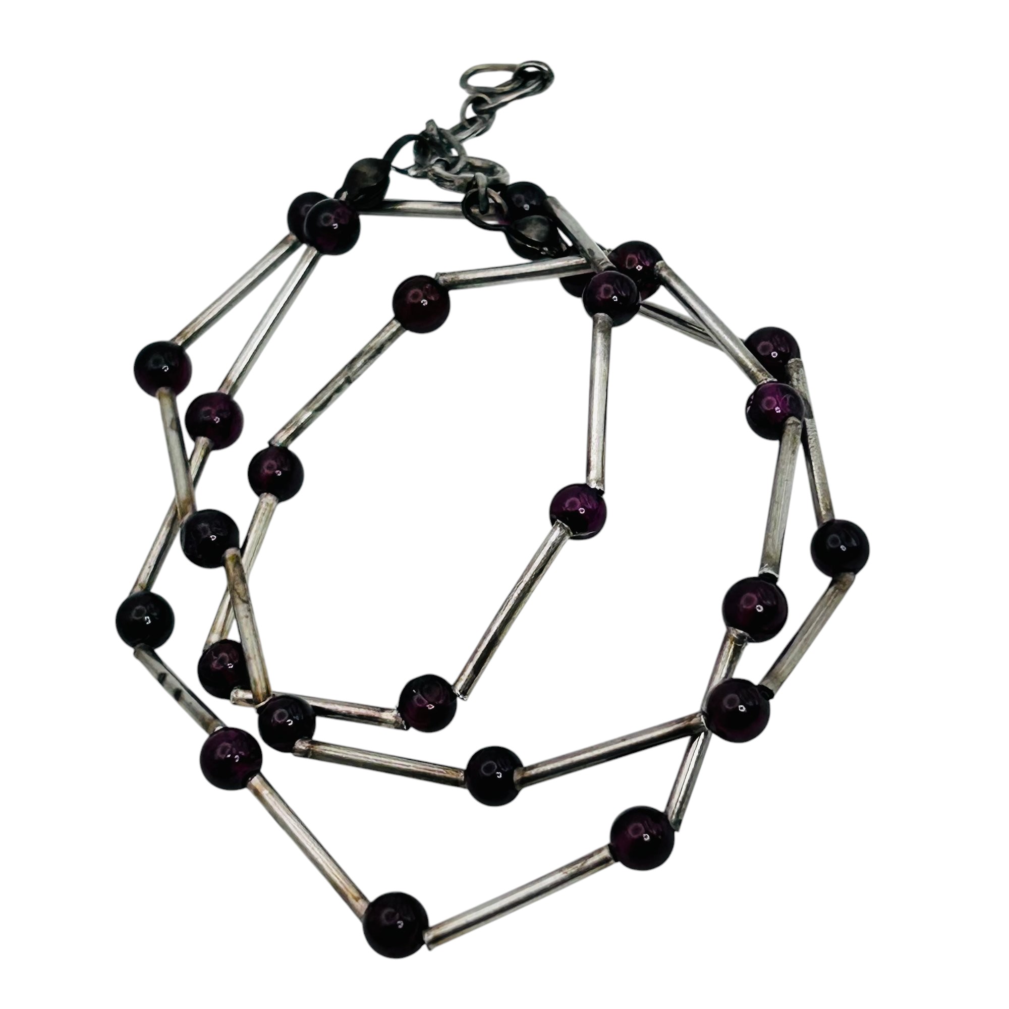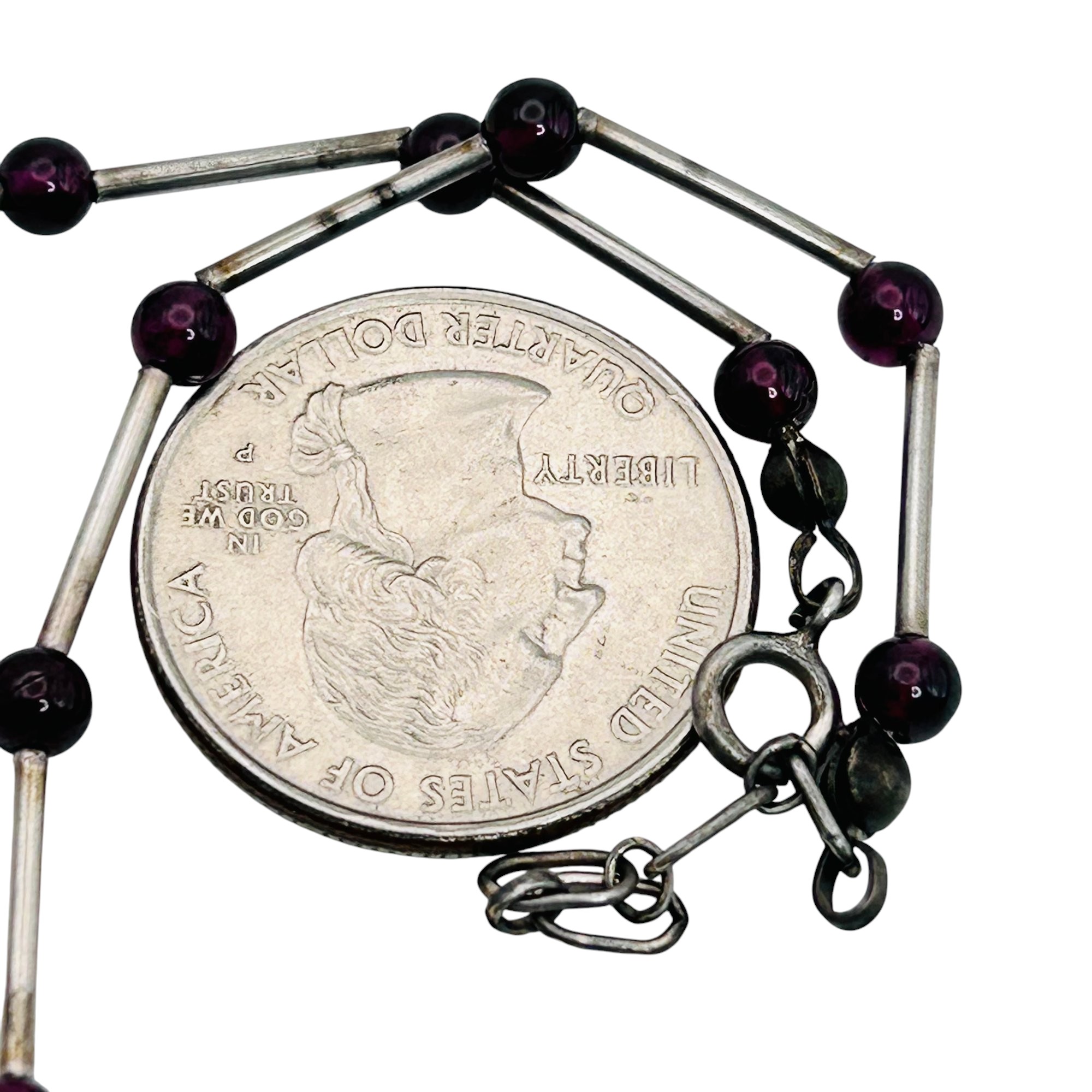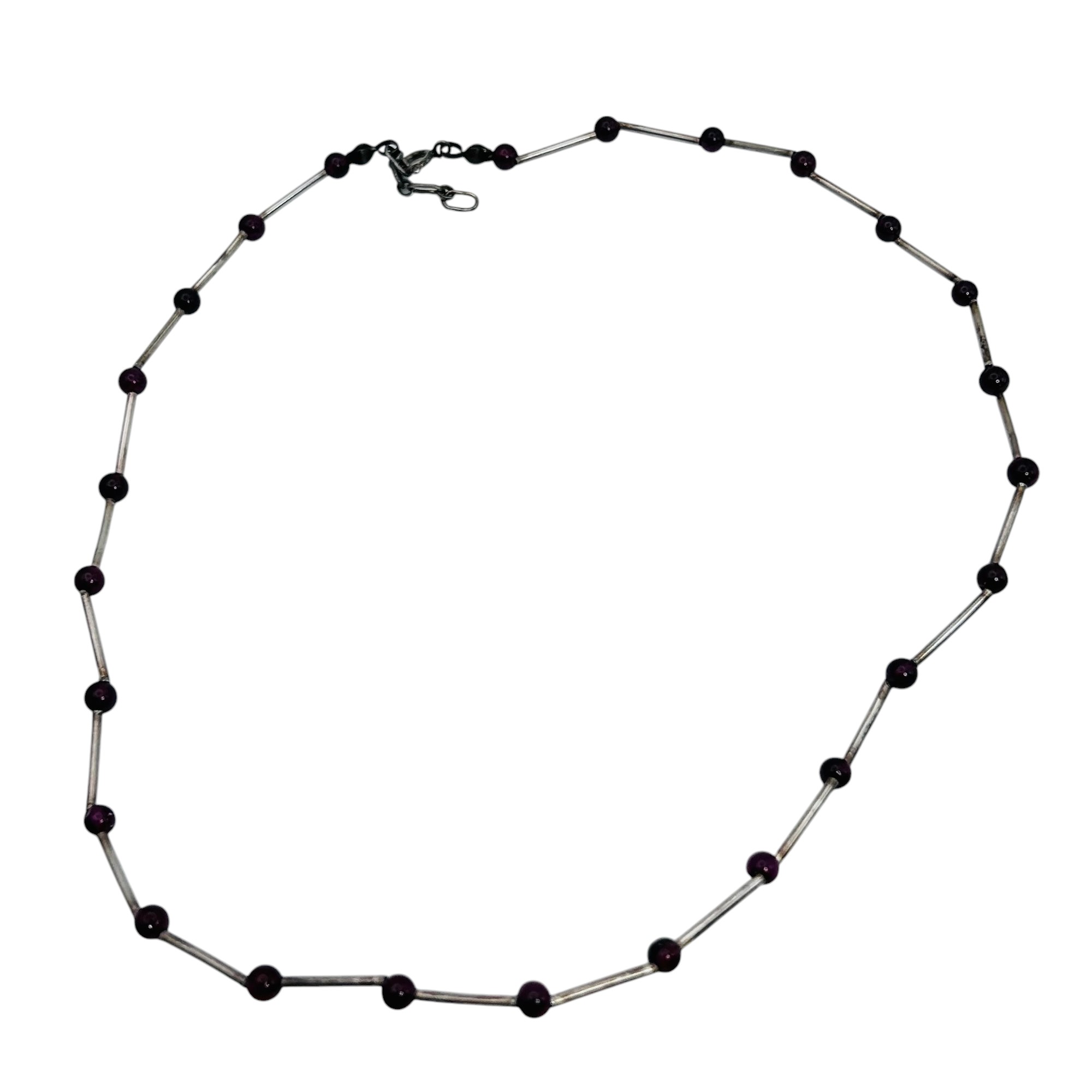 Garnet Bead Sterling Bar Chain Necklace 6.15 G