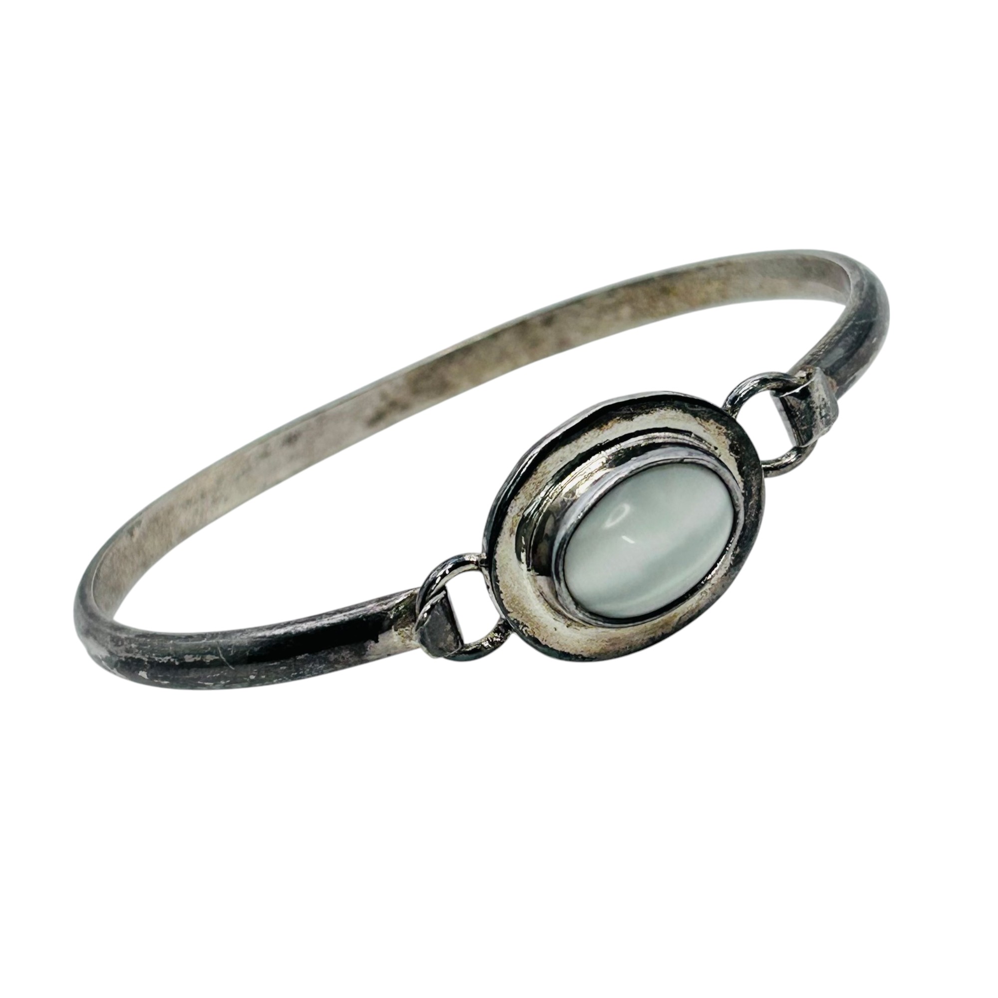 Mexico moonstone Sterling hook latch bangle bracelet 20.19 g