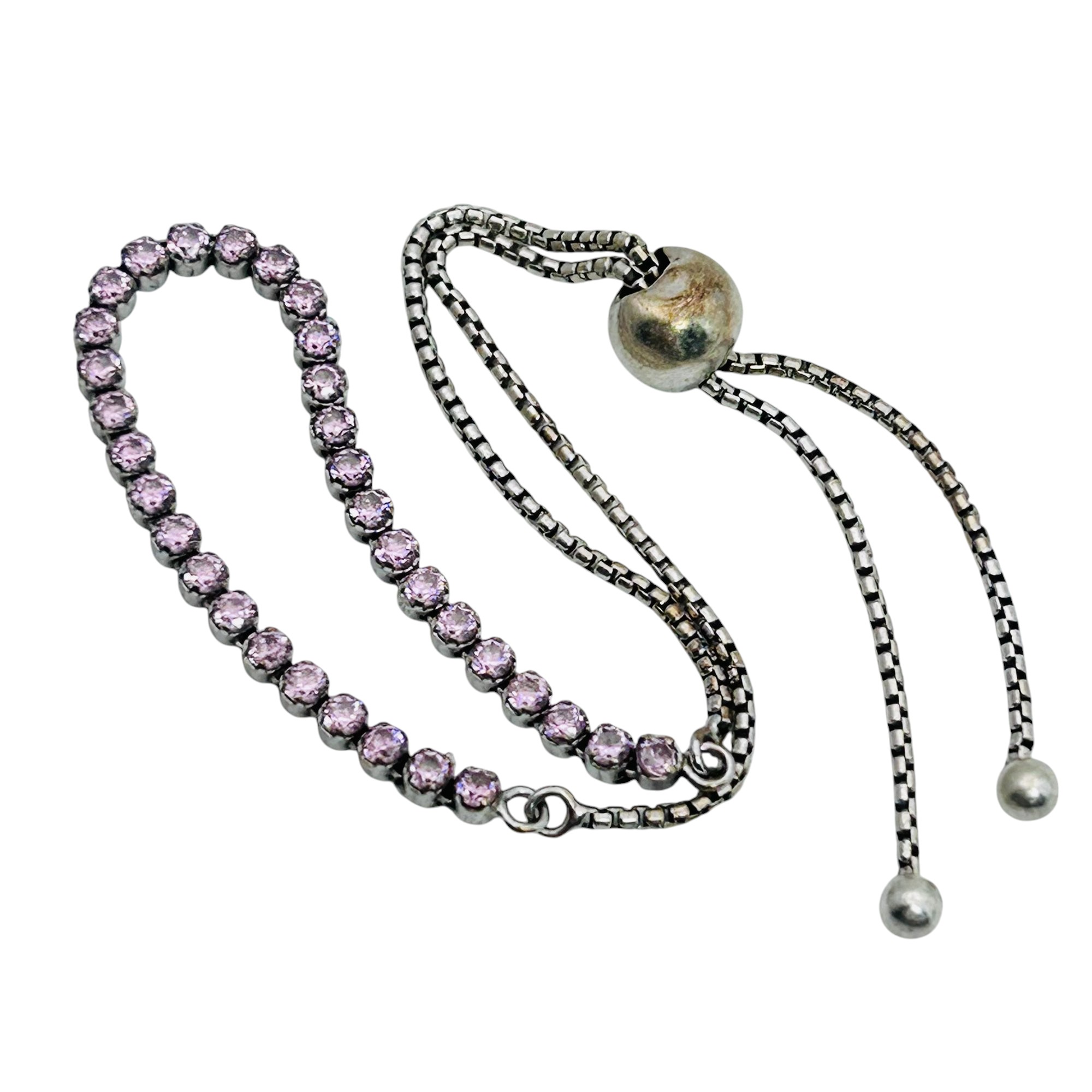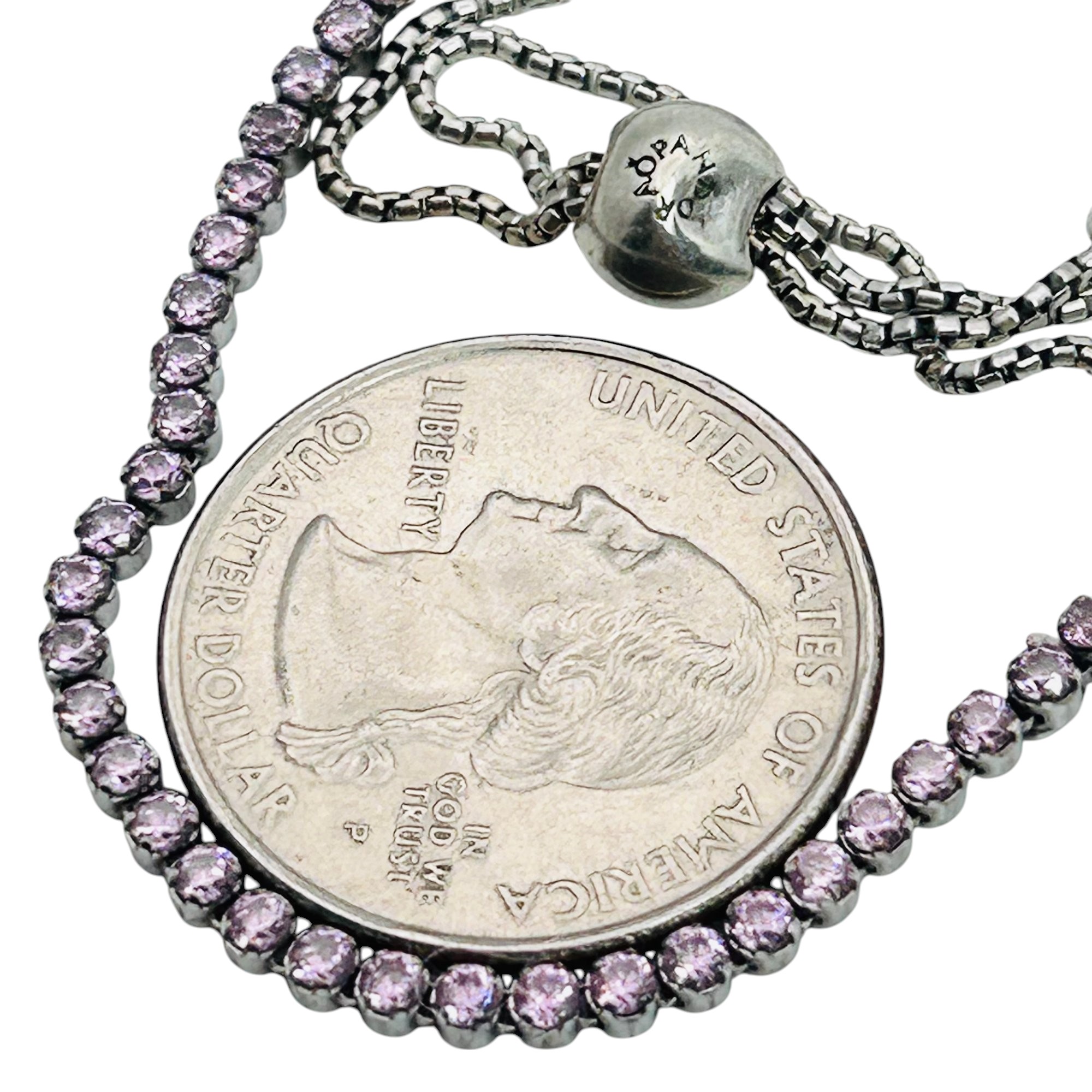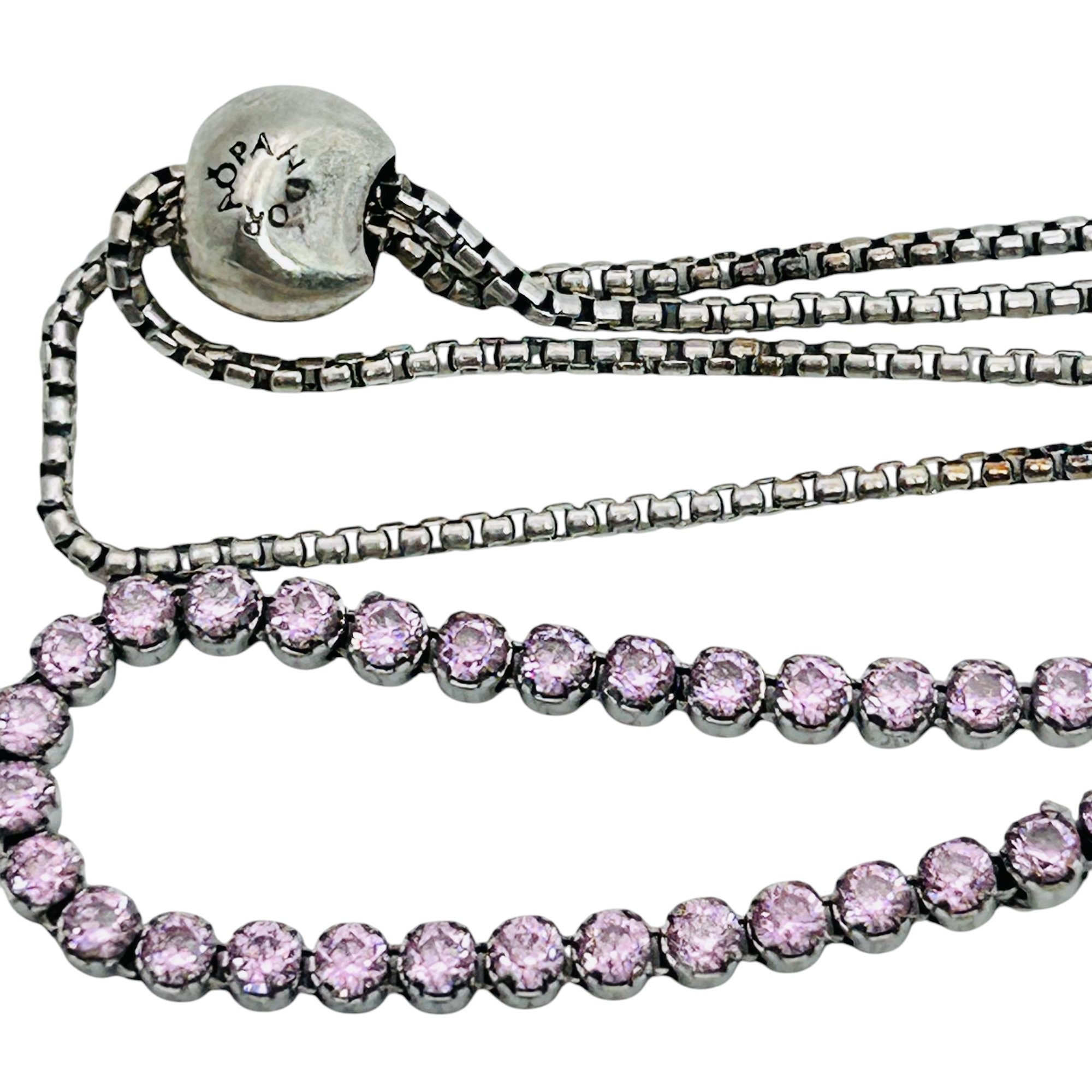 Pandora pink rhinestone sterling adjustable bracelet 2.99g