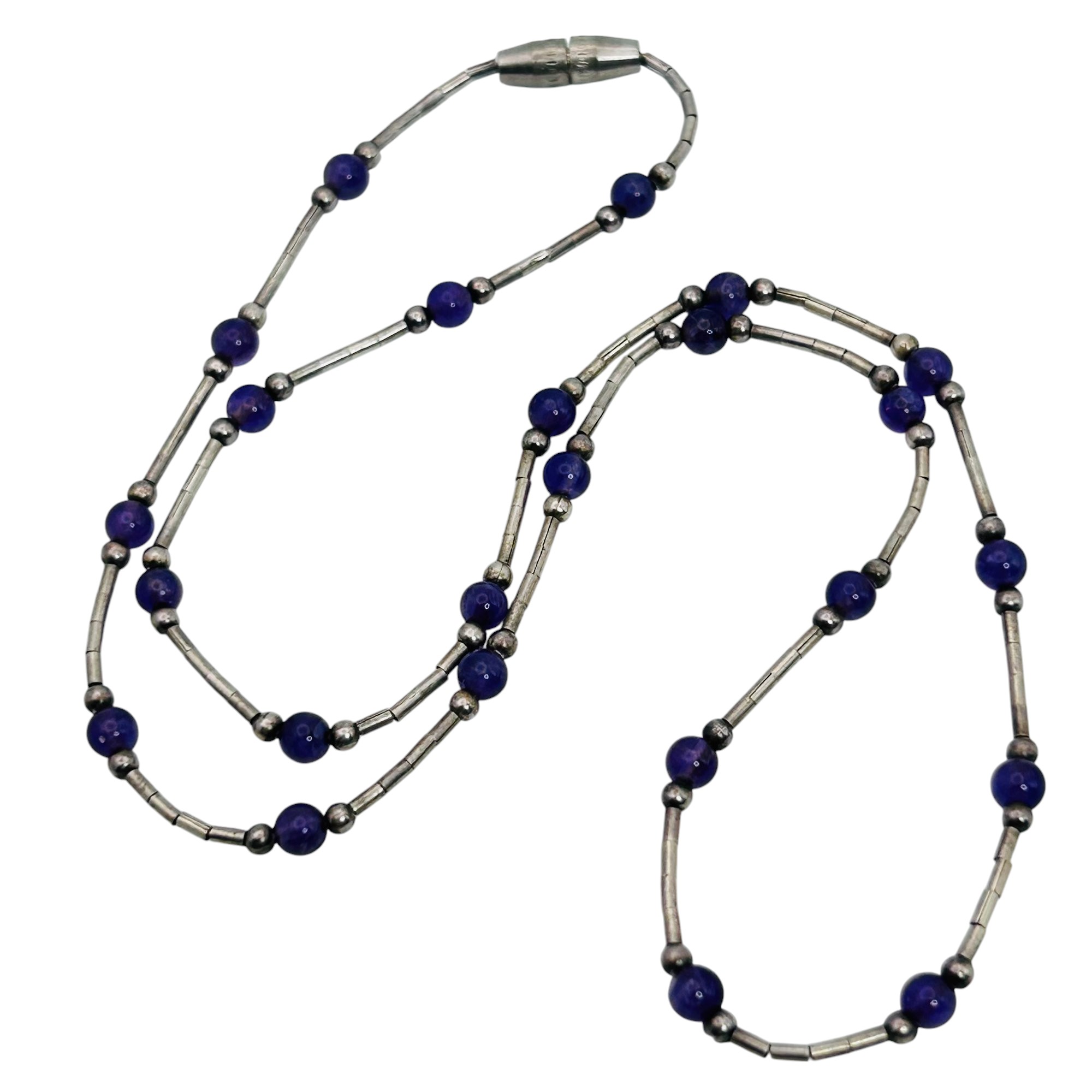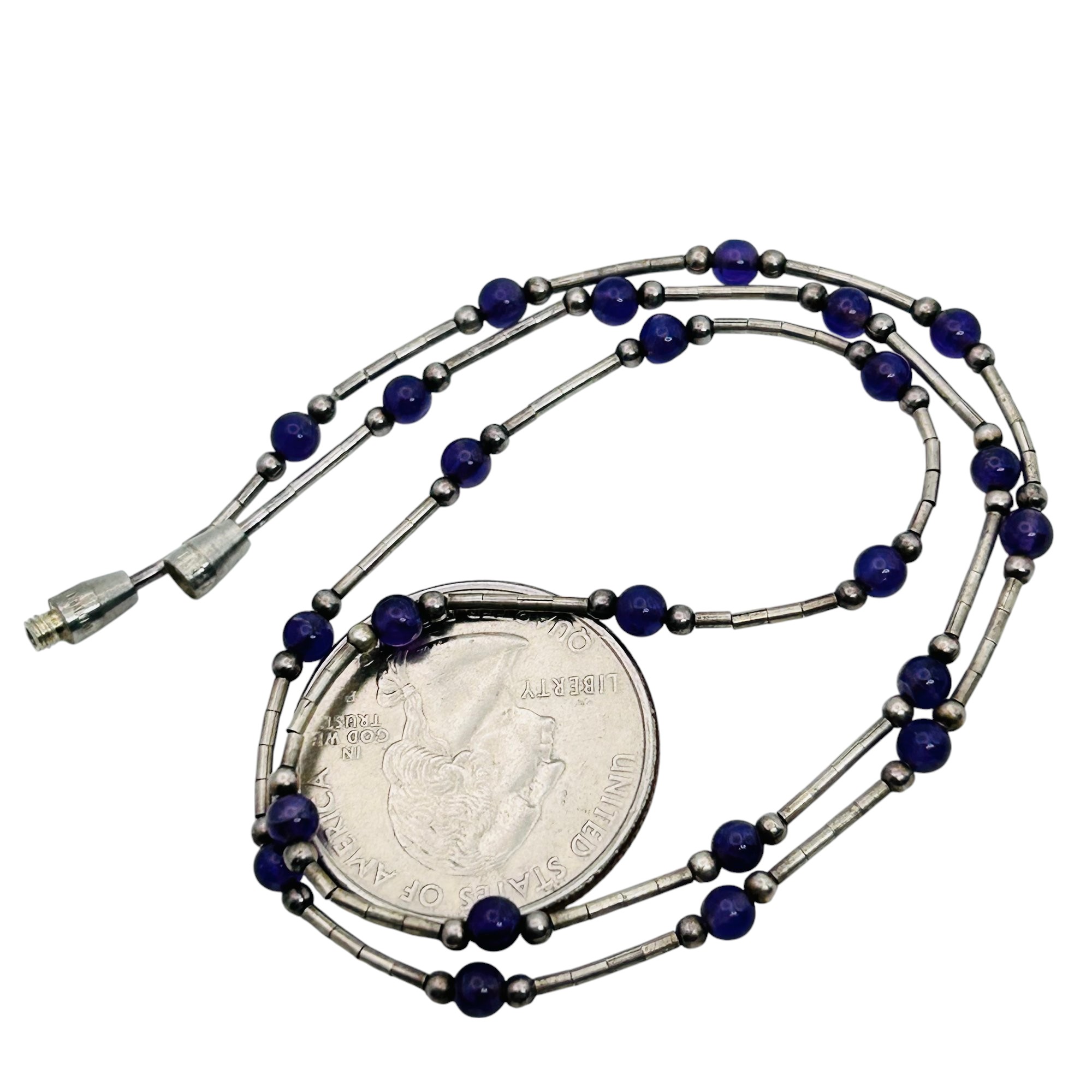 Amethyst bead and sterling bead and bar chain pendant 3.72 g