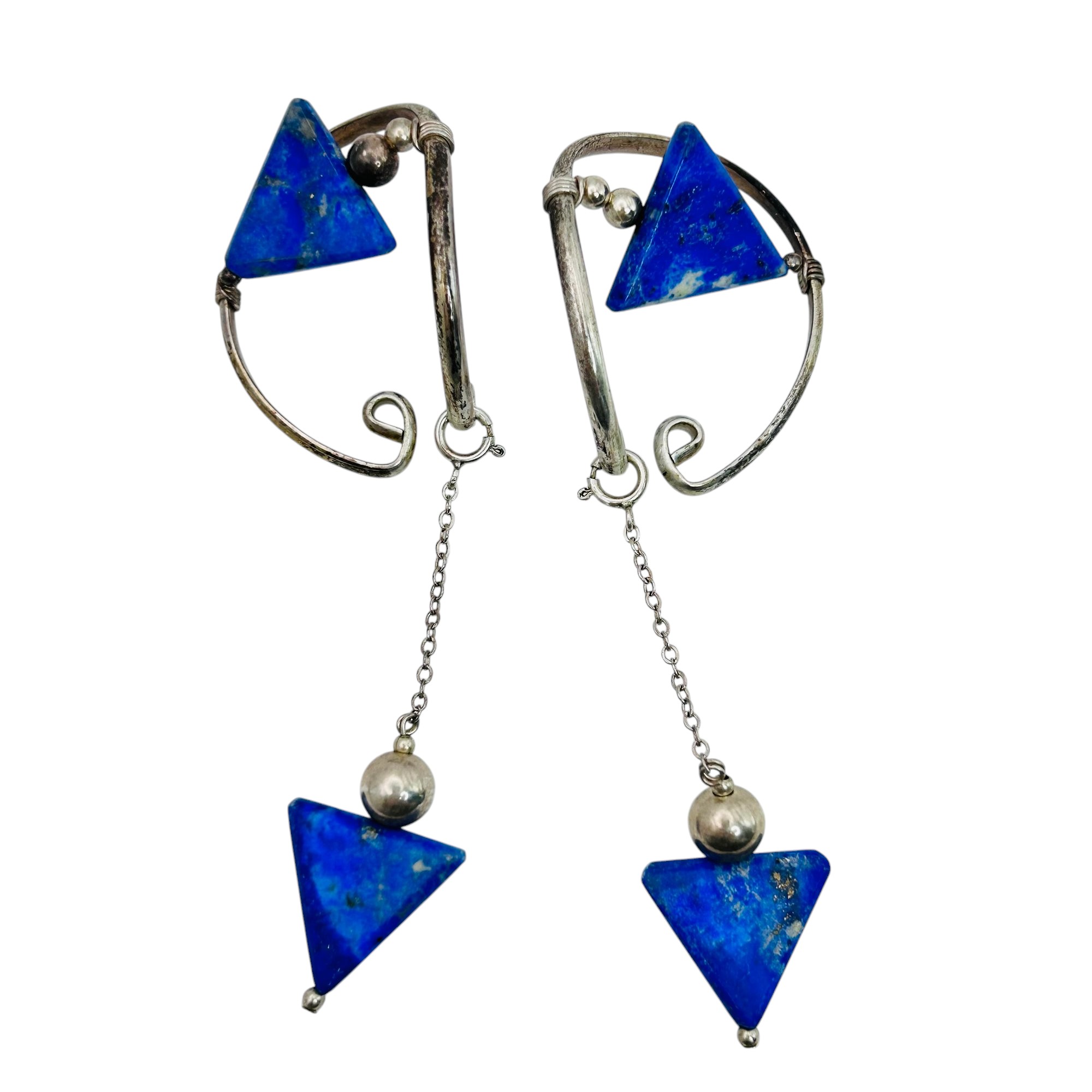 Barbara Barnett Hooker lapis luzili Sterling earrings 15.04 g