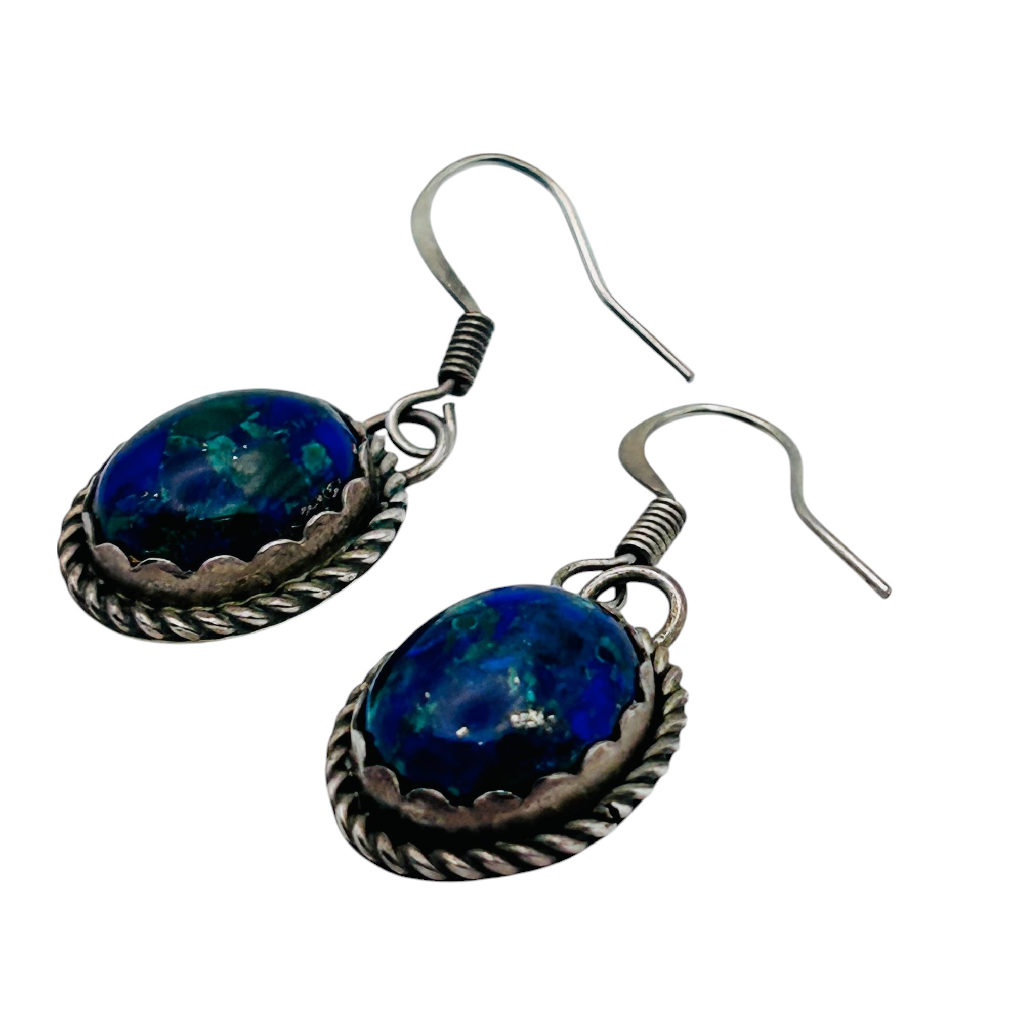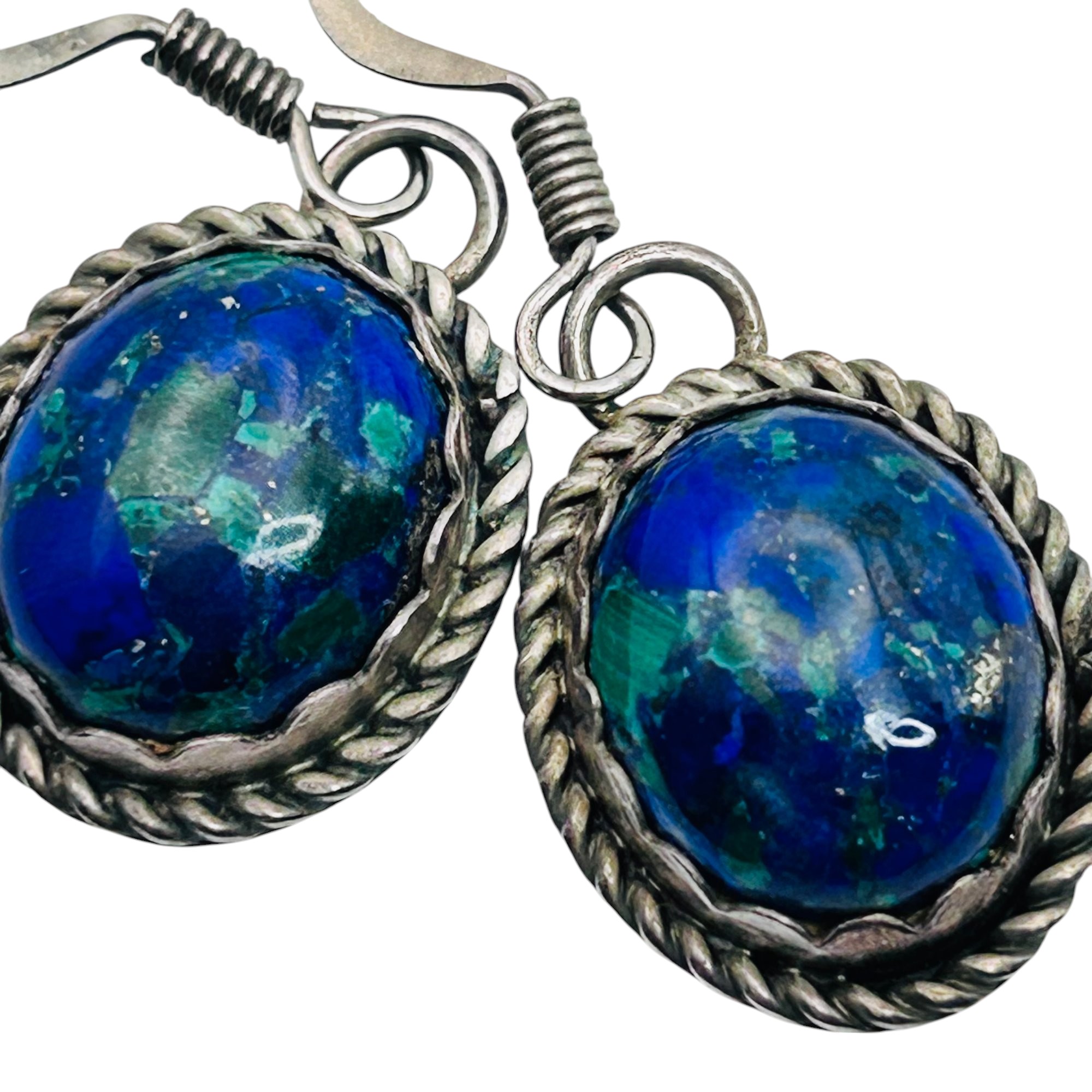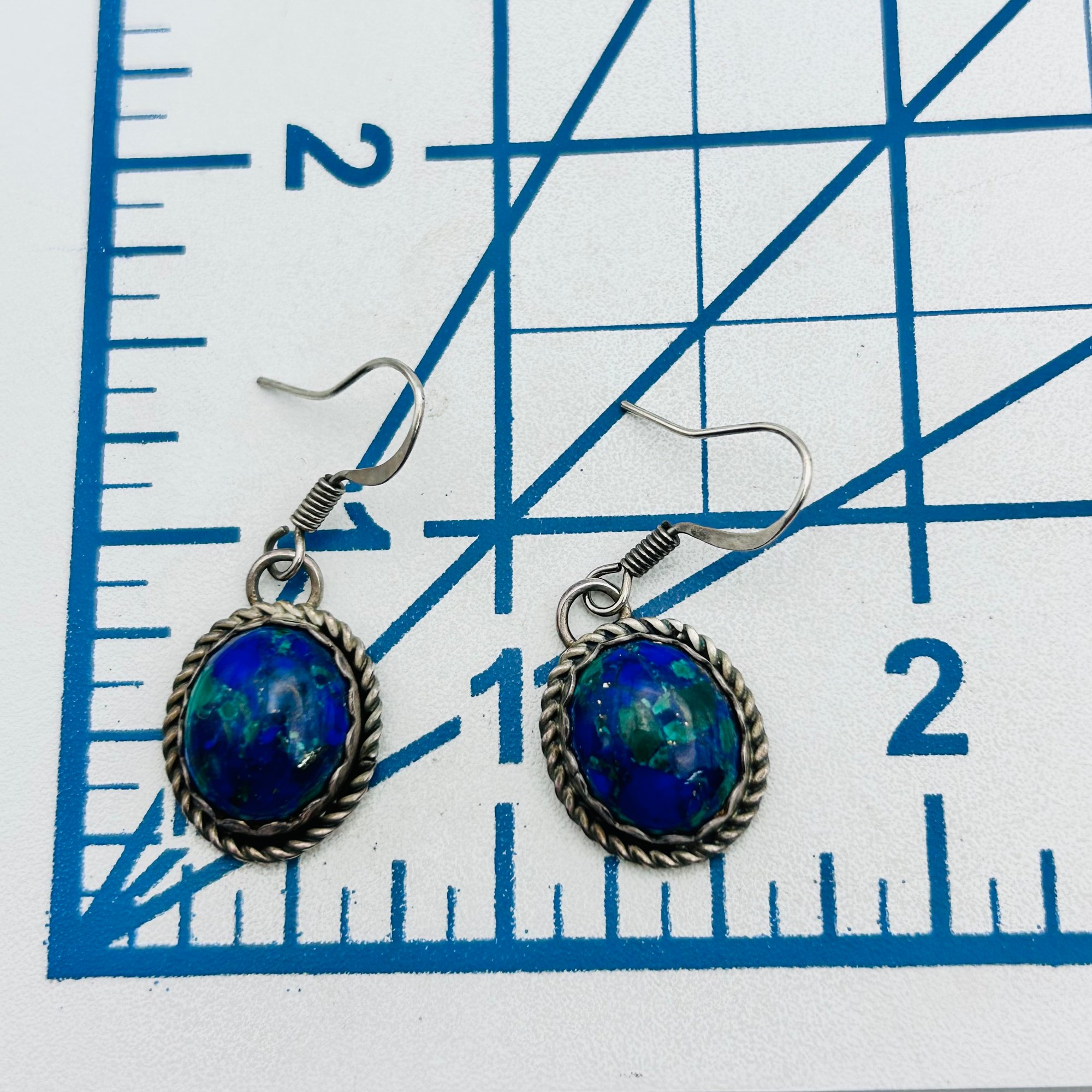 Signed EK Navajo Sterling azurite and malachite earrings 4.42g