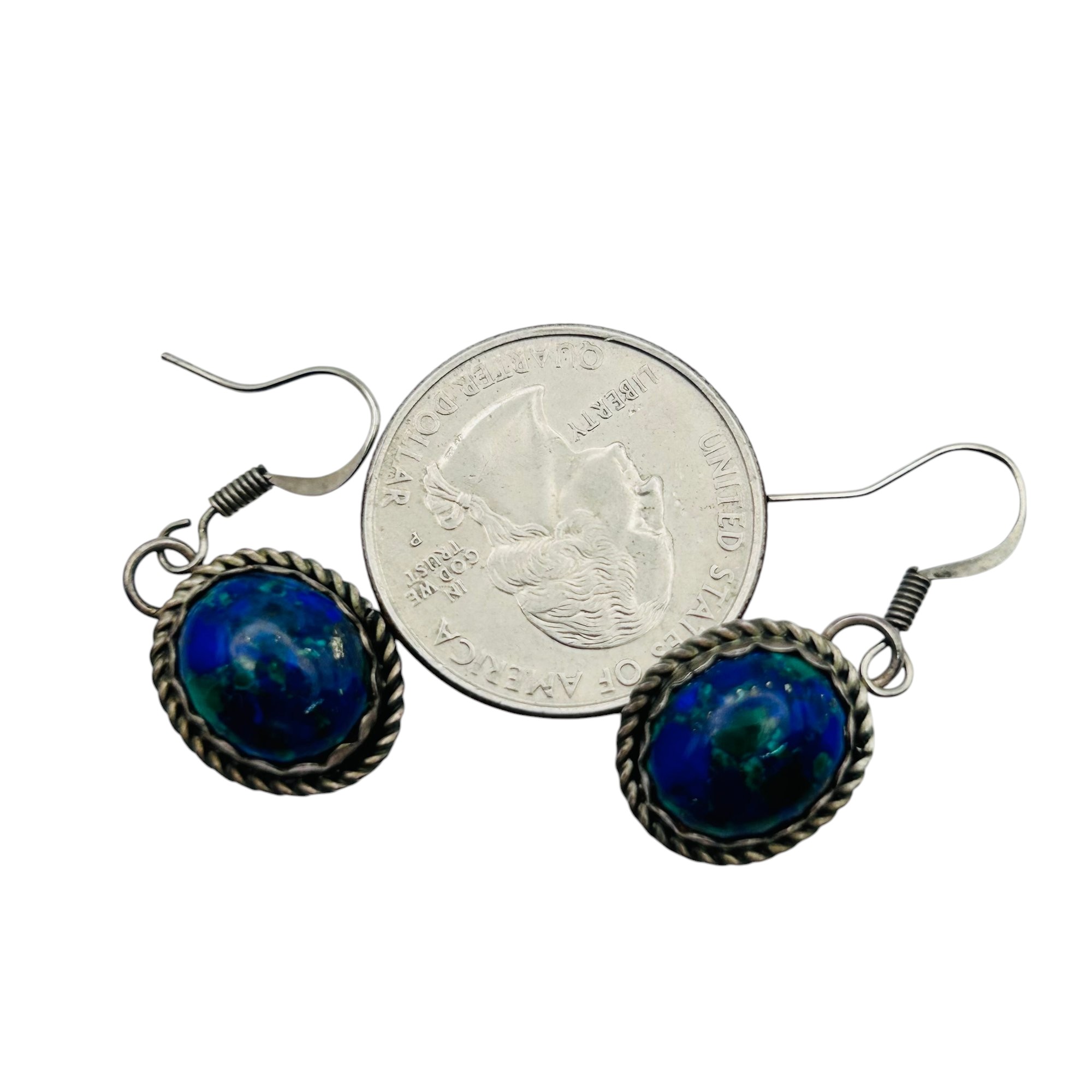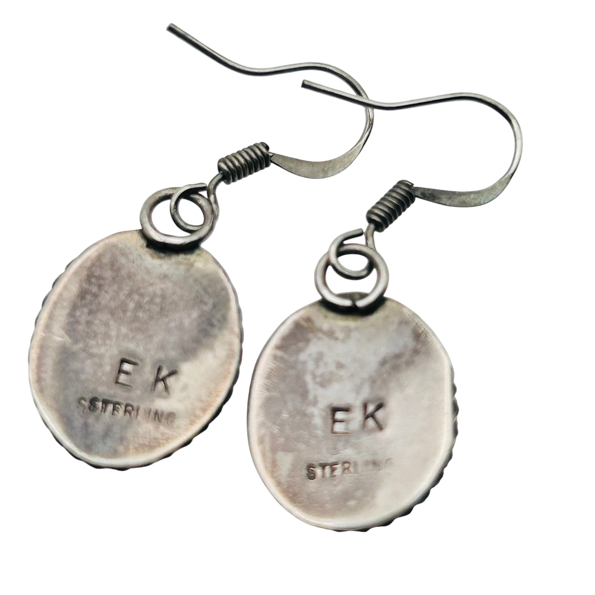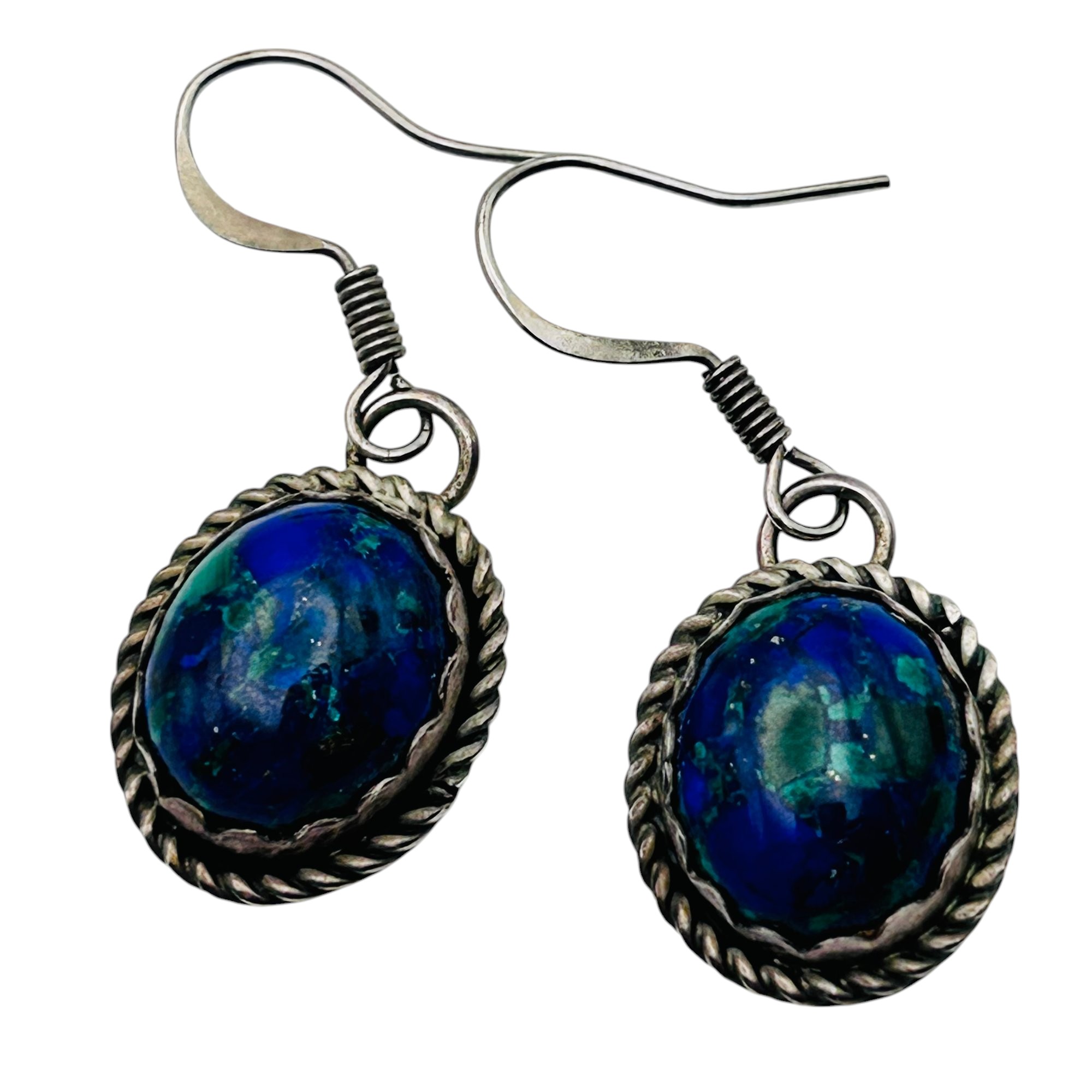 Signed EK Navajo Sterling azurite and malachite earrings 4.42g