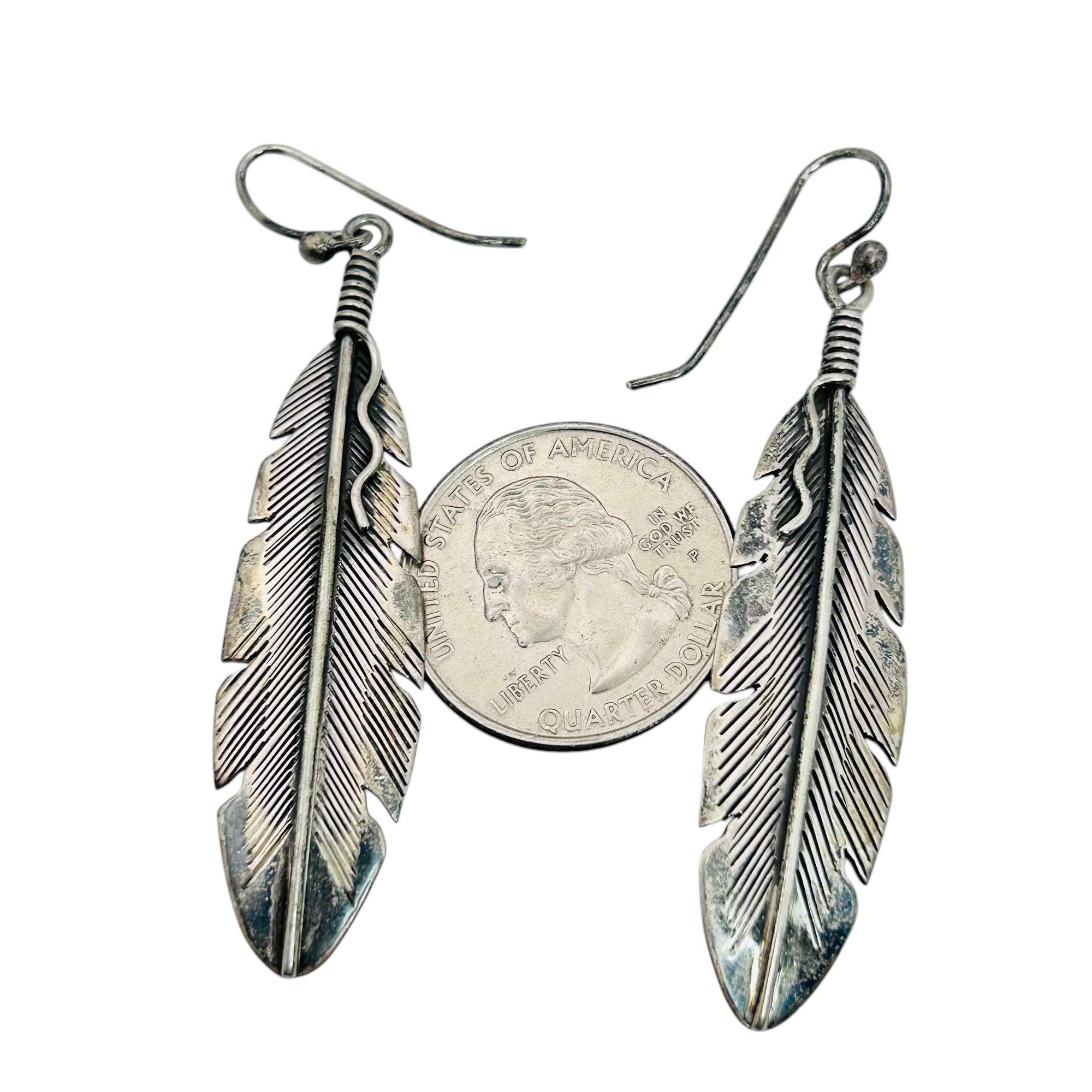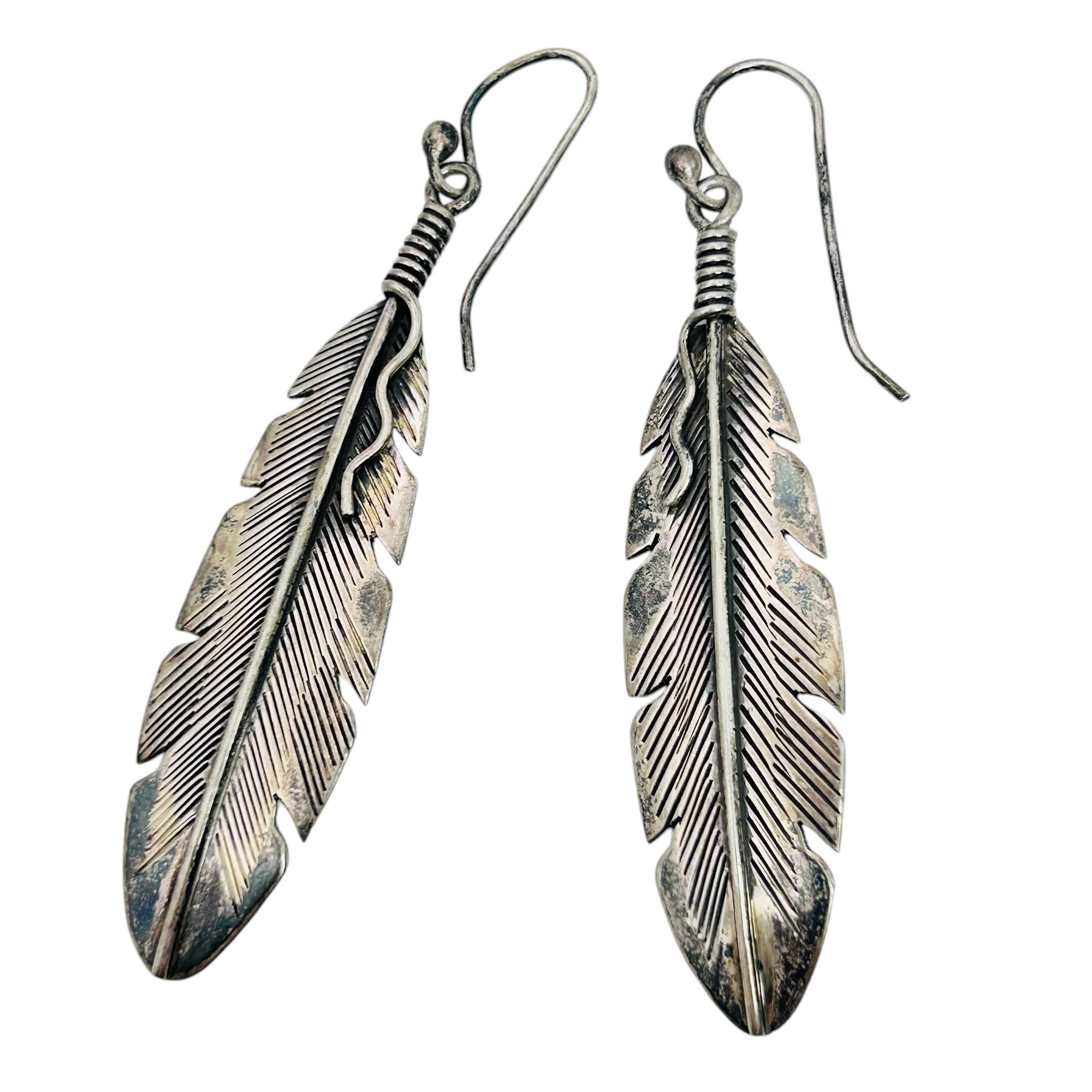 ELGIN TOM Sterling feather dangle earrings 9.48 g