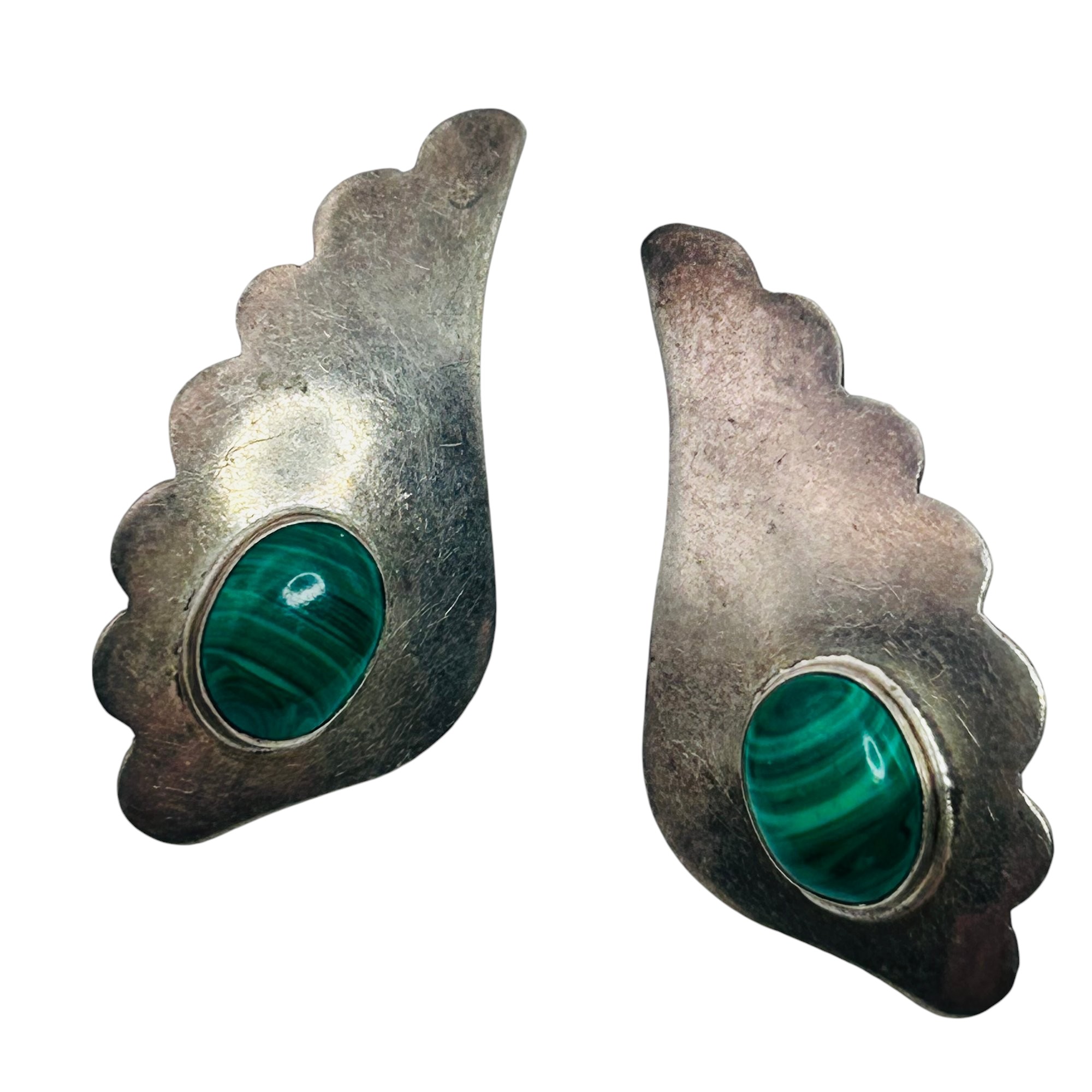 Mexico MALACHITE Sterling wing earrings 4.98 g