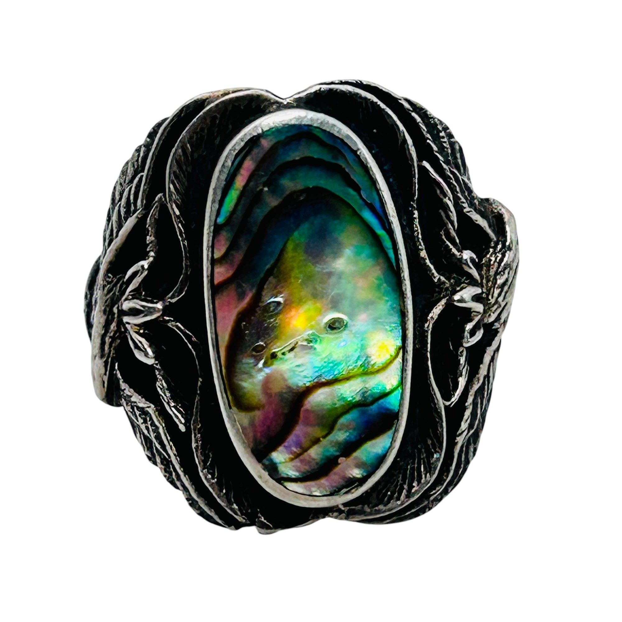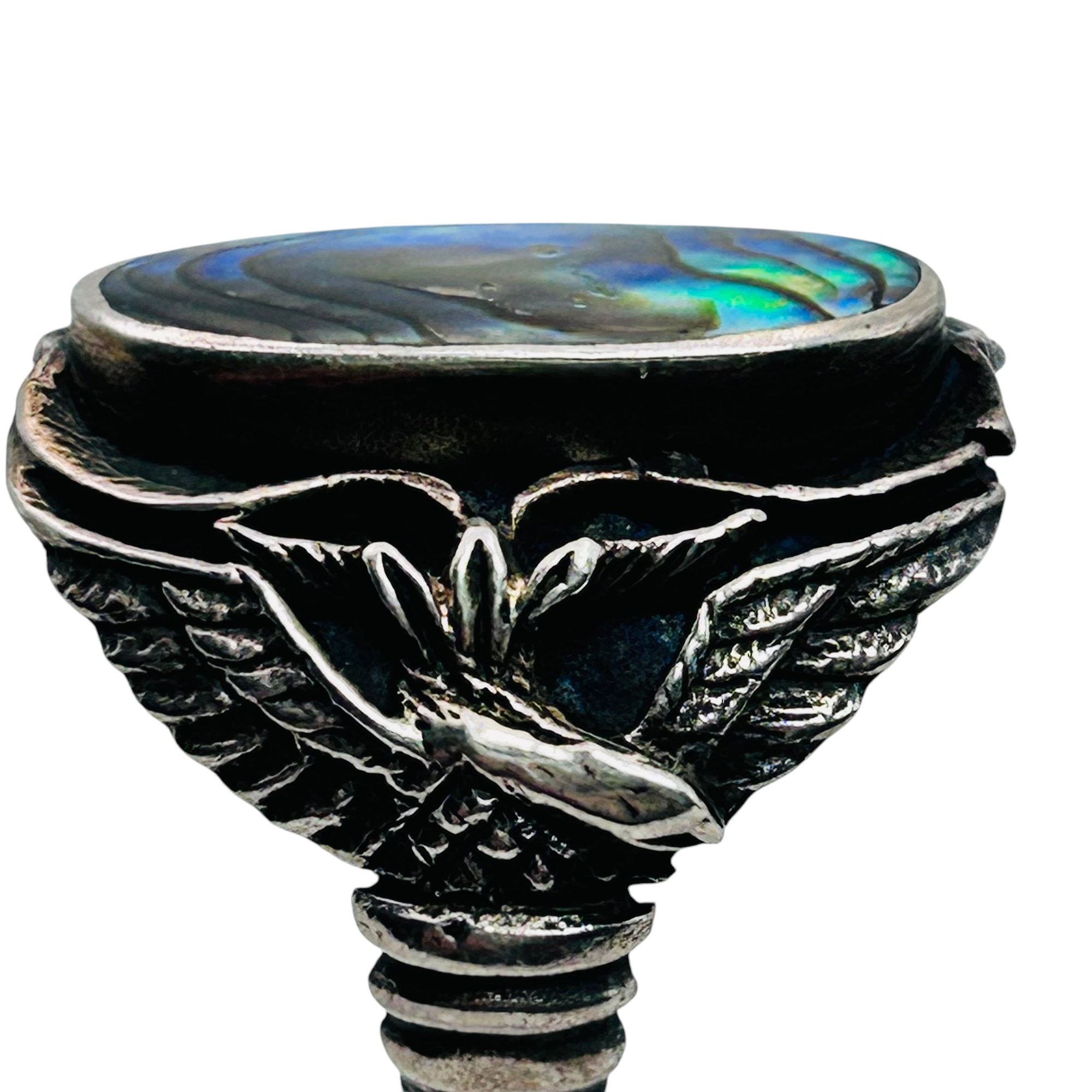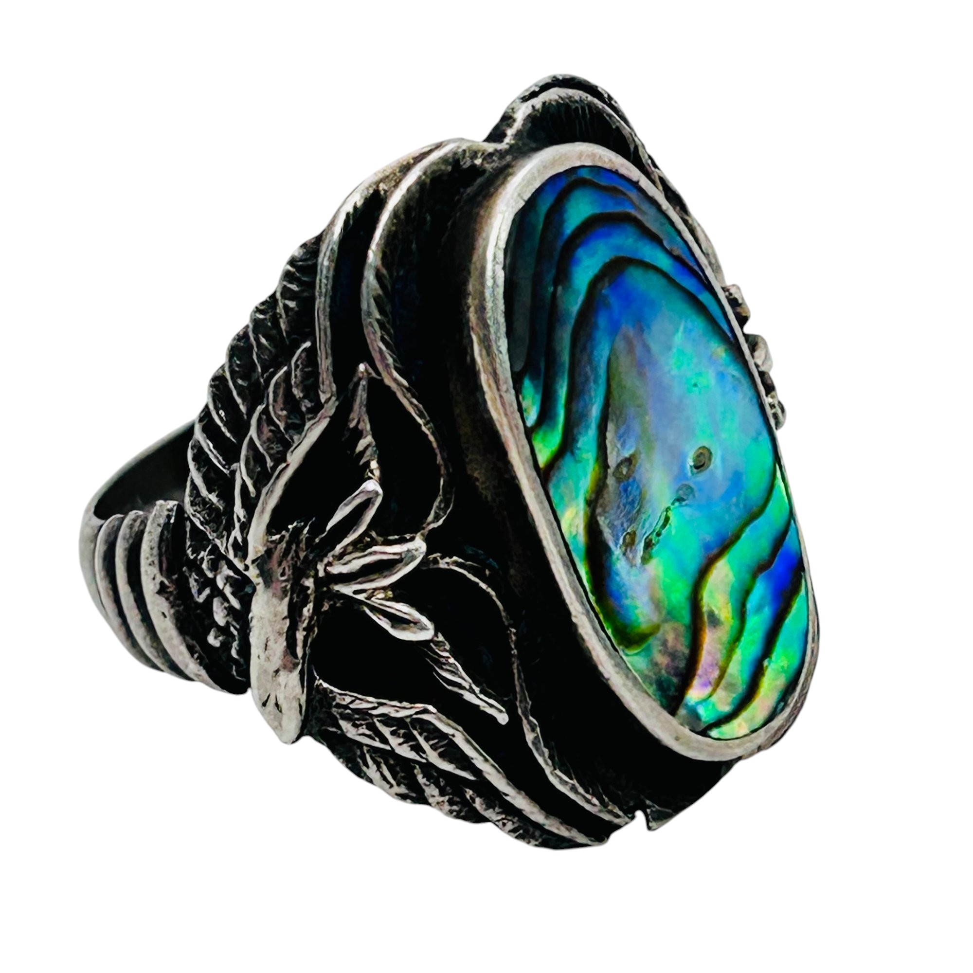 Sterling Abalone statement ring eagle design band size 7 6.38 g
