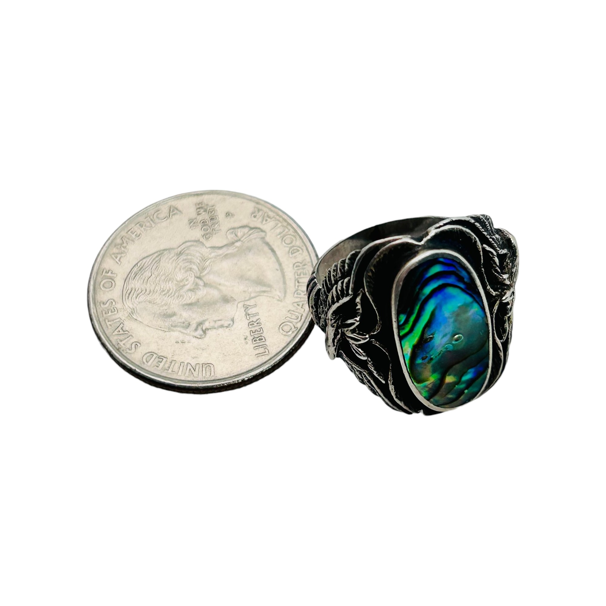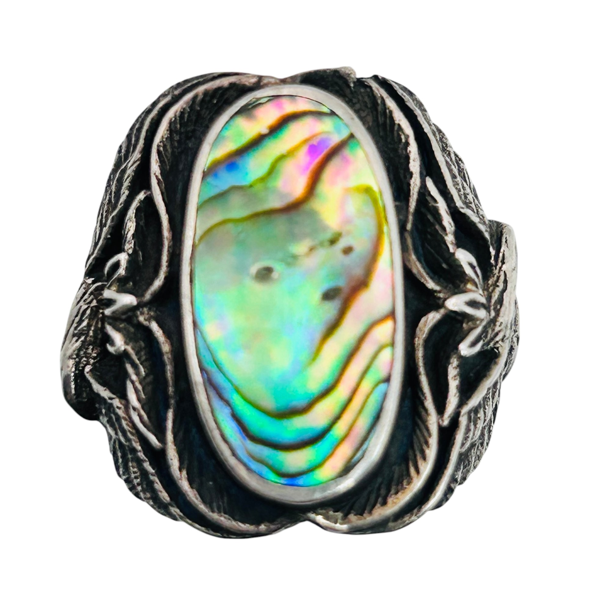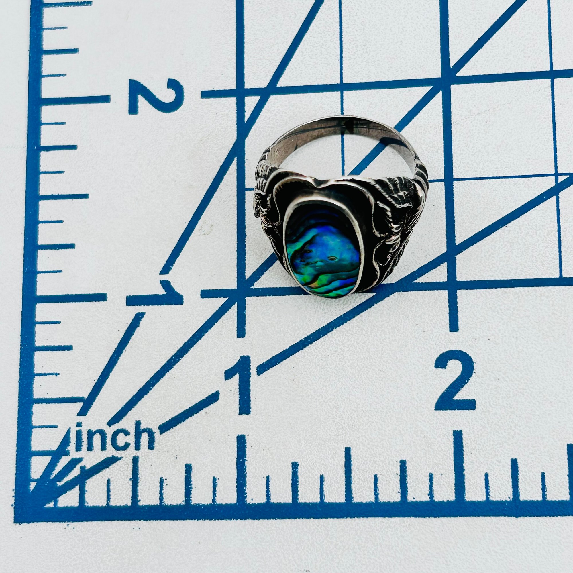 Sterling Abalone statement ring eagle design band size 7 6.38 g