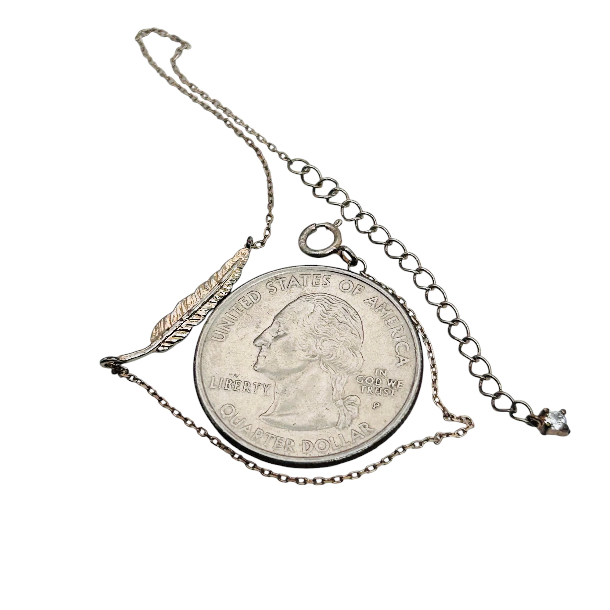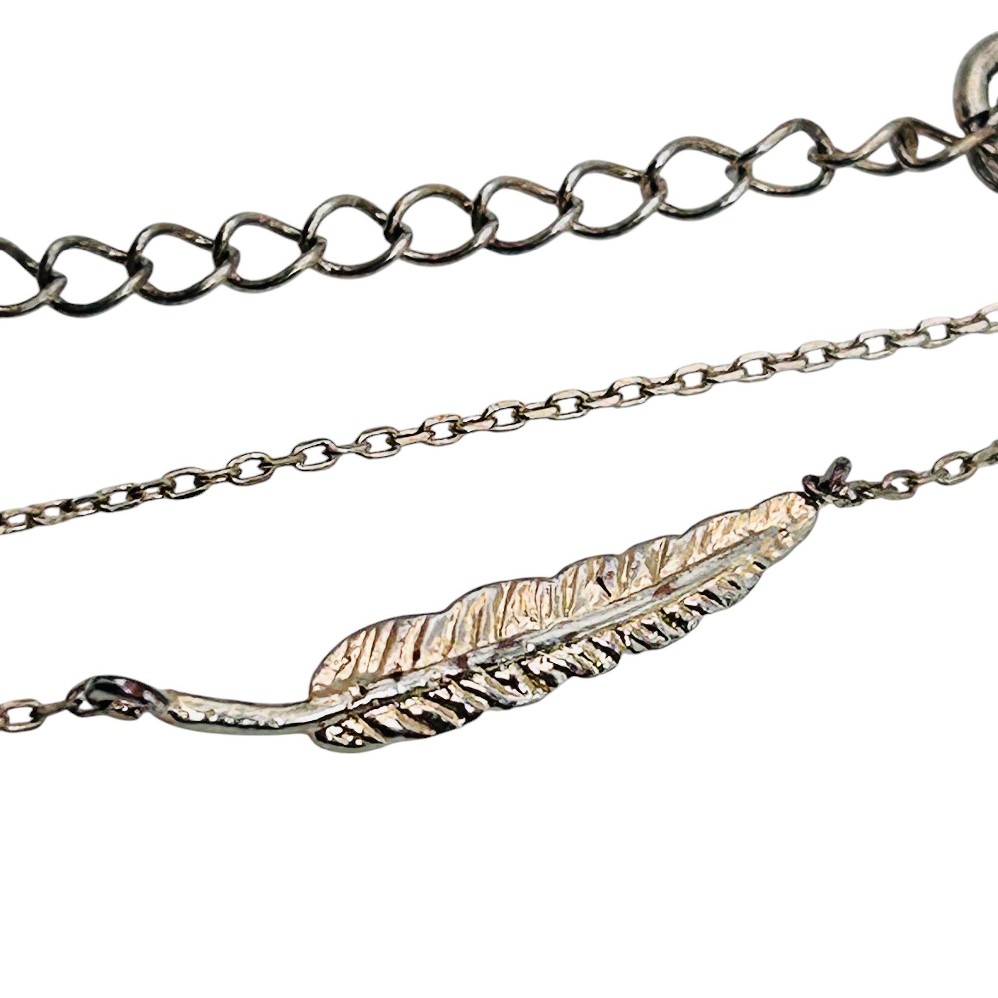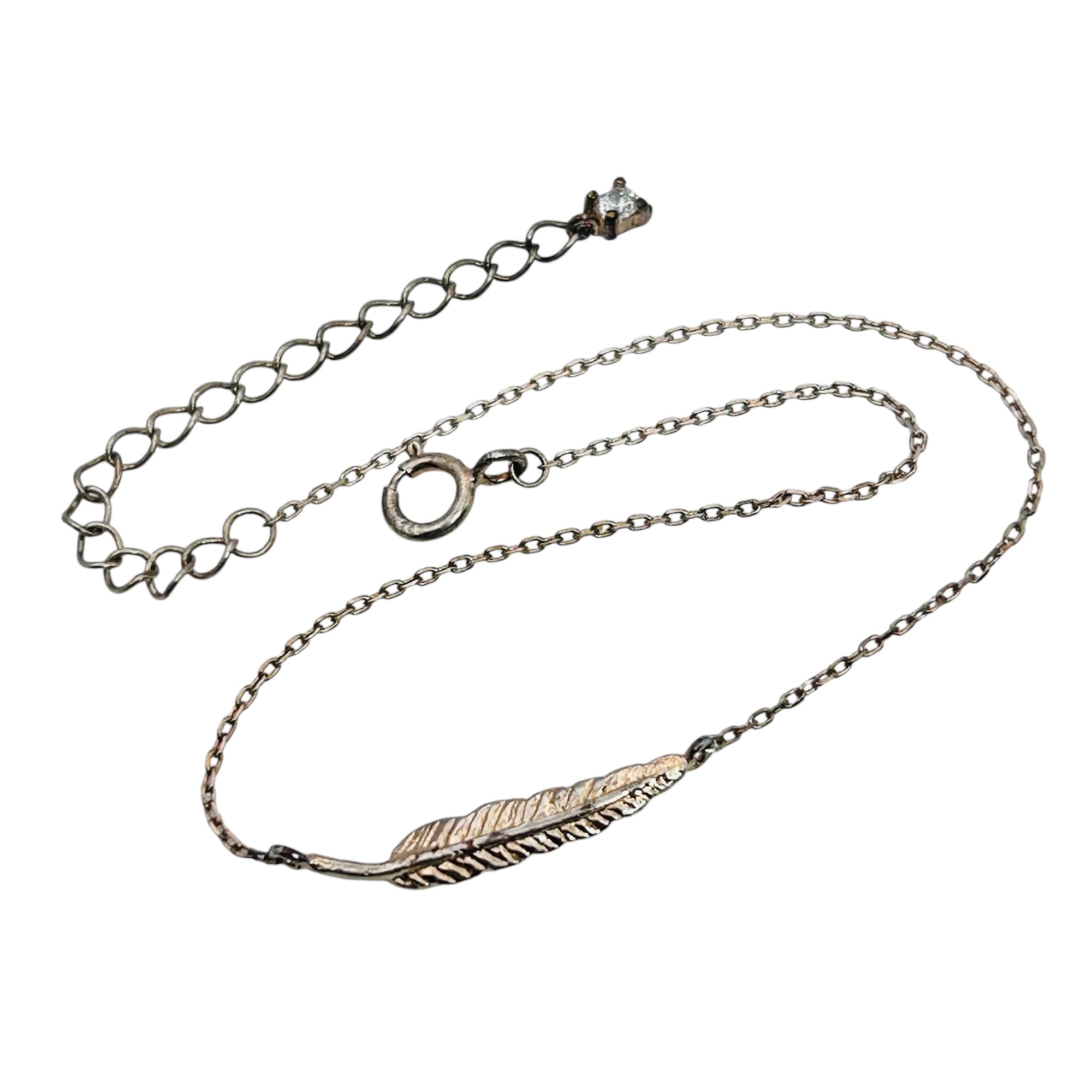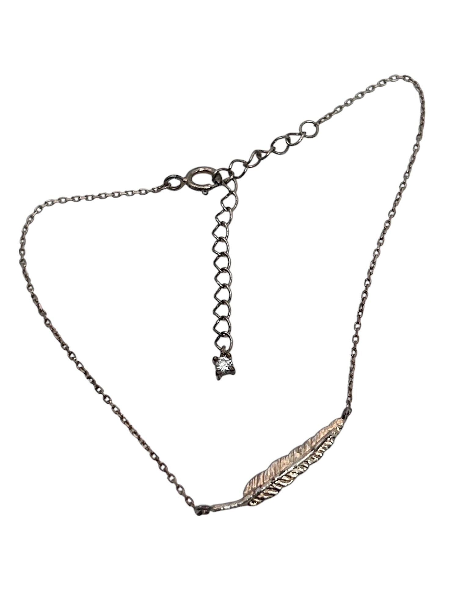 Sterling feather pendant cable chain adjustable bracelet .84 g