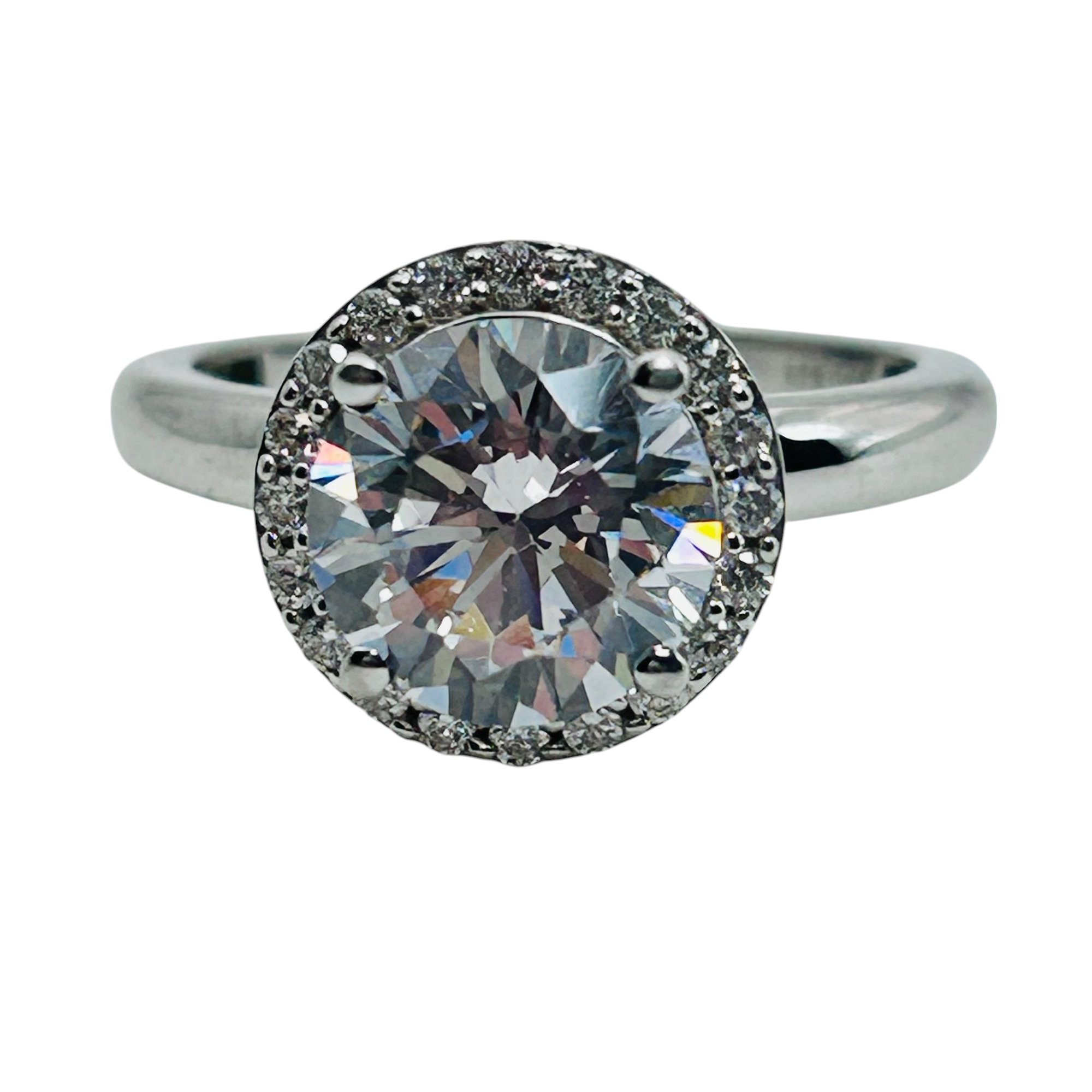 SJD Sterling cubic zirconia halo set ring size 5 2.79 g