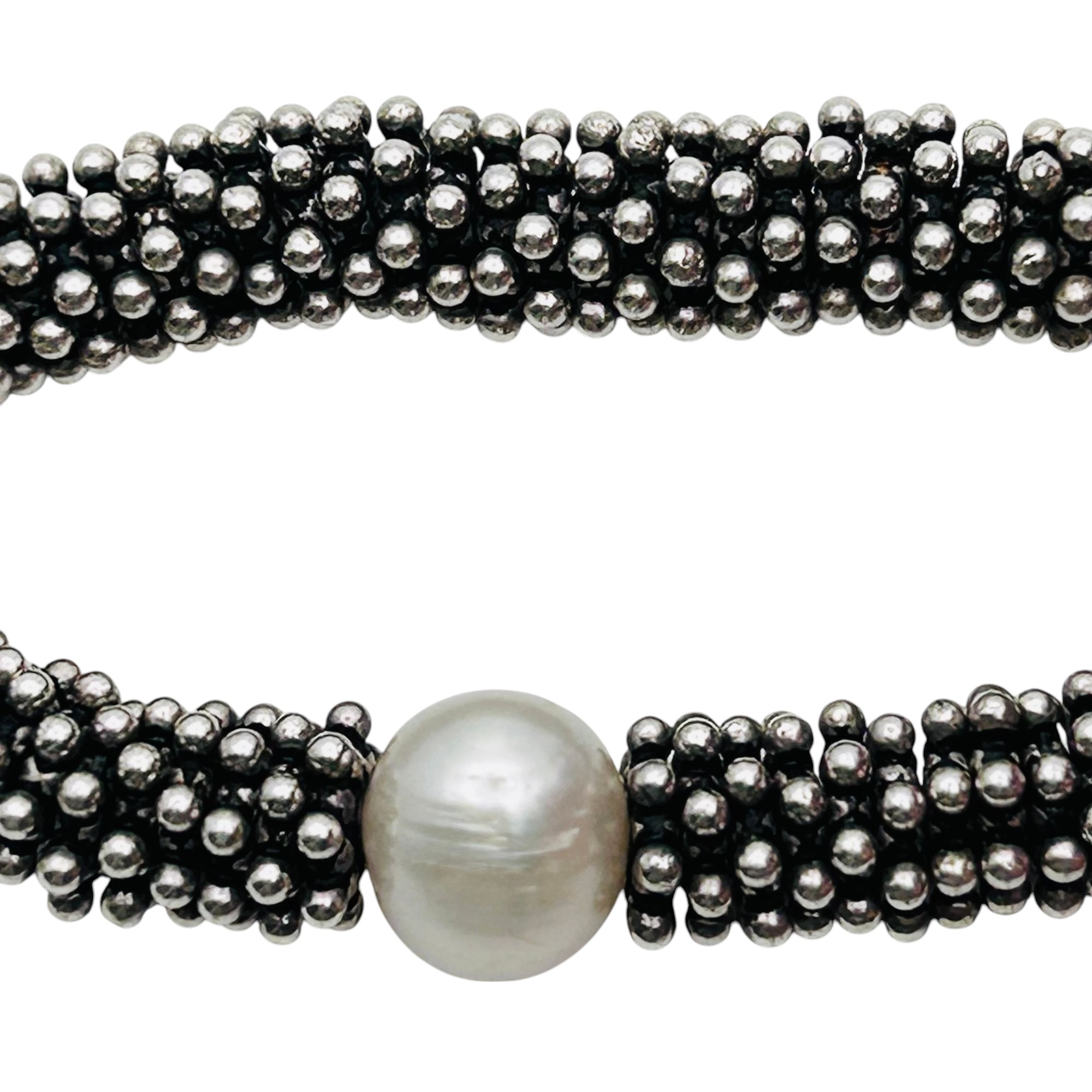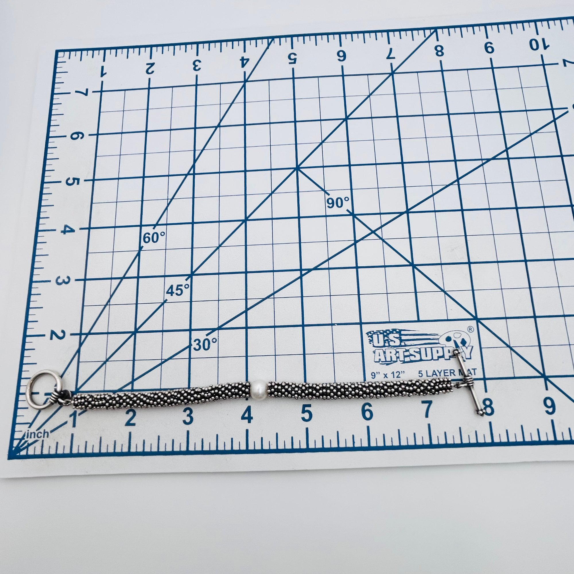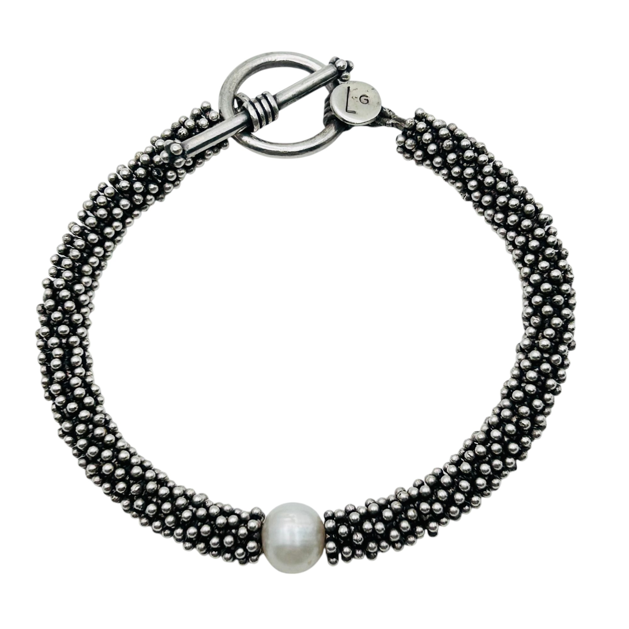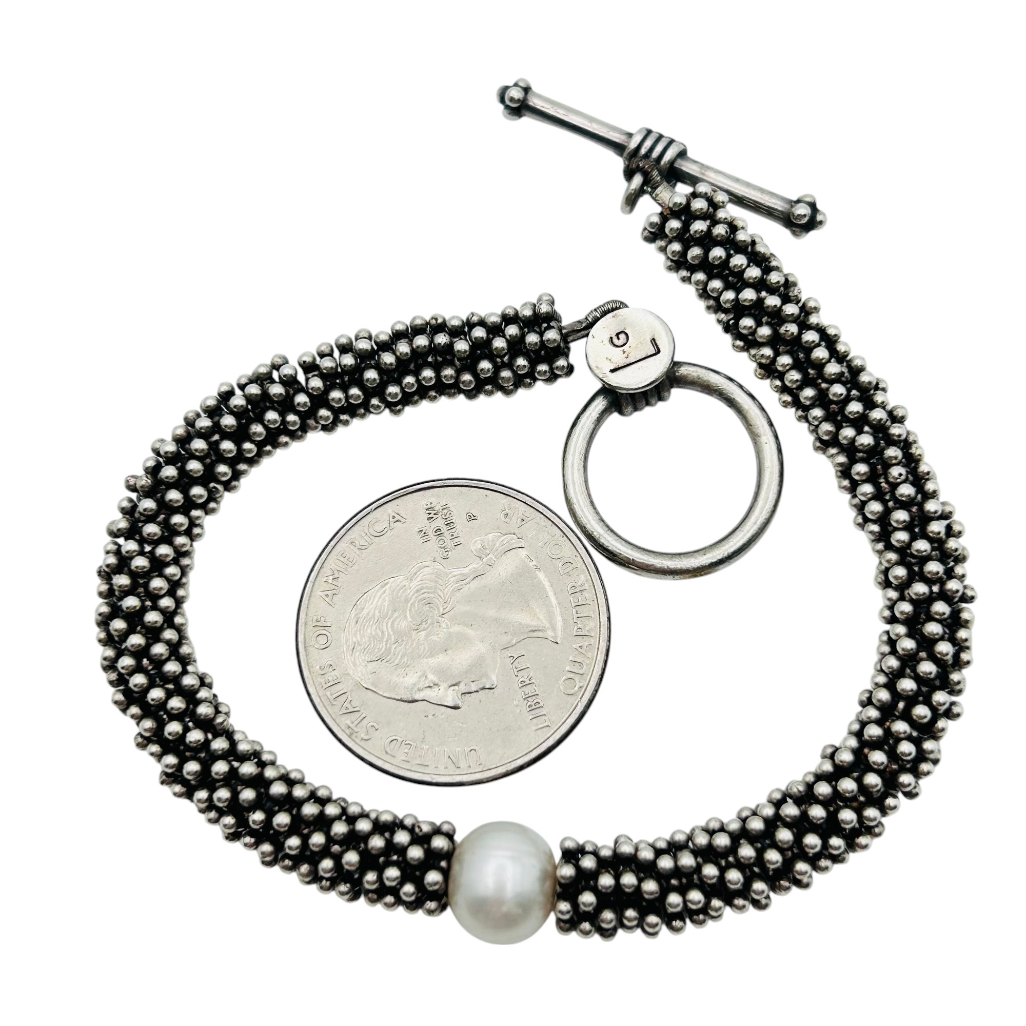 Signed LG Sterling and pearl caviar bead bracelet 34.24 g toggle clasp