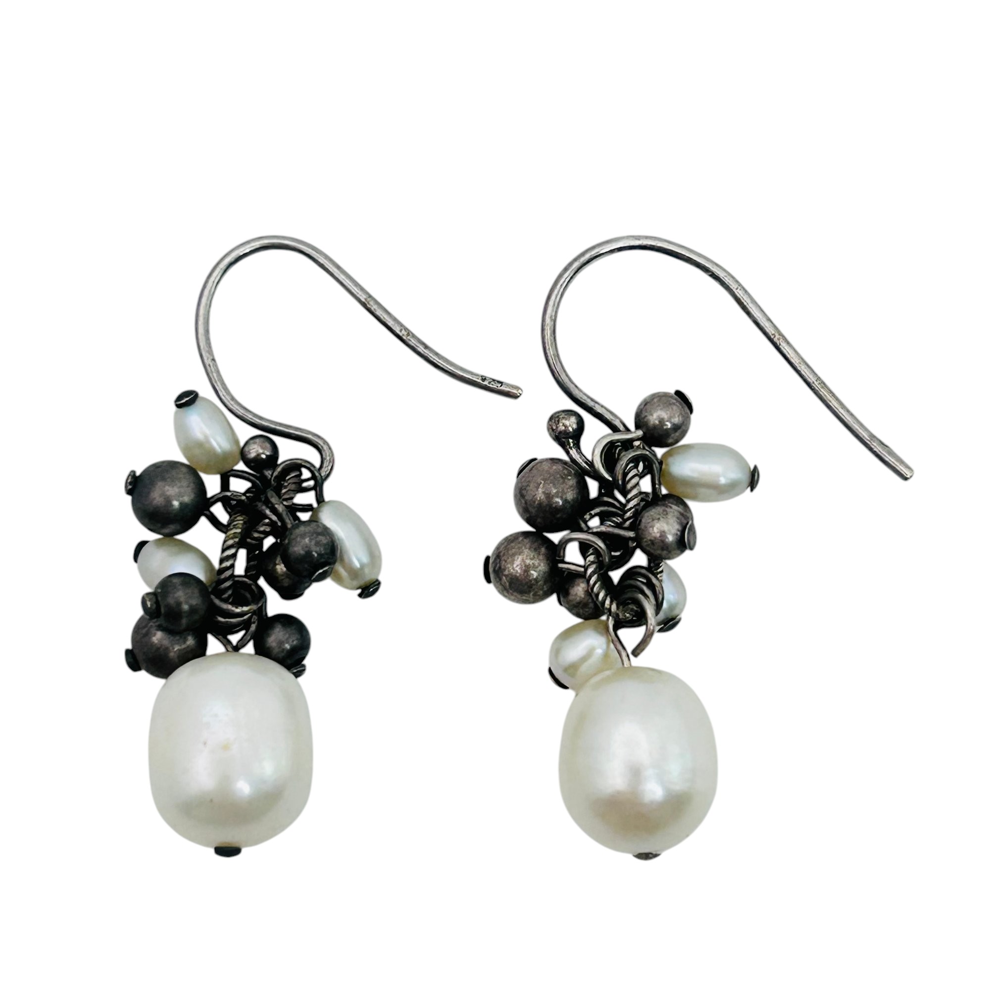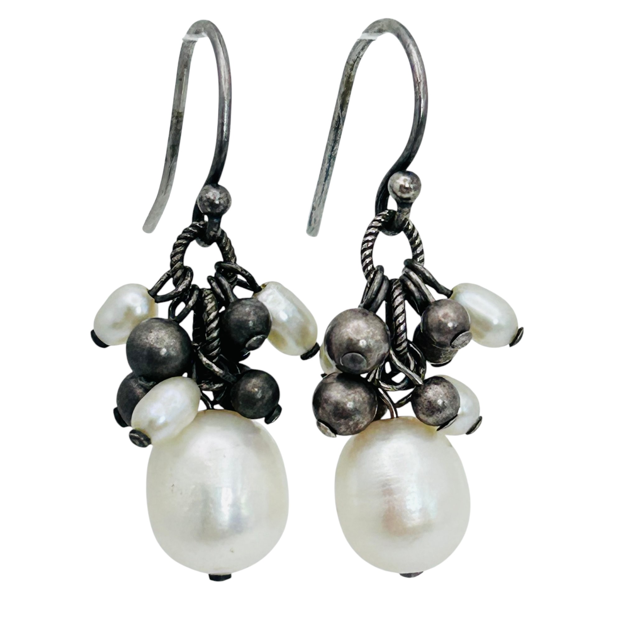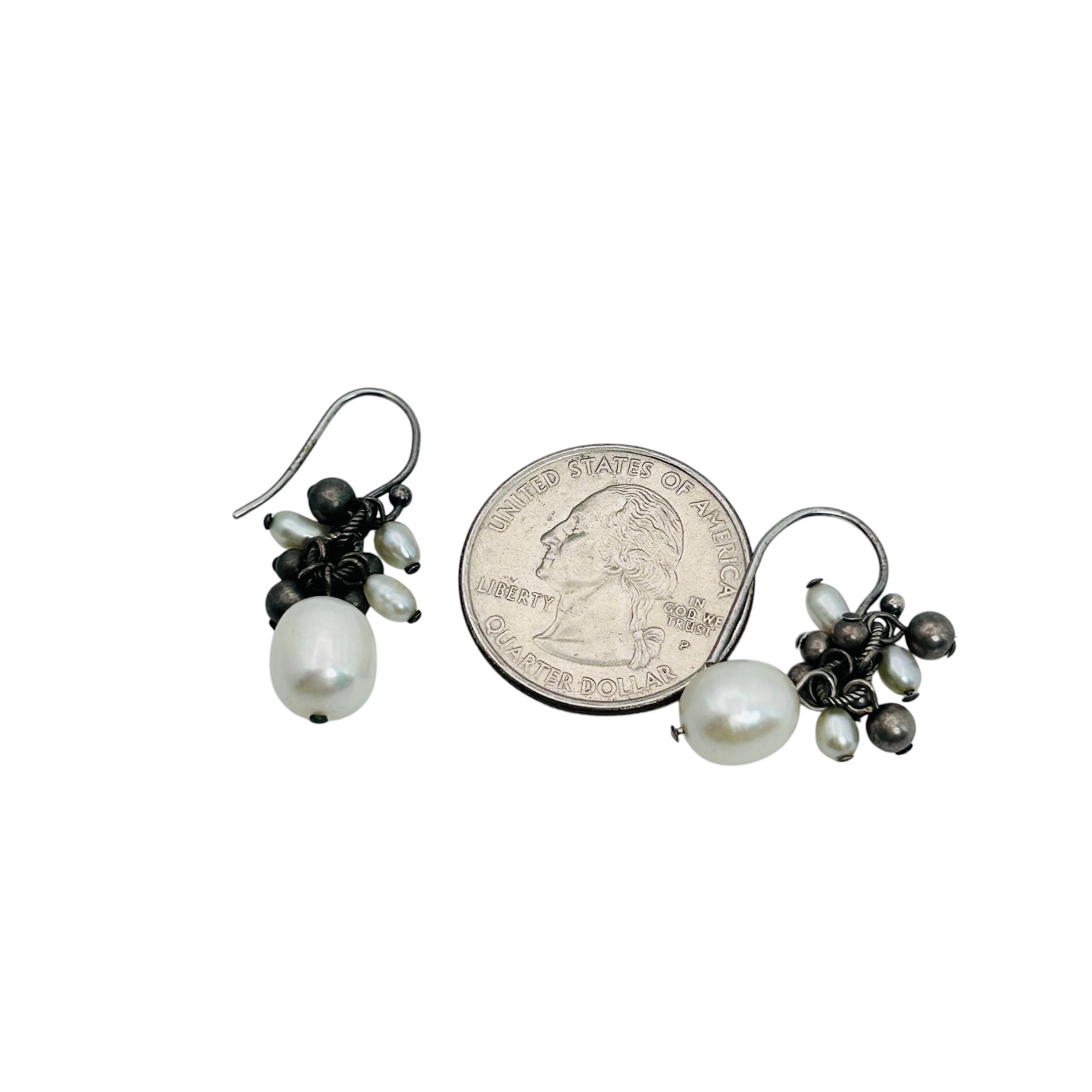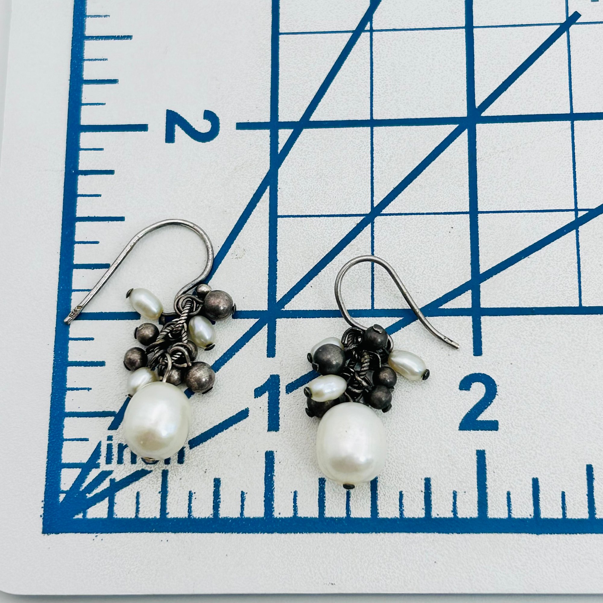 Pearl cluster sterling dangle earrings 4.42 g