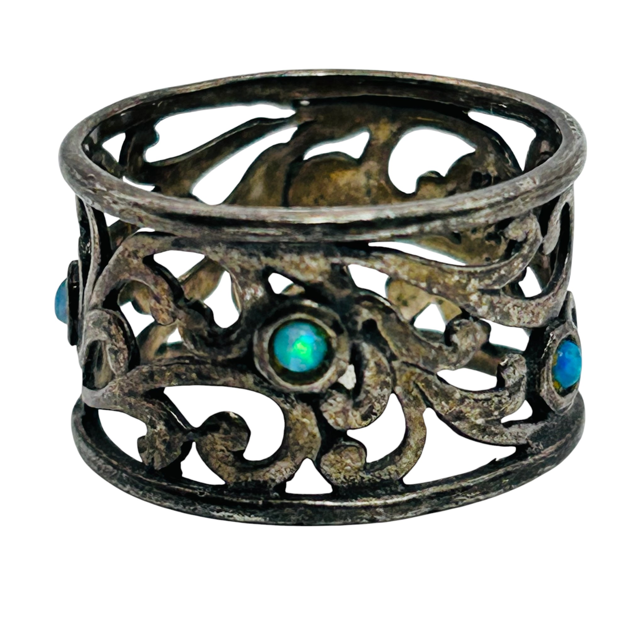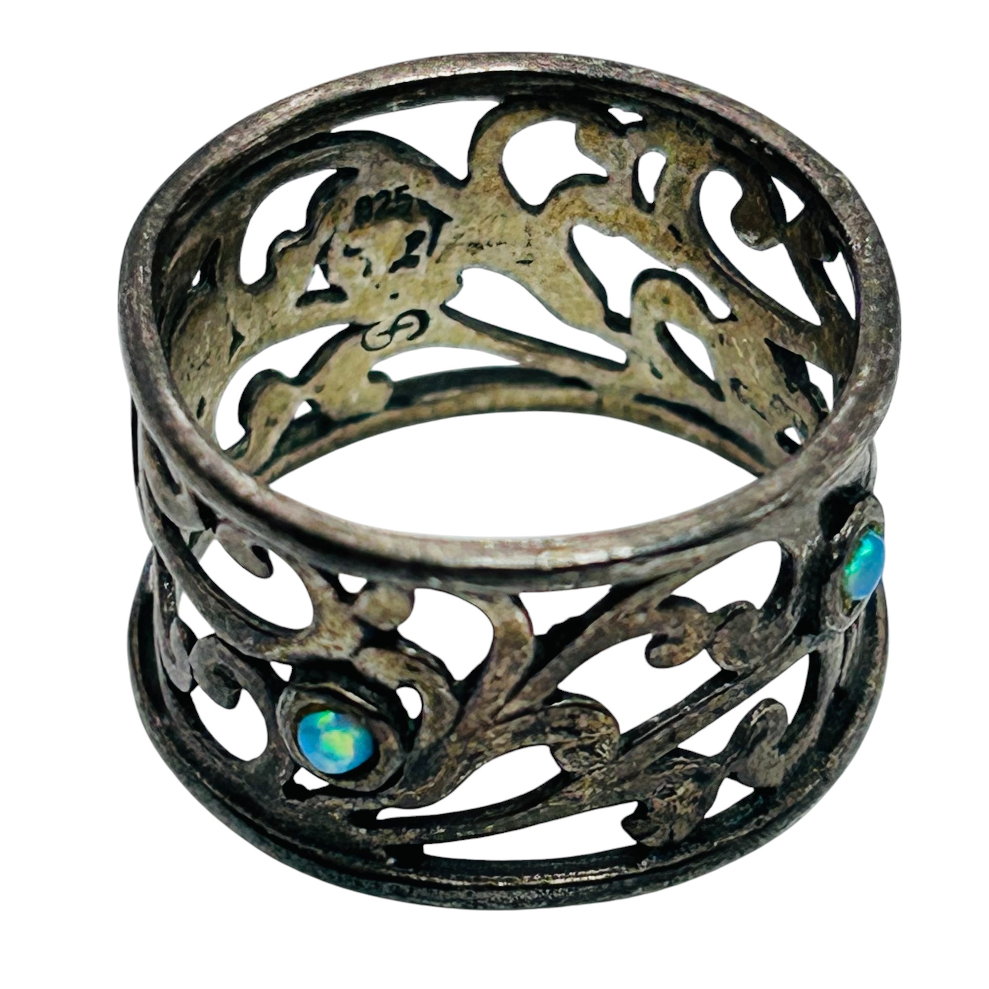 Opal Sterling Scroll Ring Size 7, 3.59 G