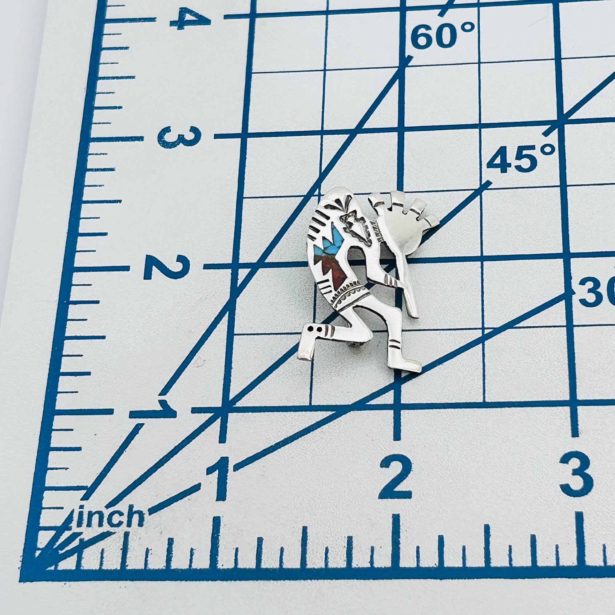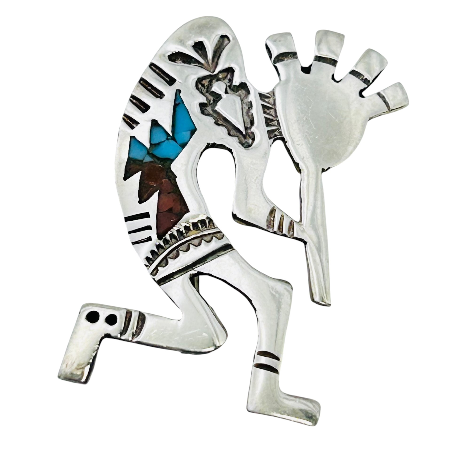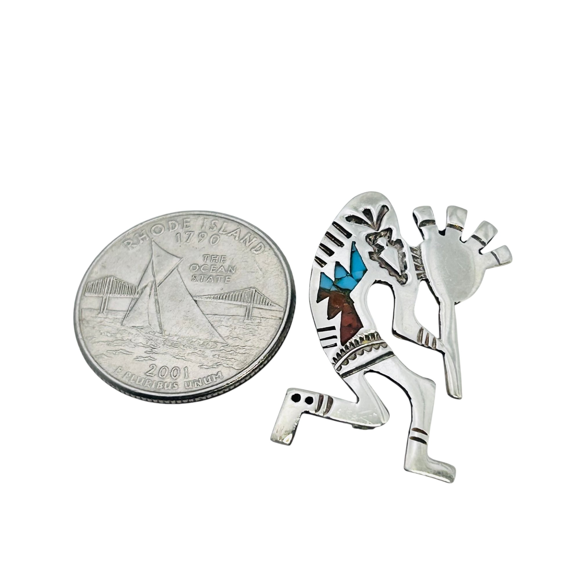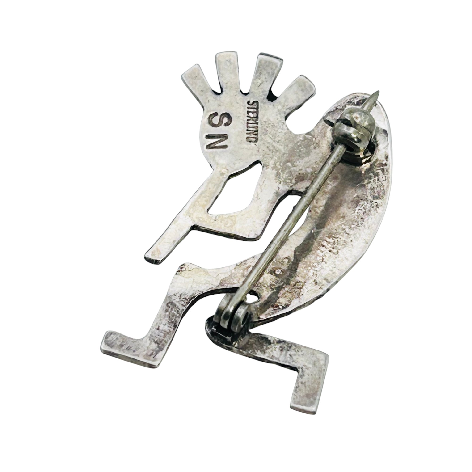 NS Kokopelli Native American Sterling Inlaid Turquoise Brooch, 3.31 G