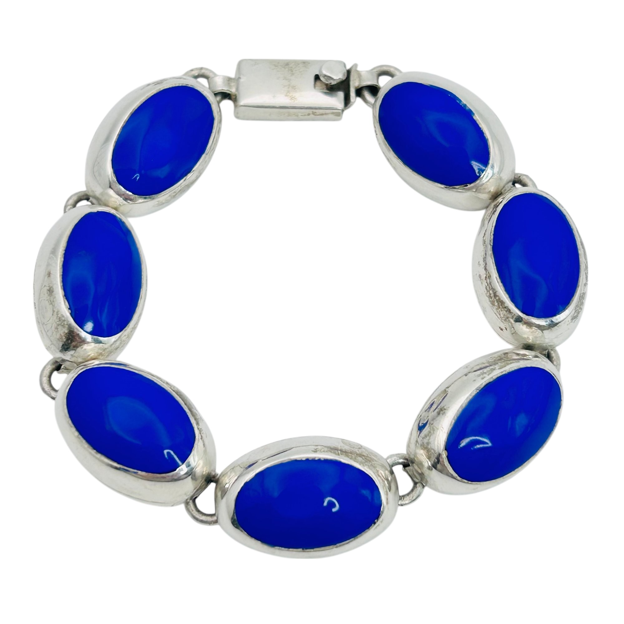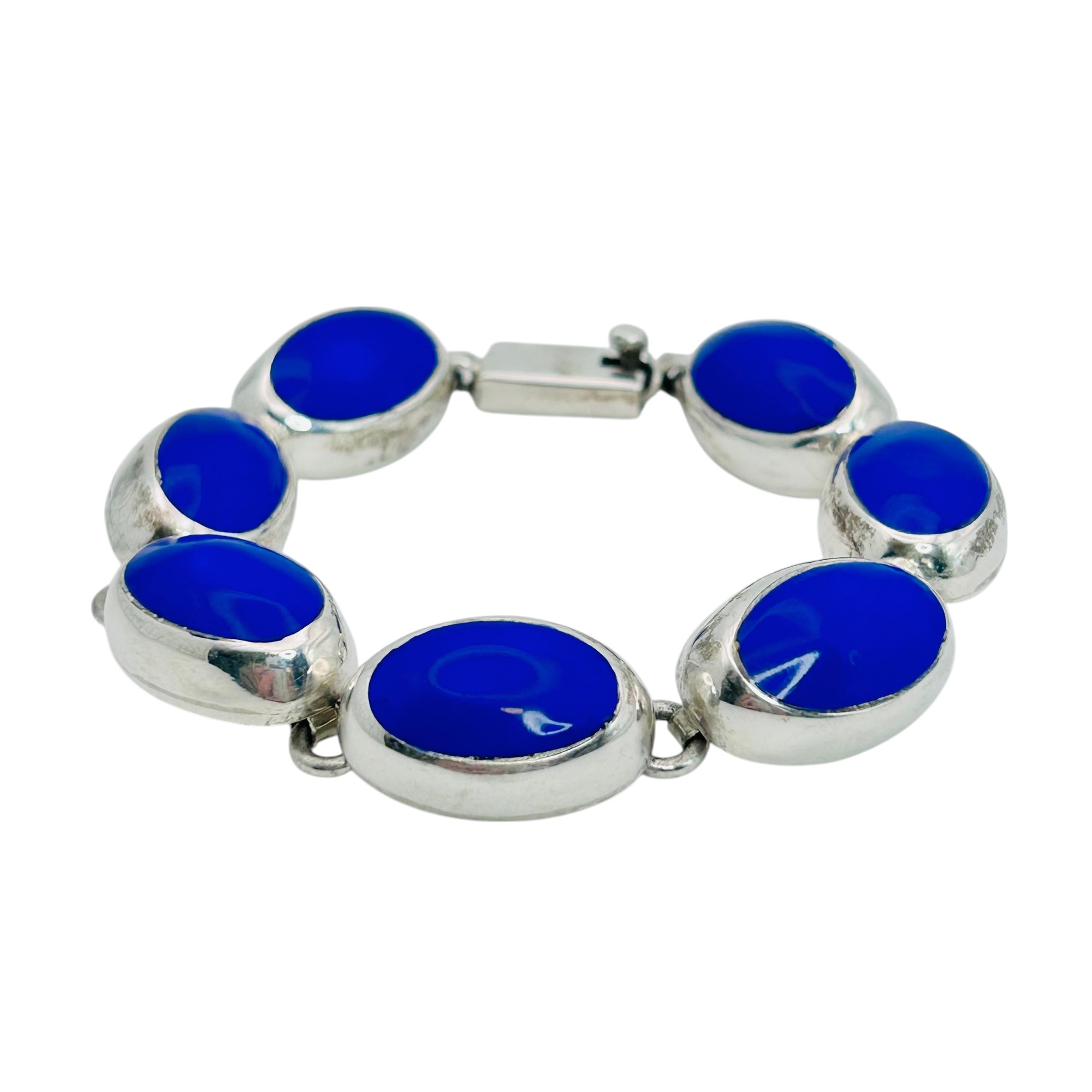 Taxco TD-151 Mexico sterling lapis luzili linked bracelet 45.25g