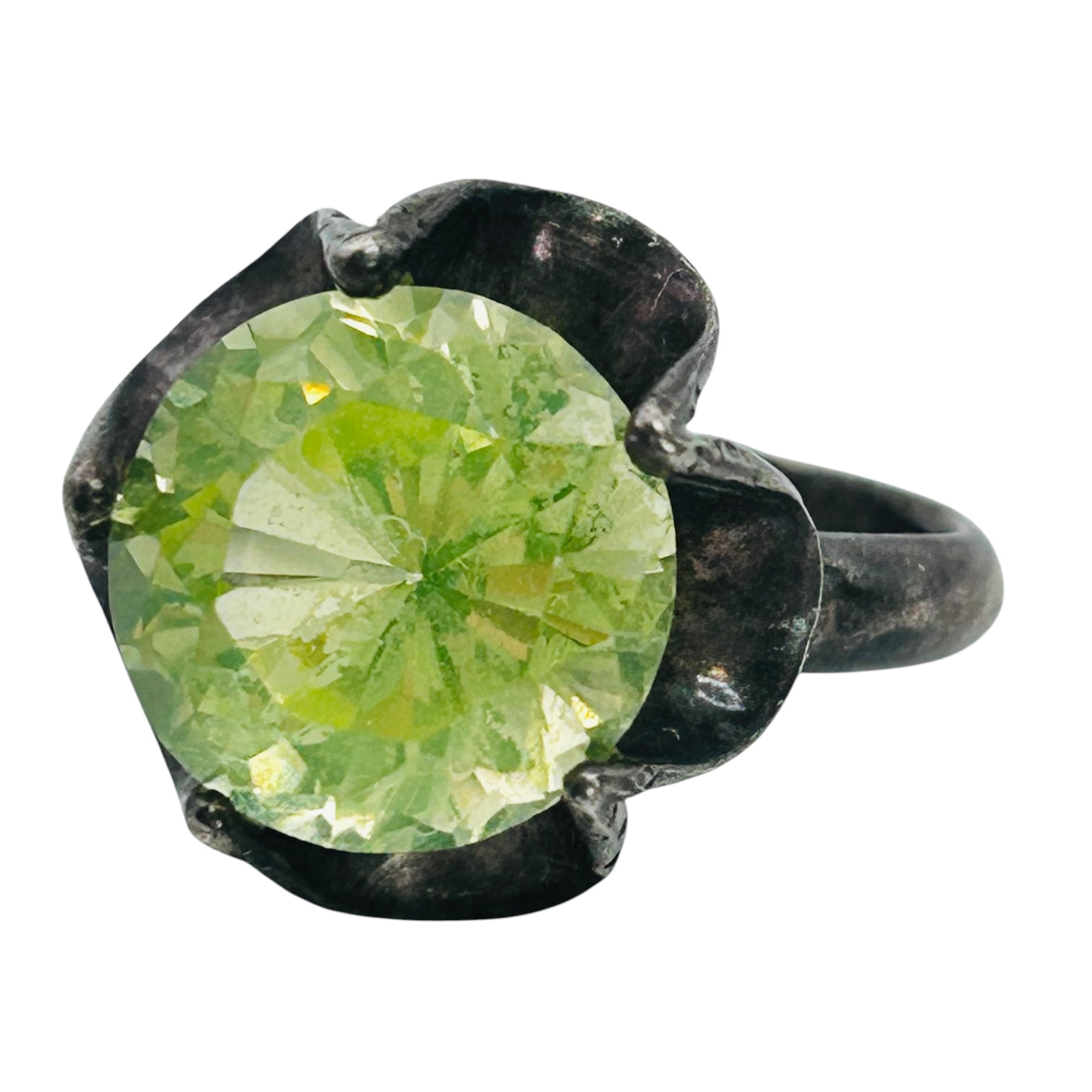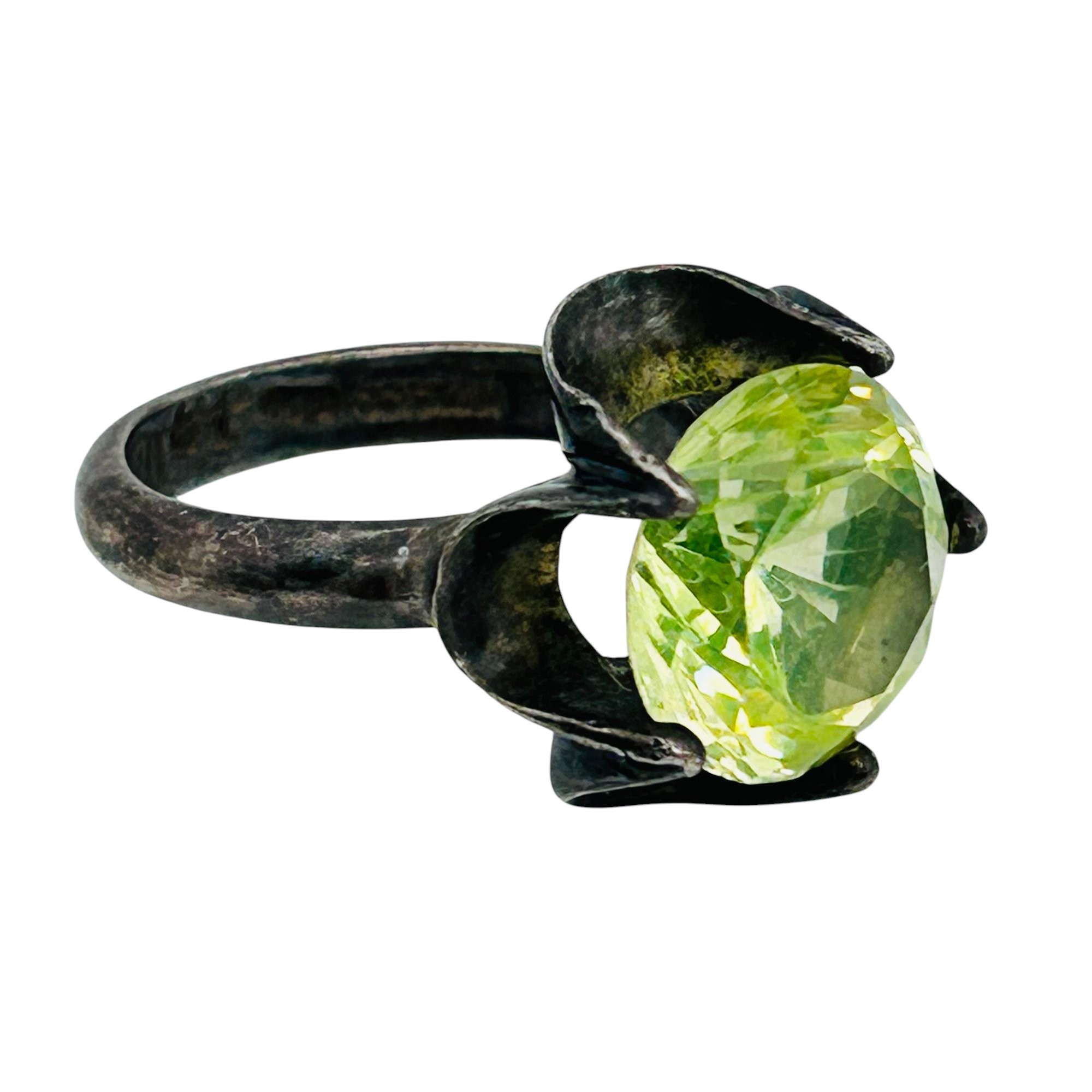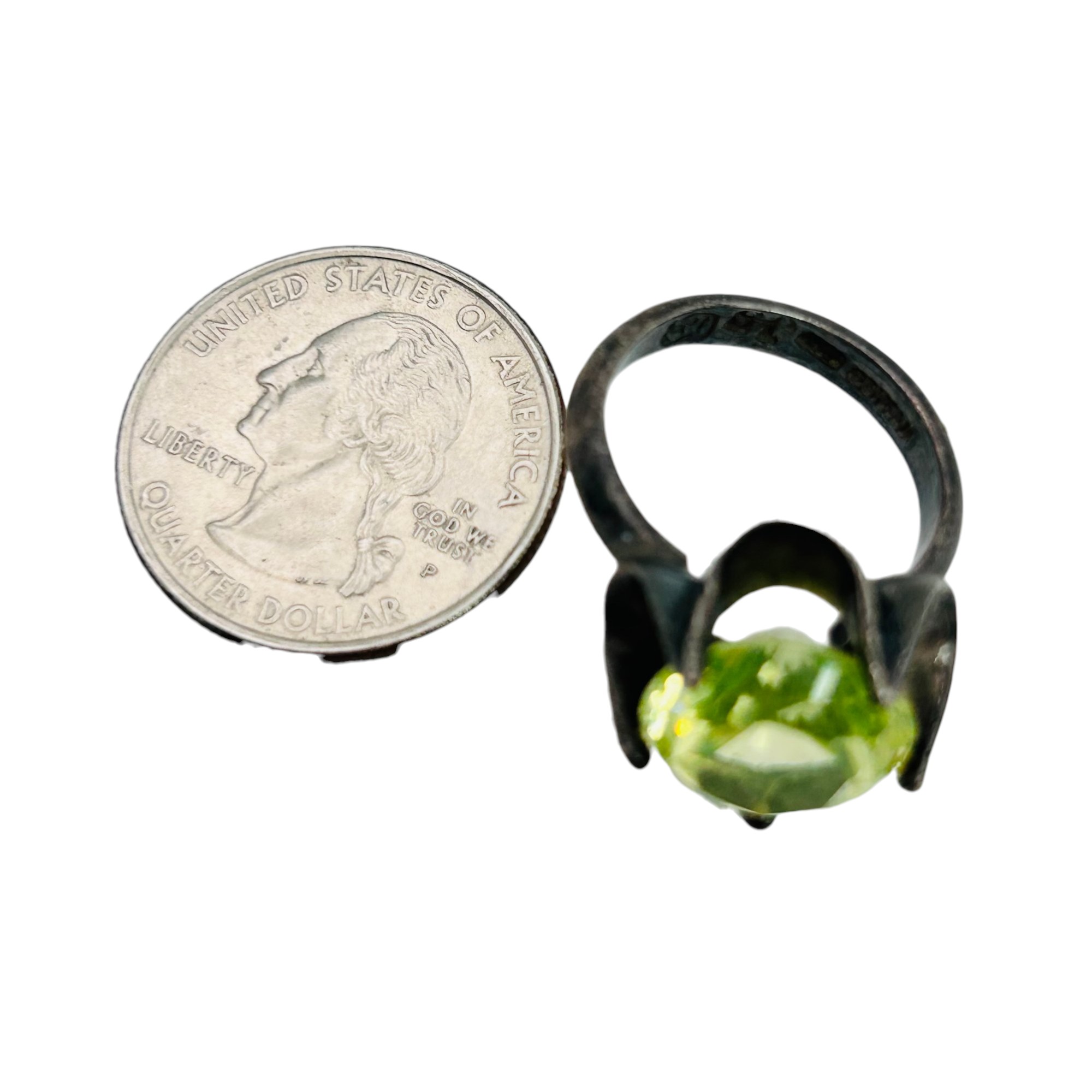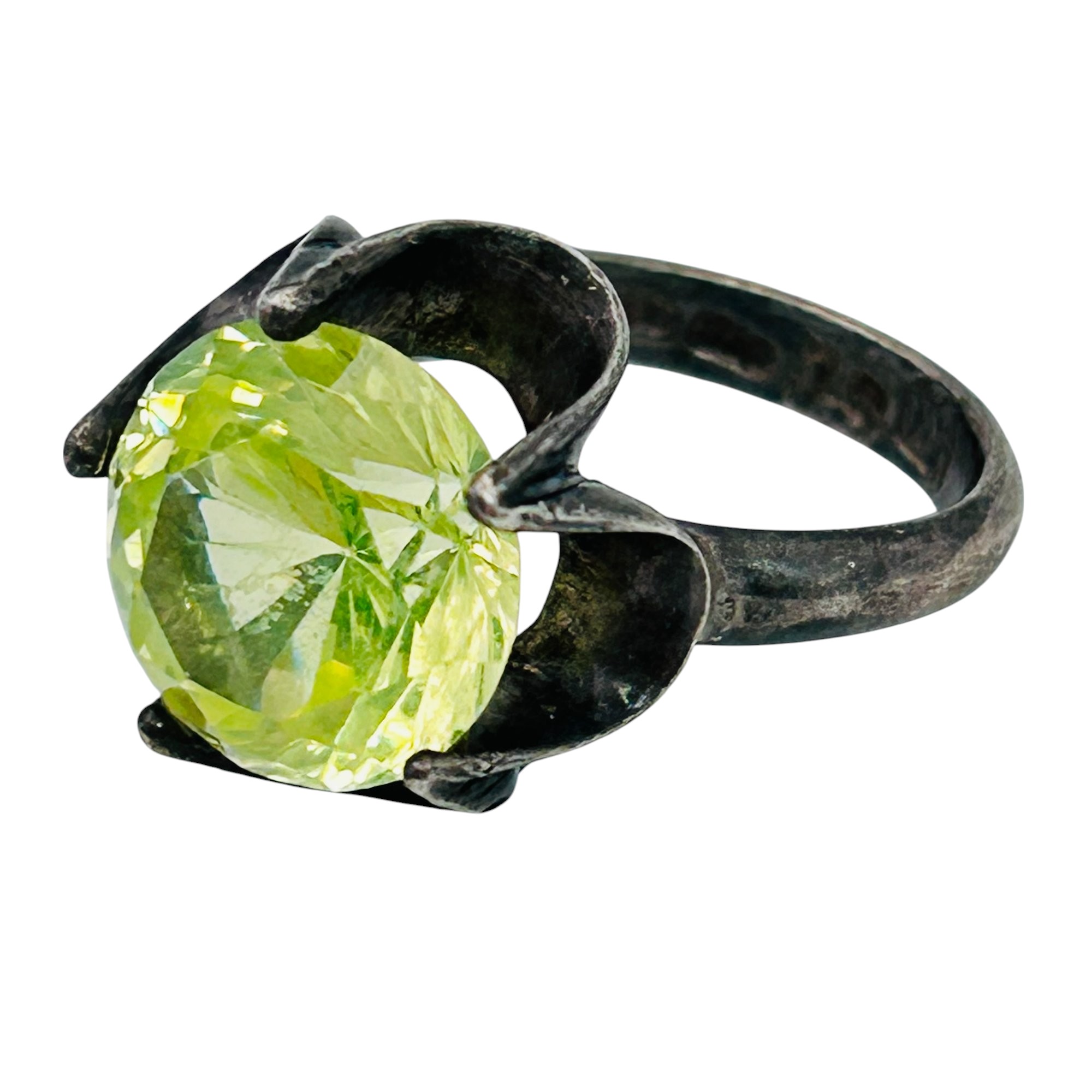 Signed Mexico citrine Sterling fluted ring size 7 7.59 g