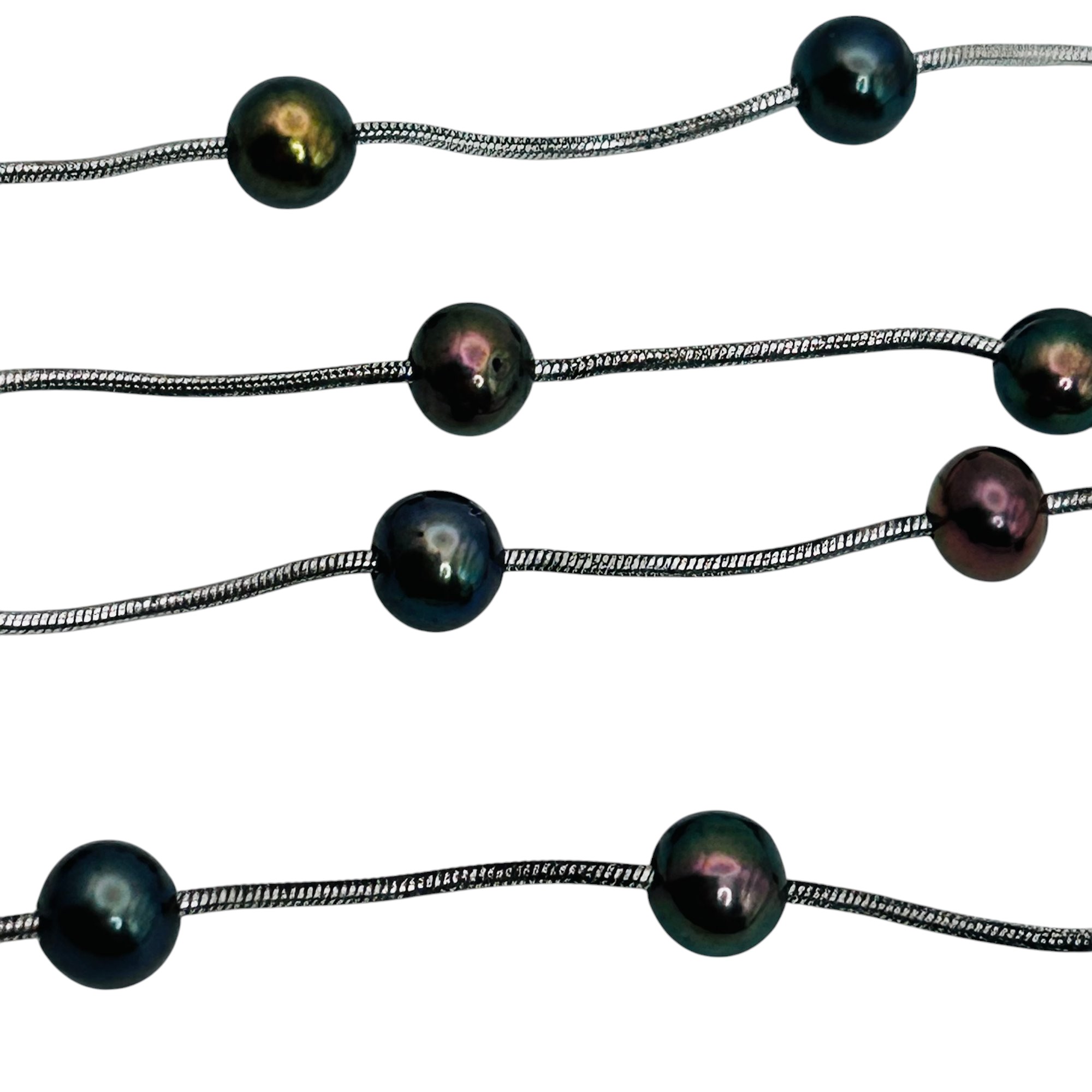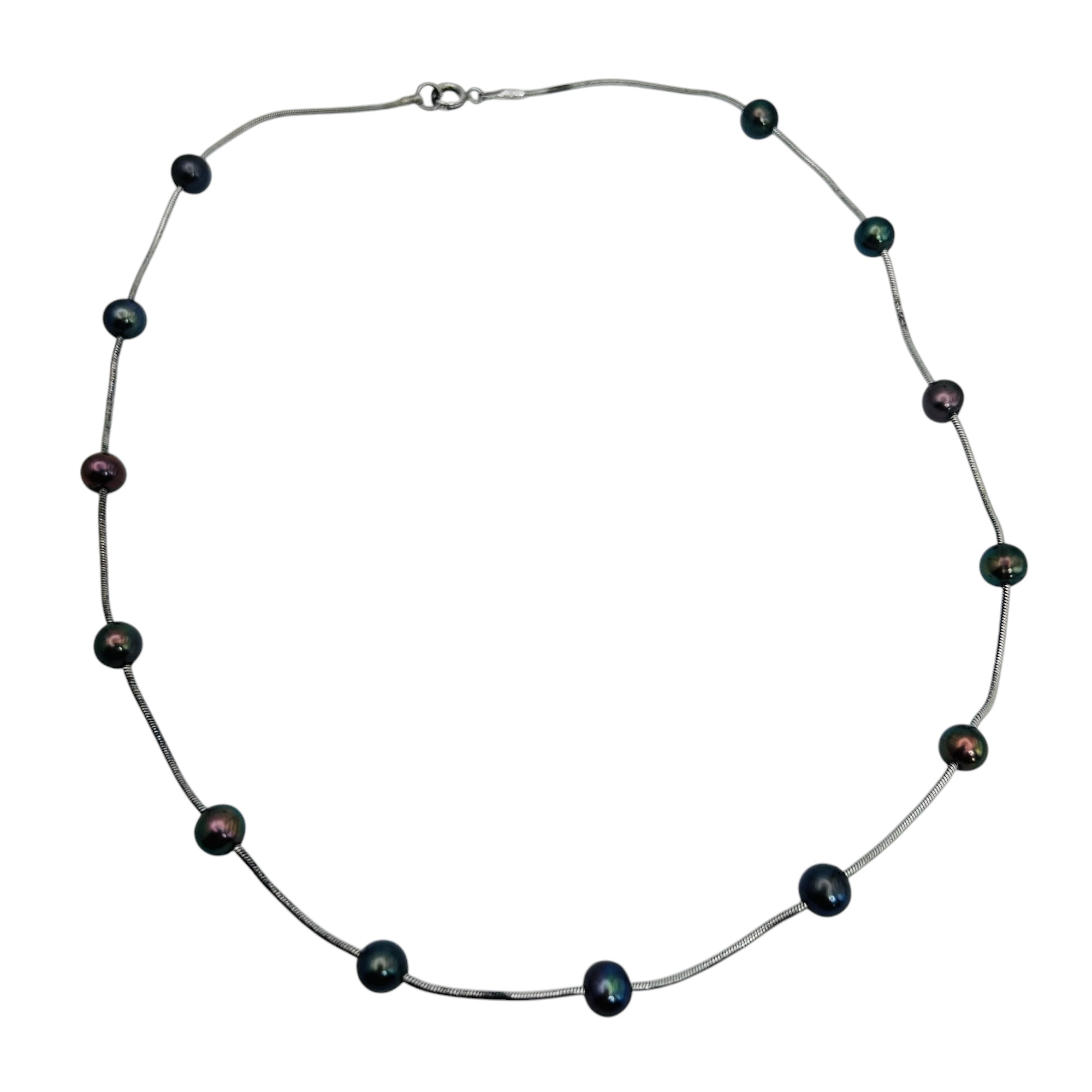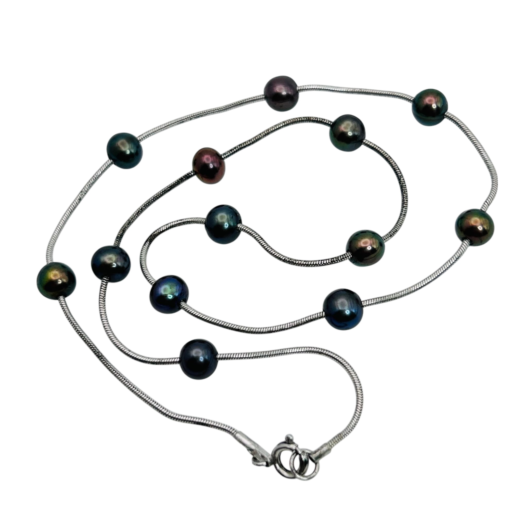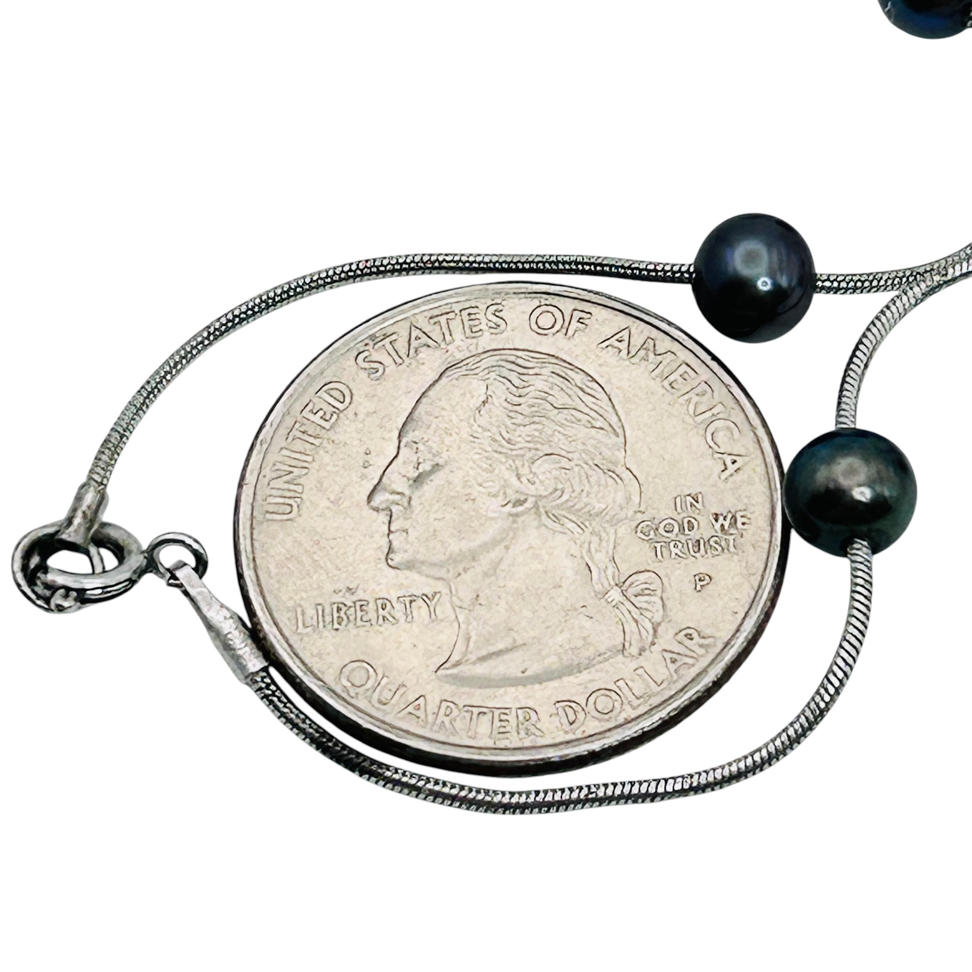 Obsidian bead and sterling round snake chain necklace 6.18 g