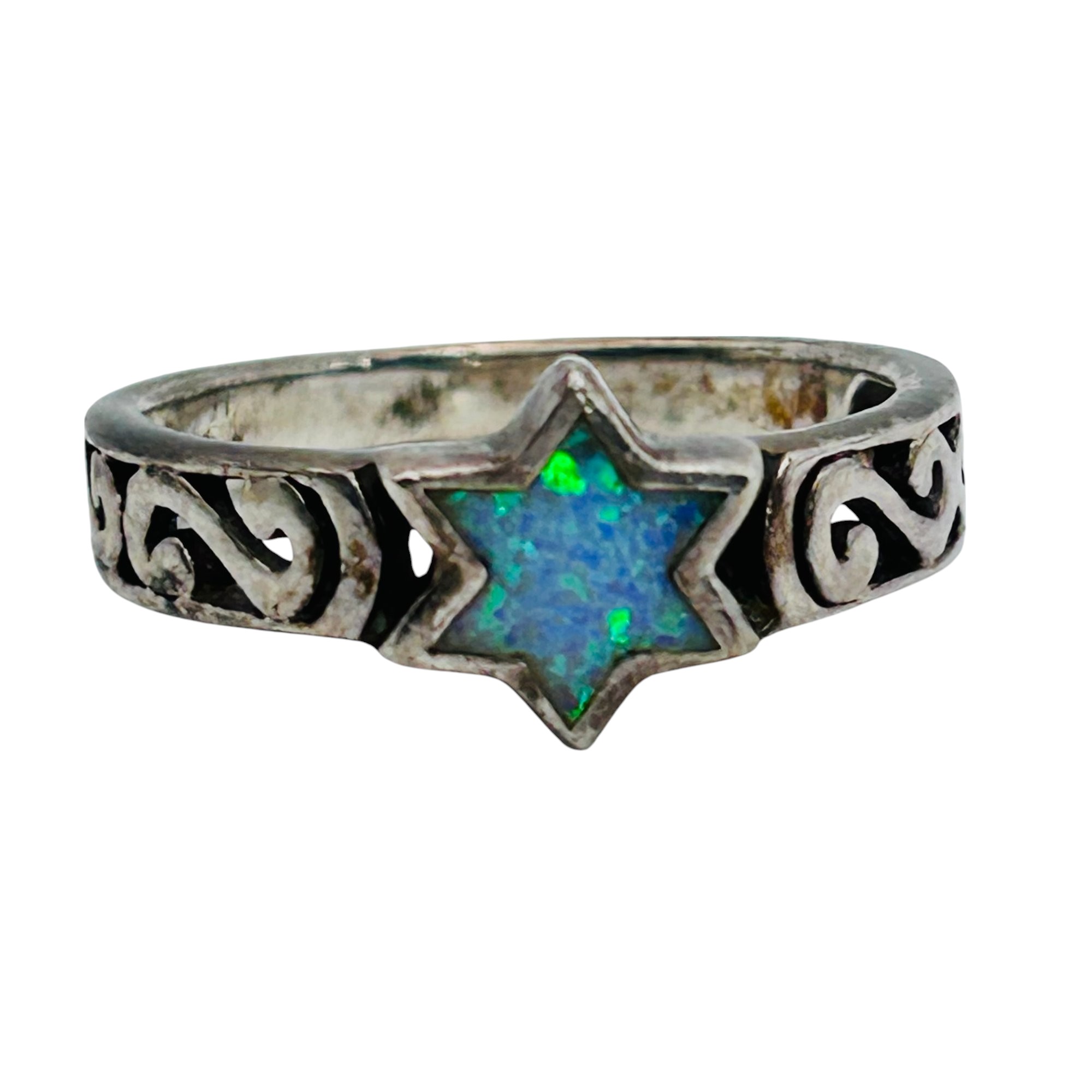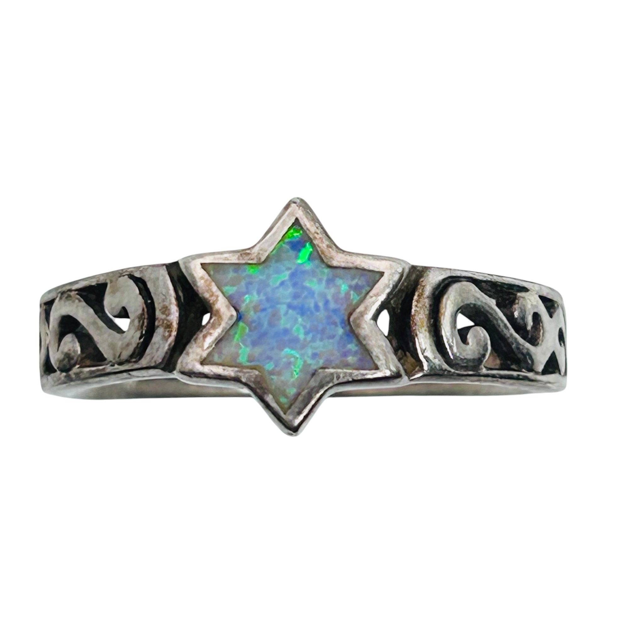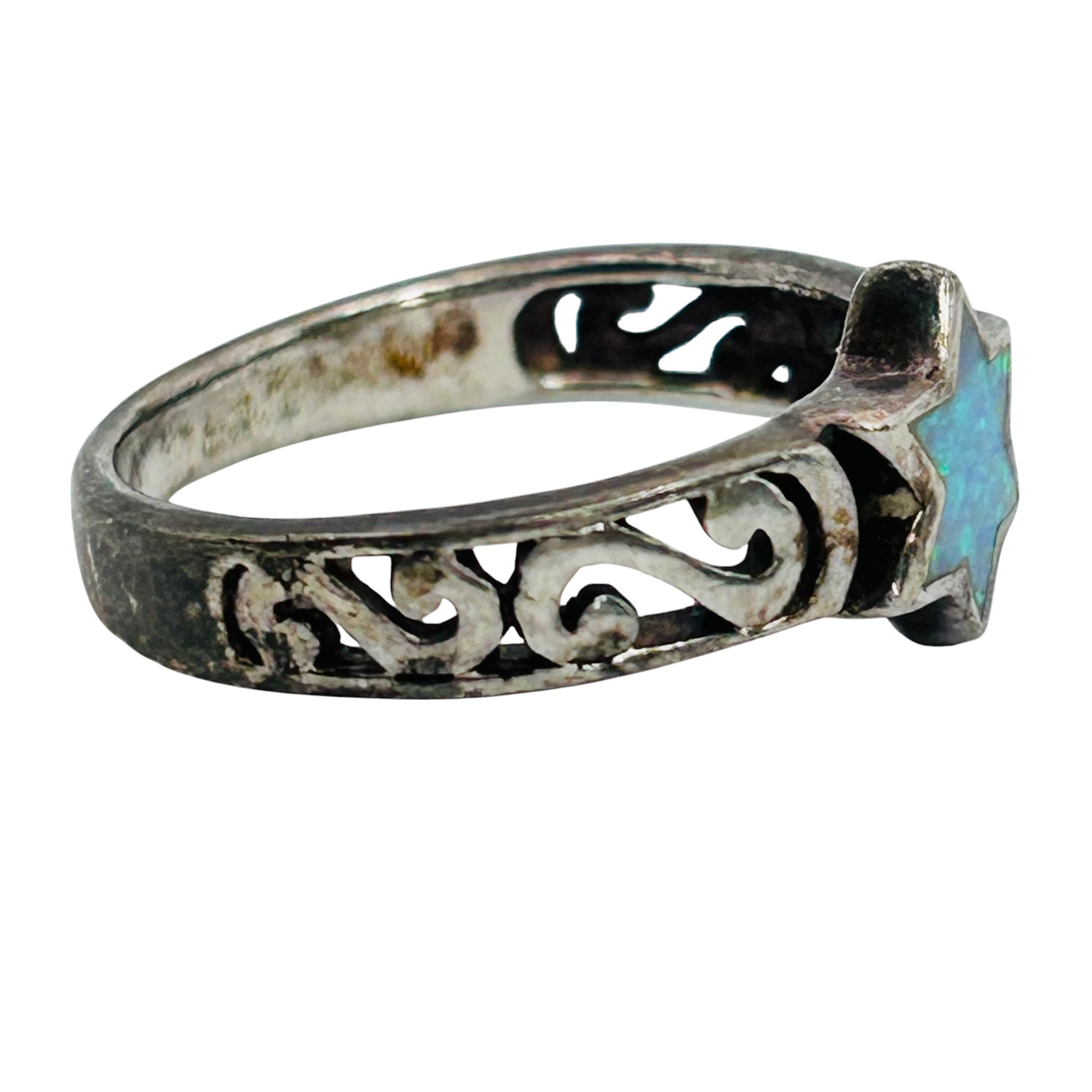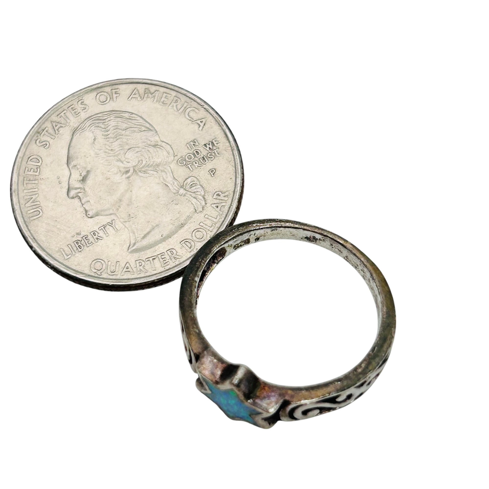 Opal Star Sterling Scroll Band Ring Size 7, 3.13 G