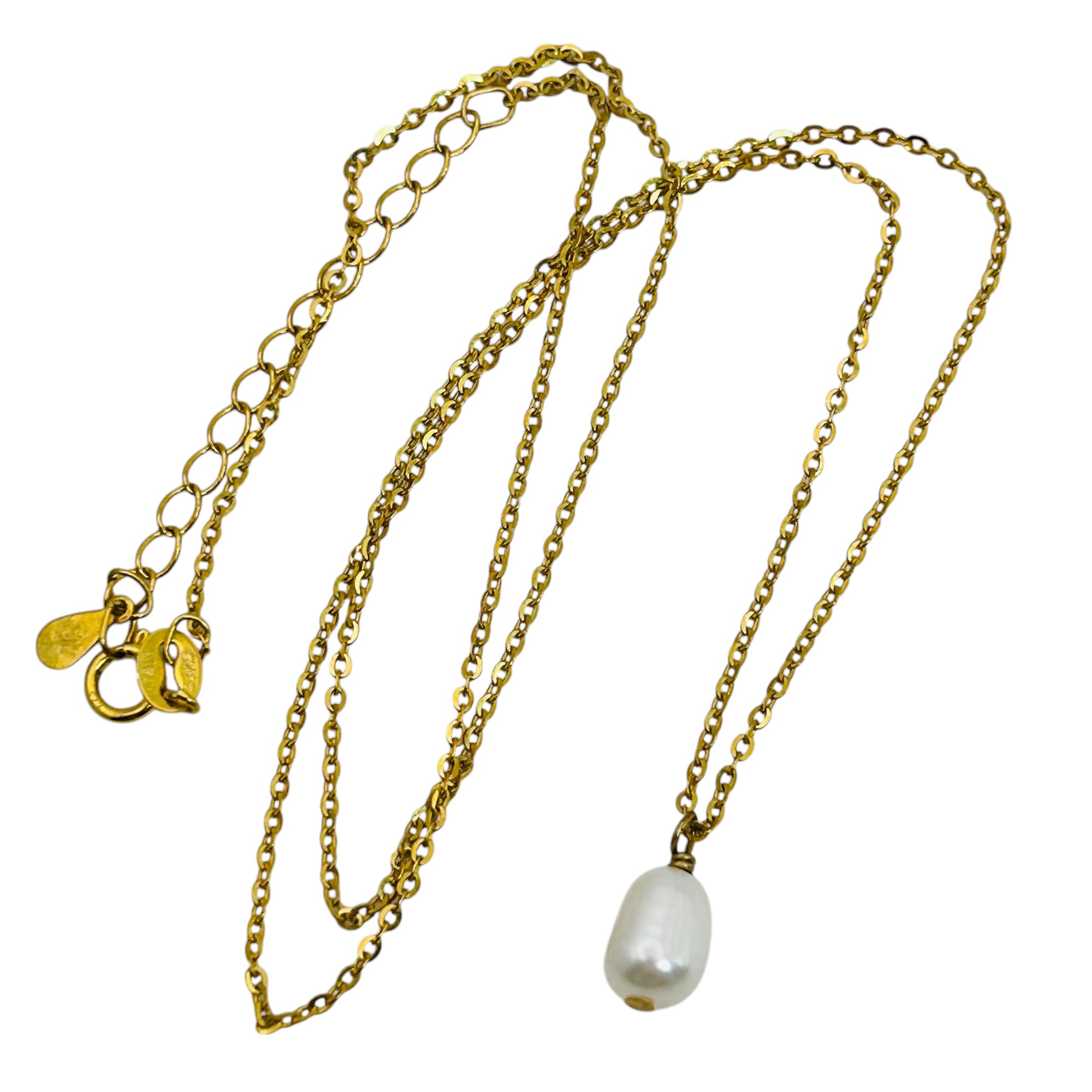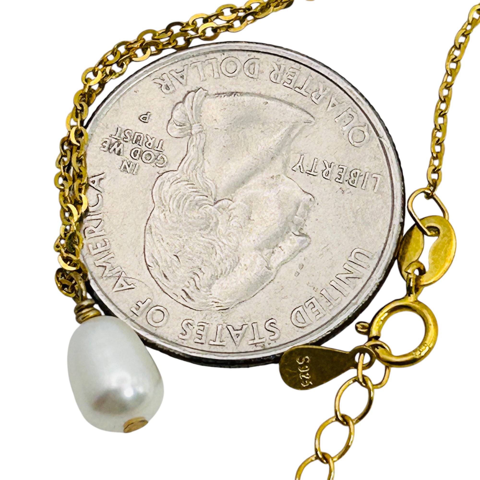 Italy single pearl pendant sterling flat cable chain necklace 1.89 g
