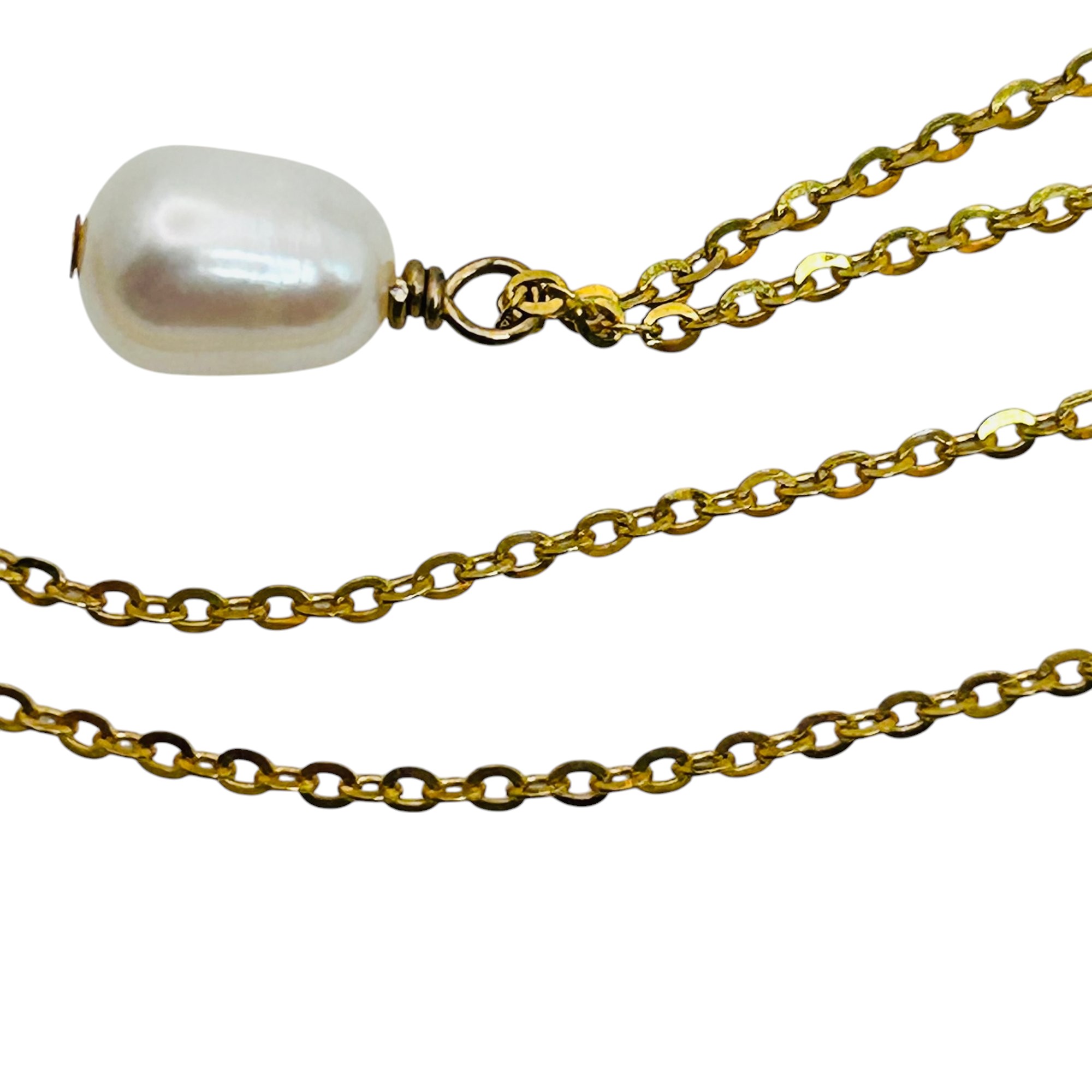 Italy, Single Pearl Pendant Sterling Flat Cable Chain Necklace, 1.89 G