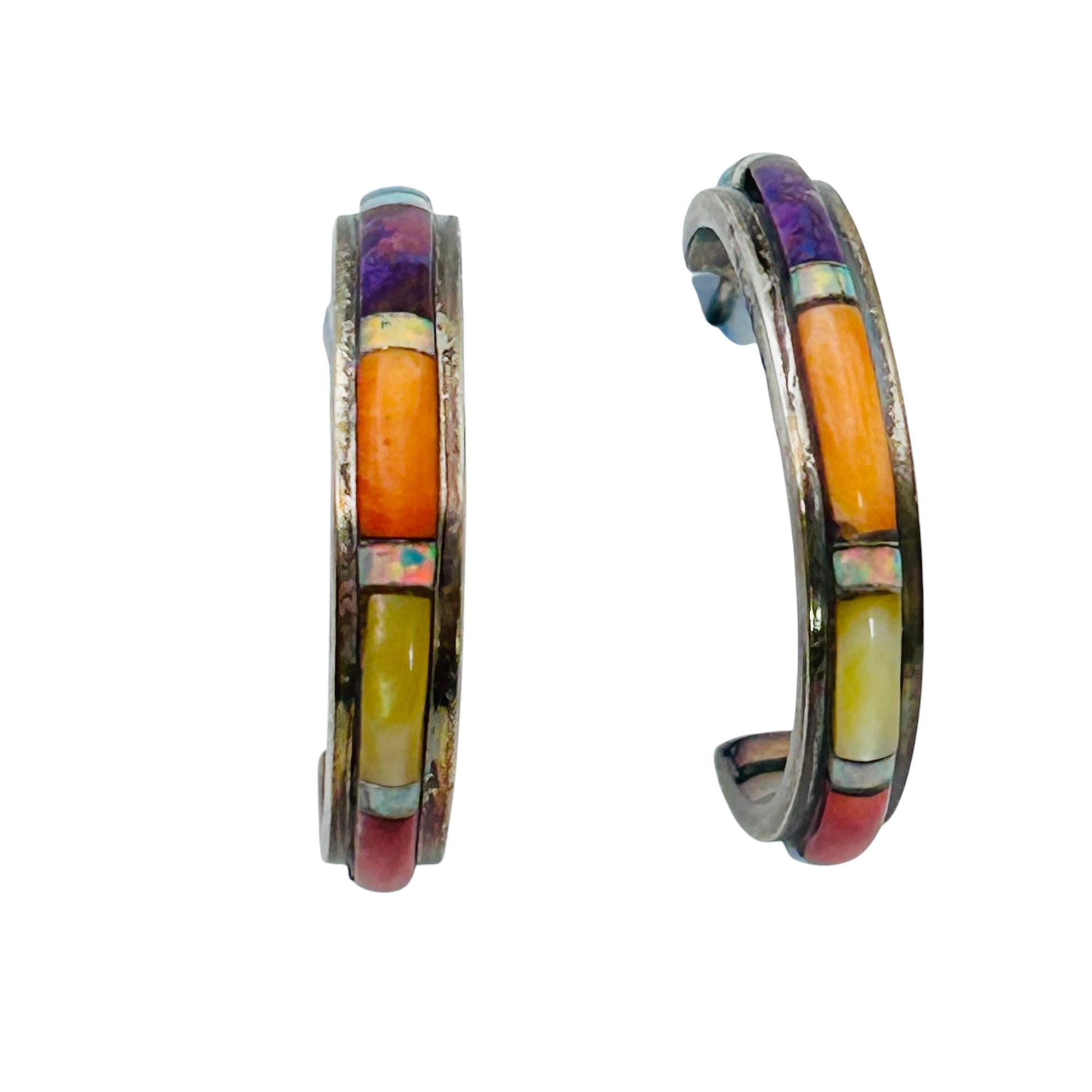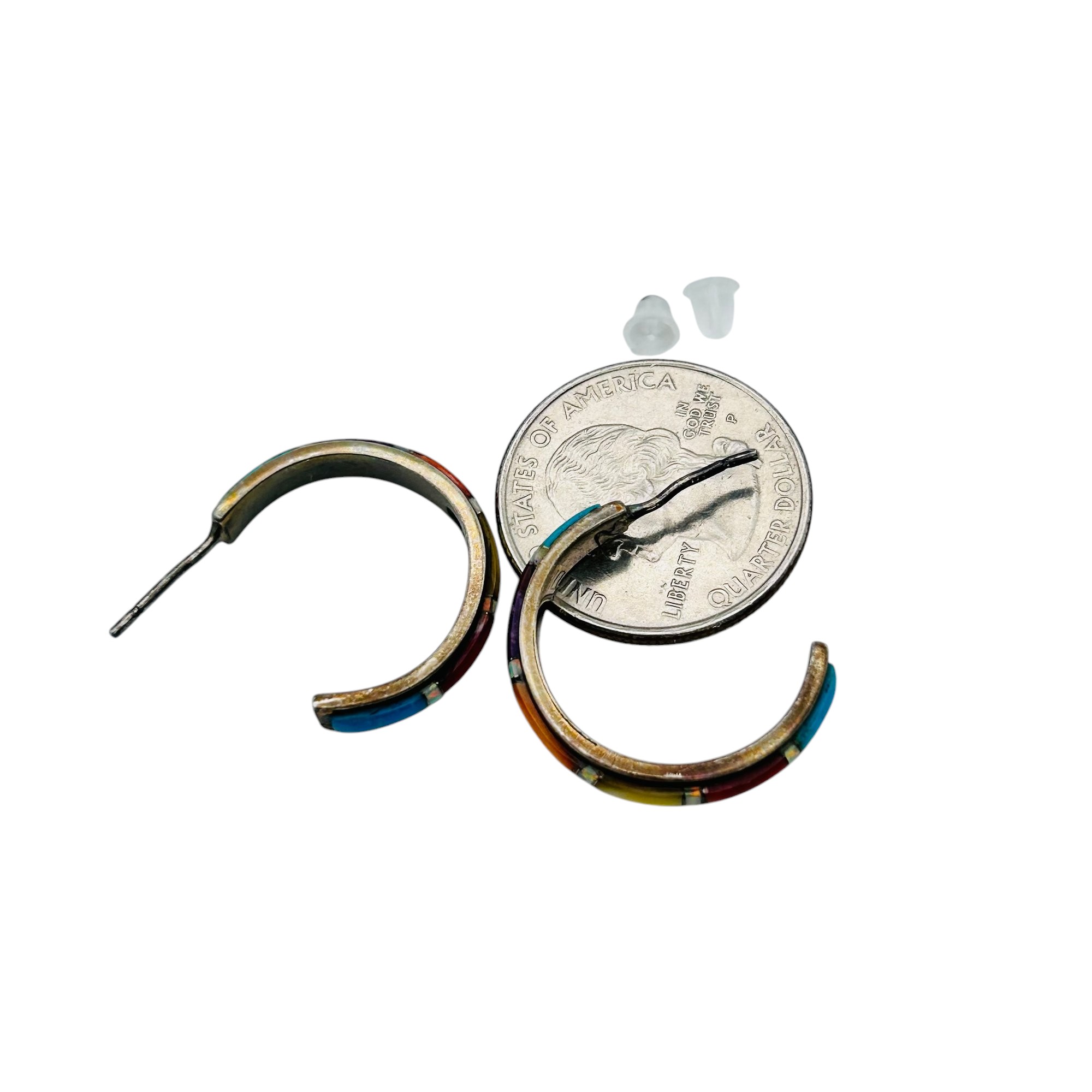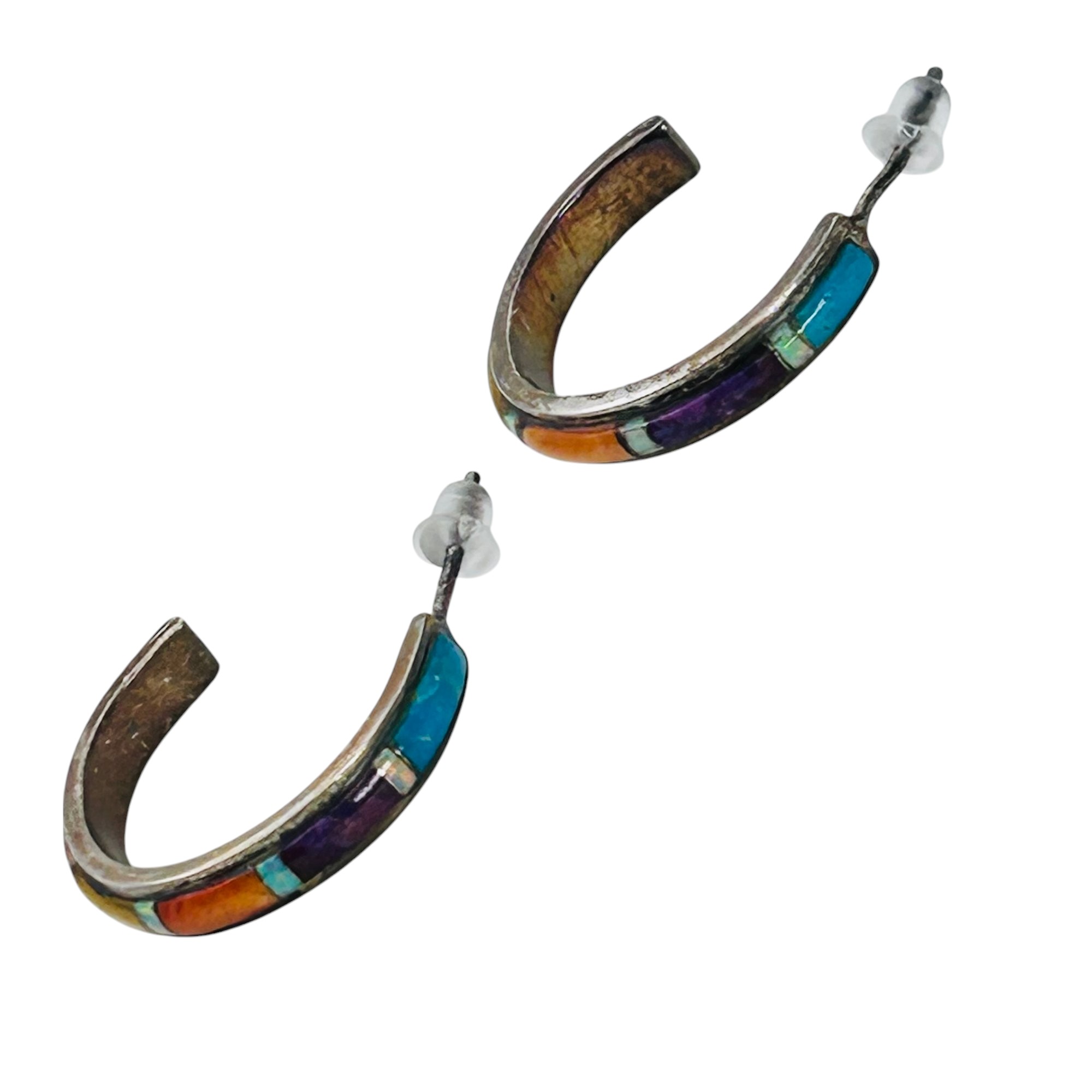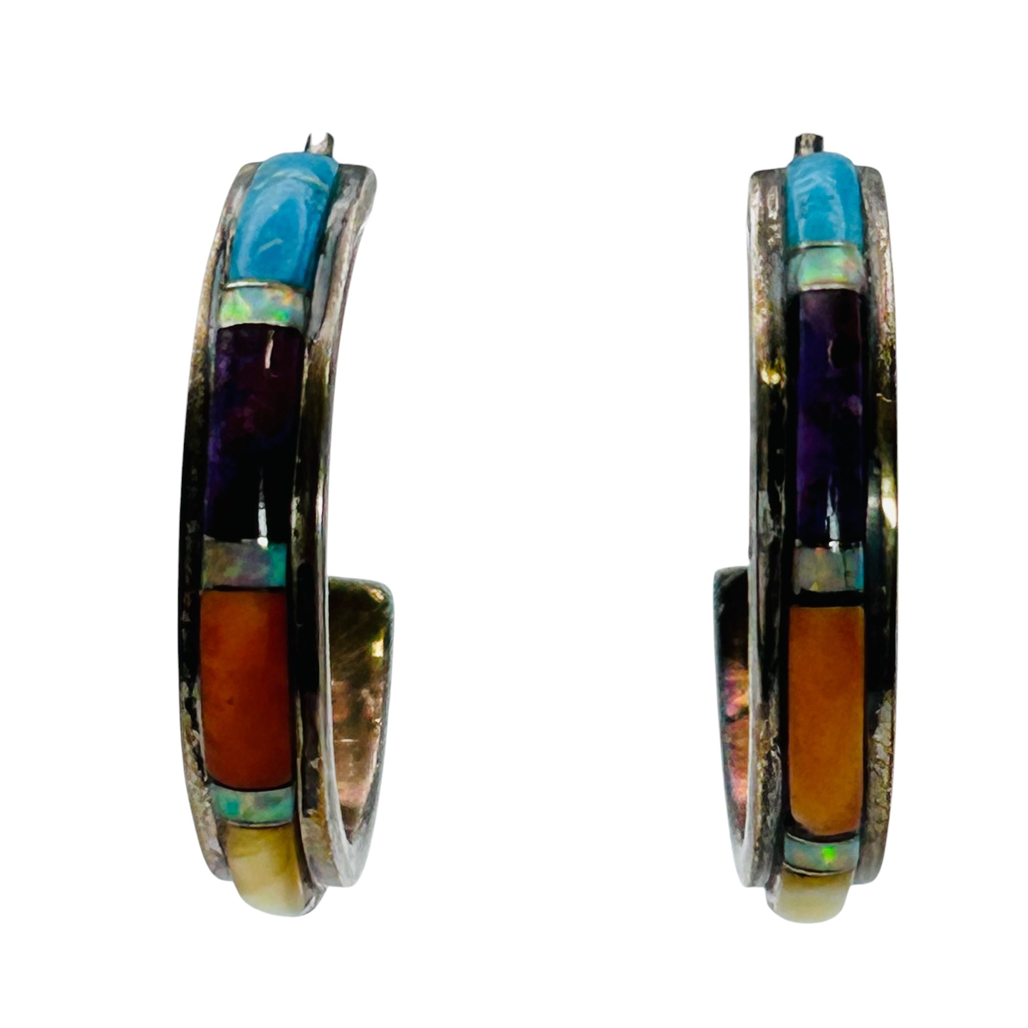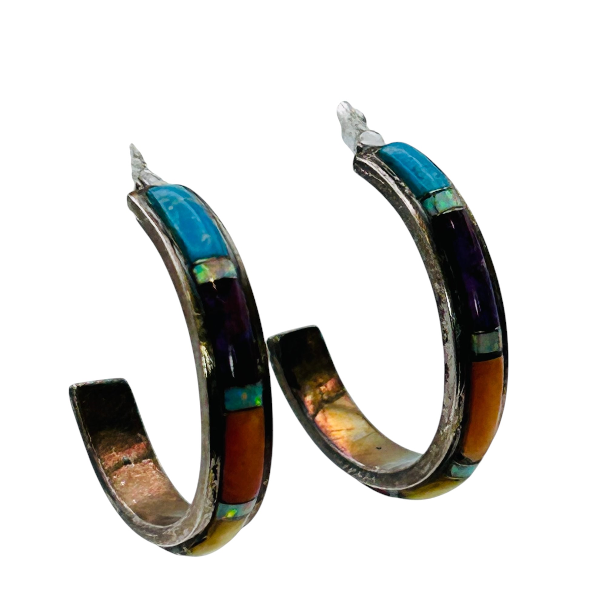 Sterling Native American hoops turquoise and coral stone 4.15 g