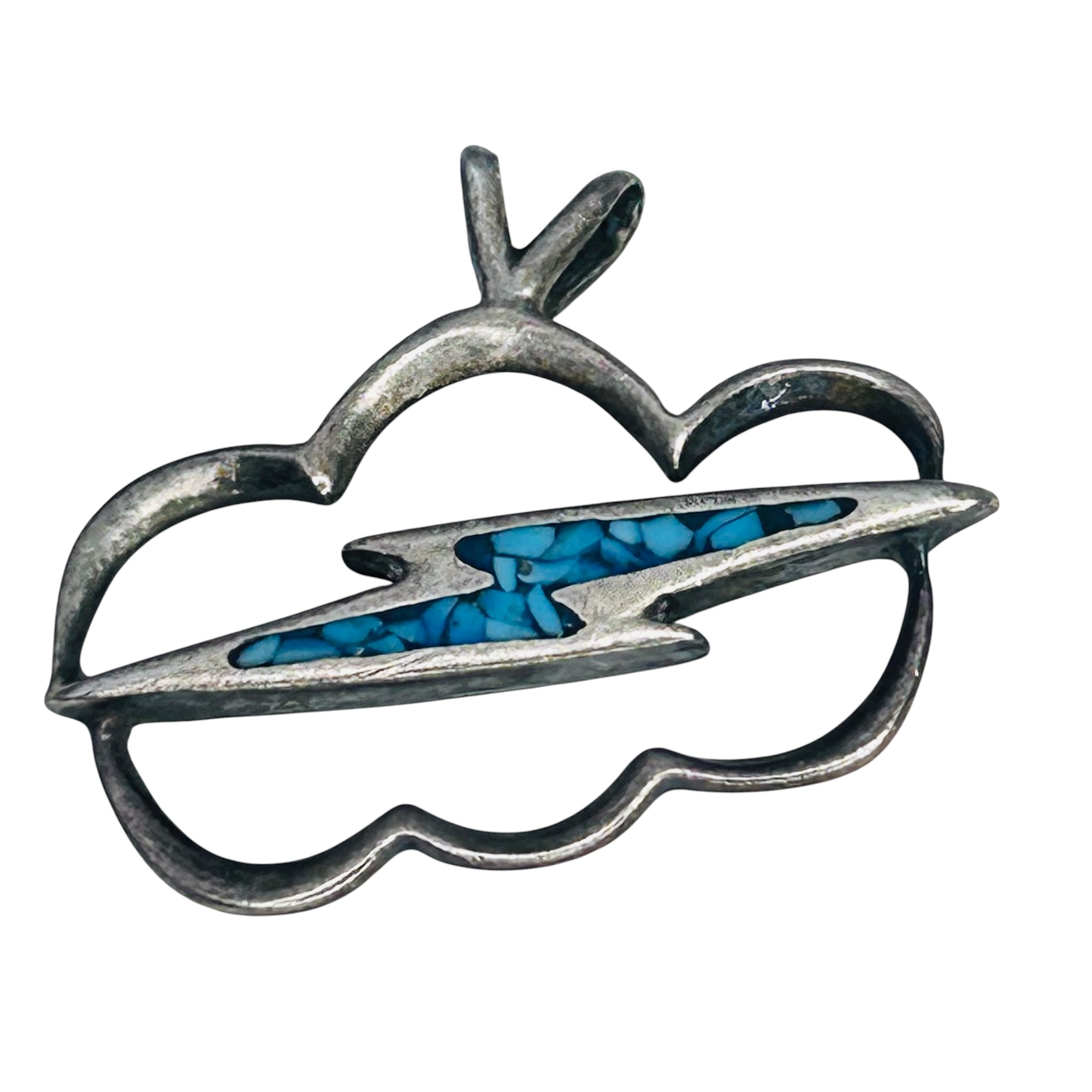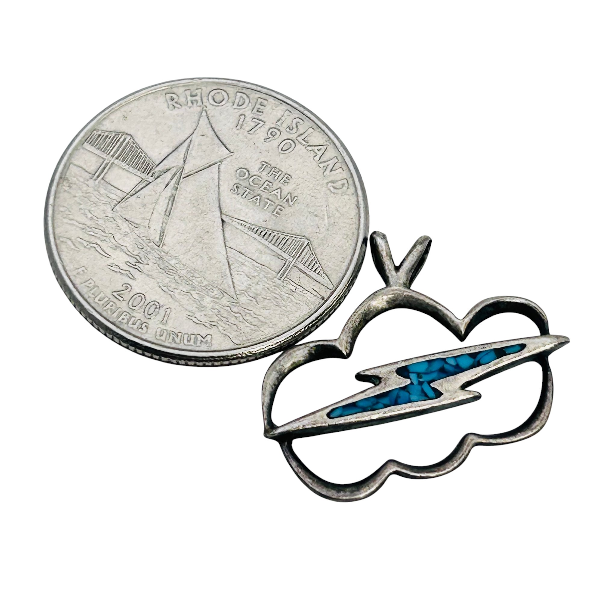 Native signed Sterling cloud lightning strike inlaid turquoise 1.5 g