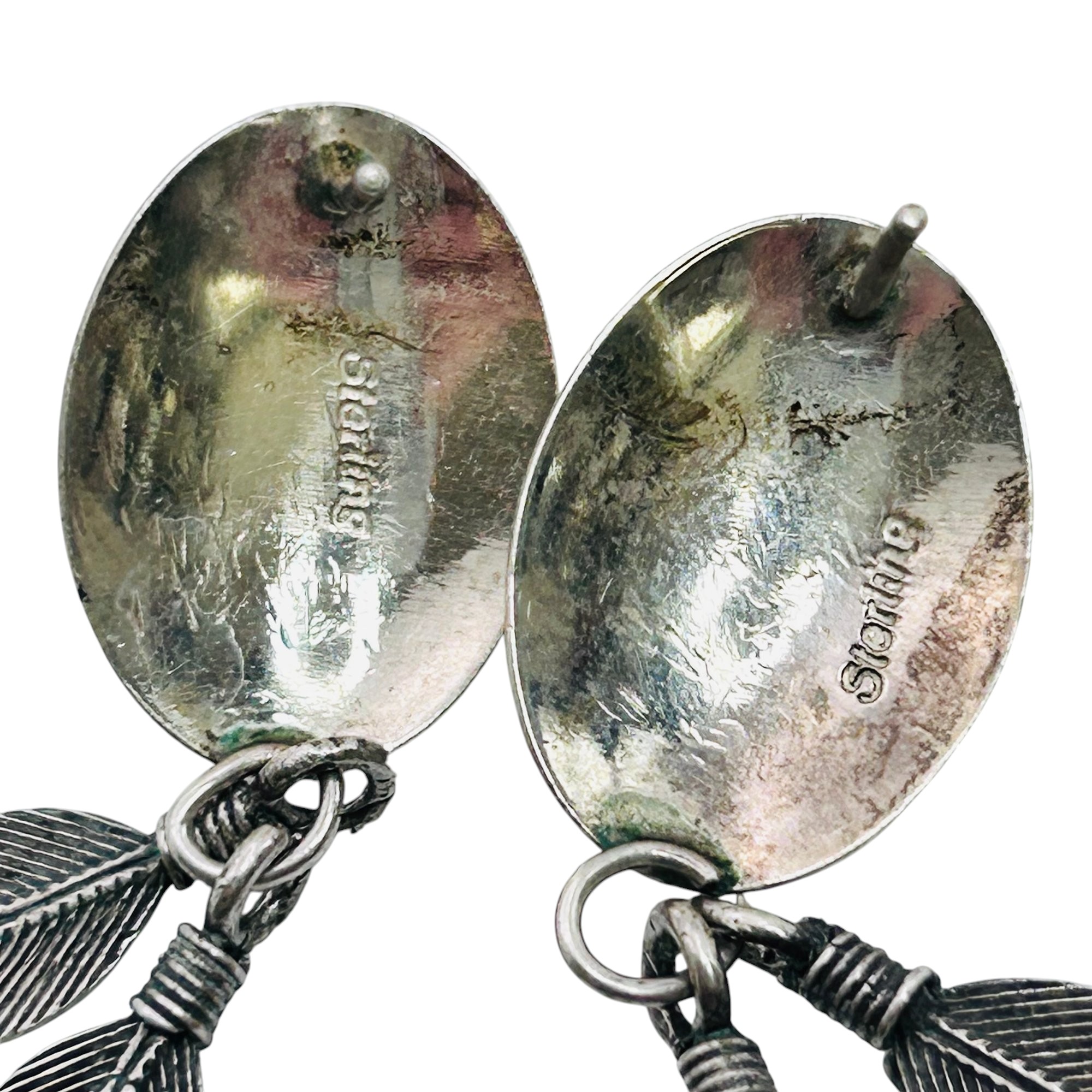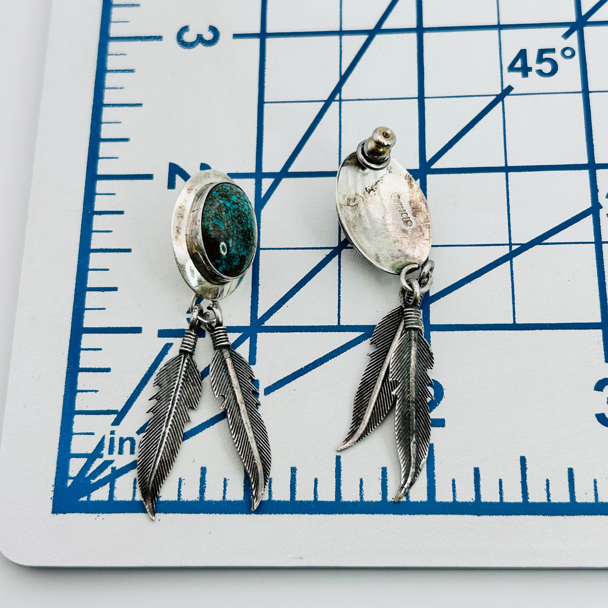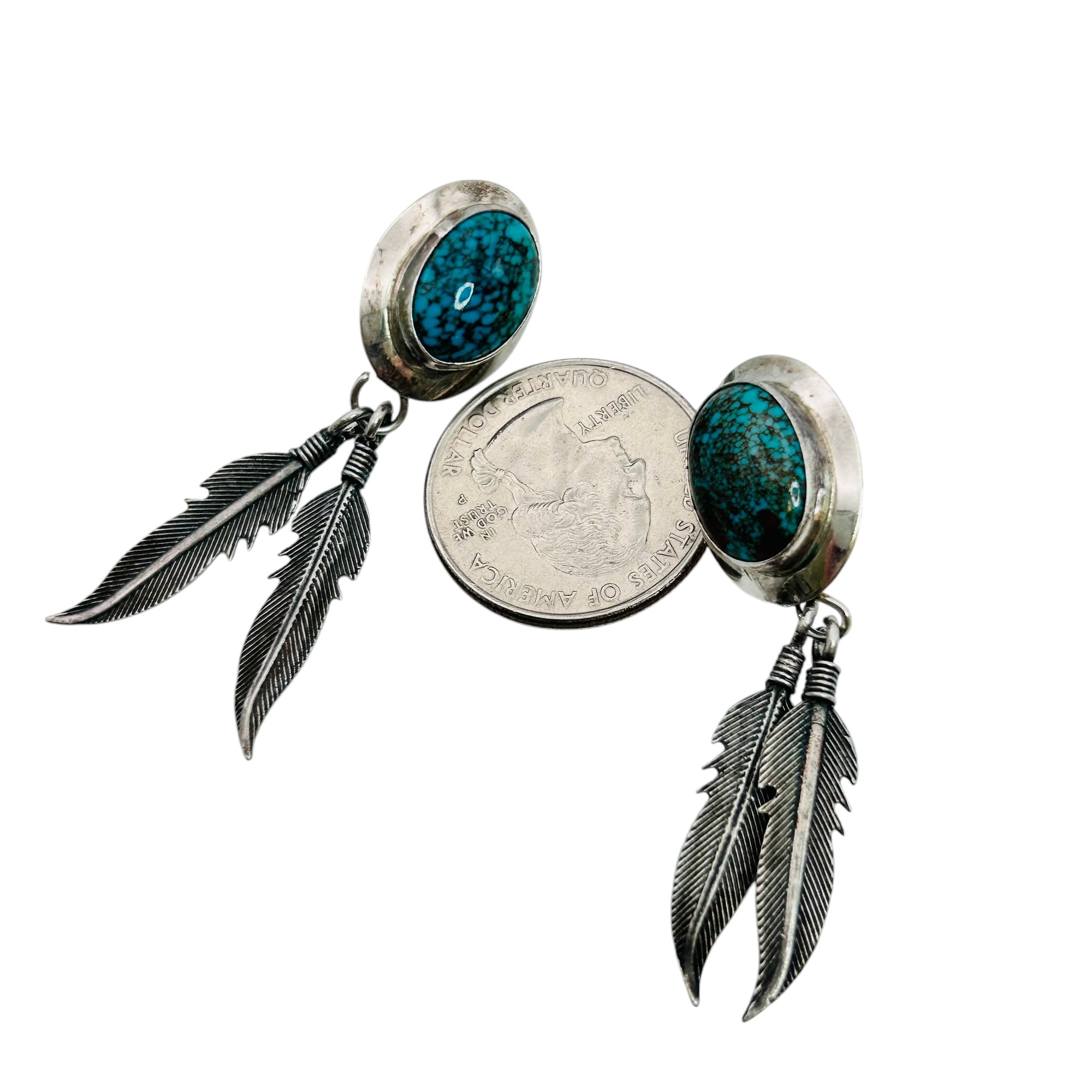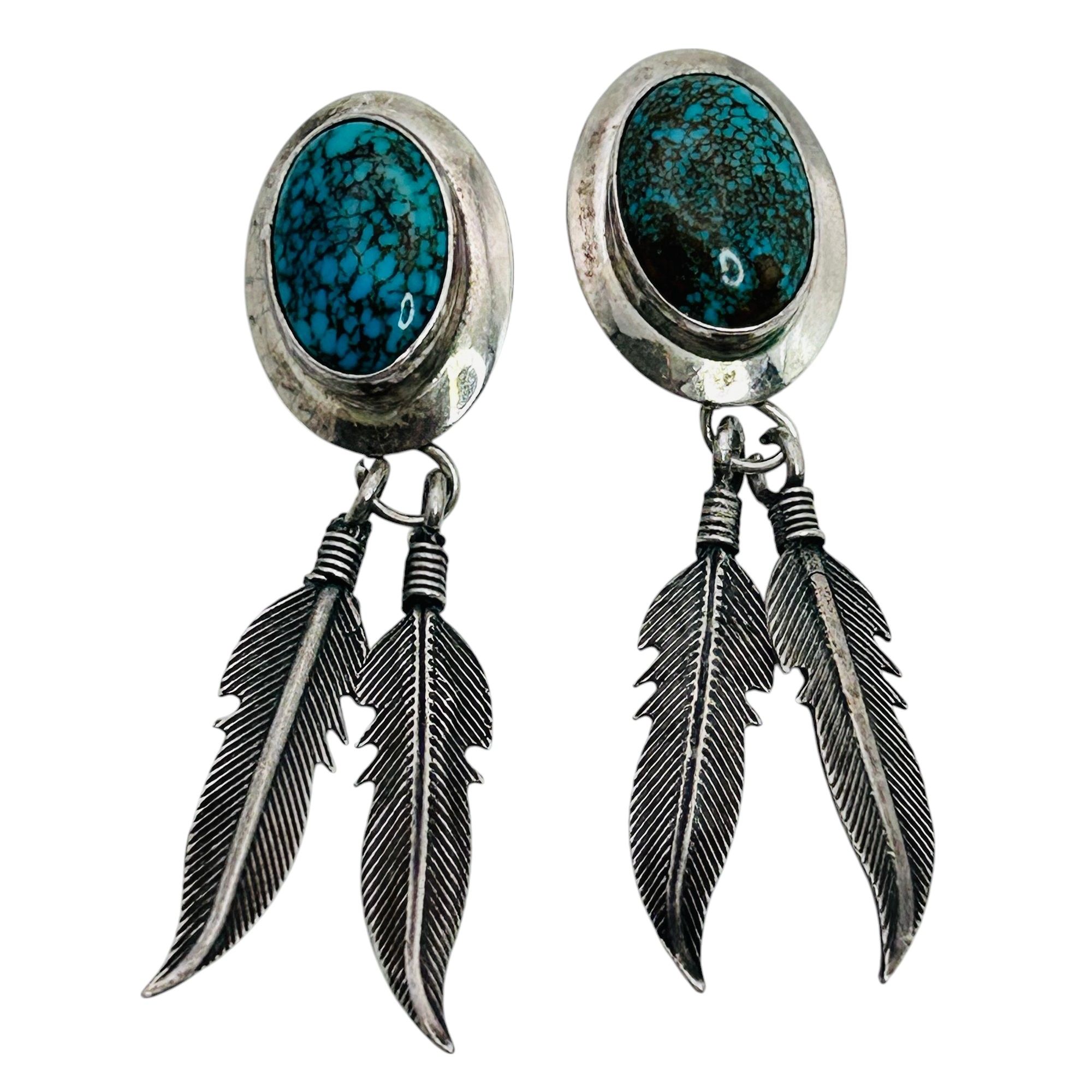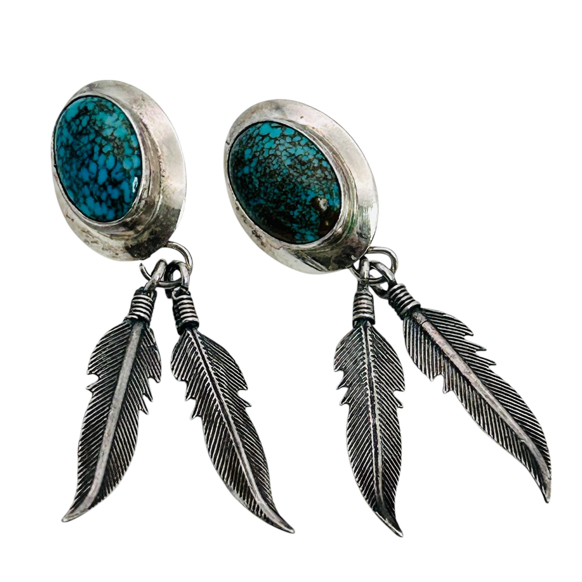 Native American Sterling turquoise dangle feather earrings 7.9 g