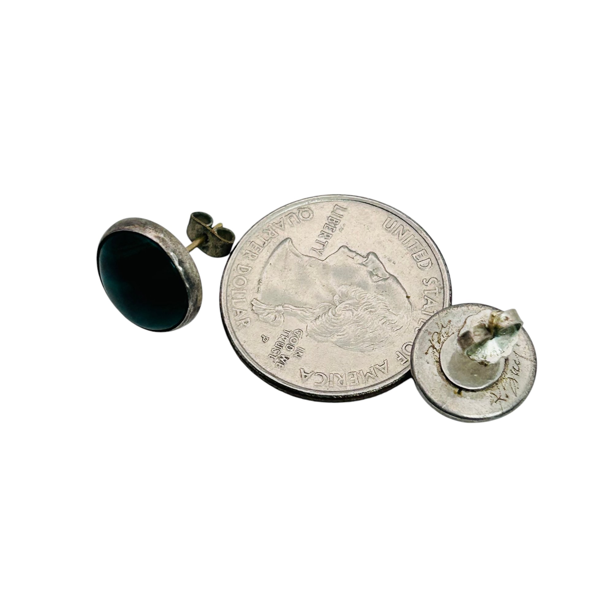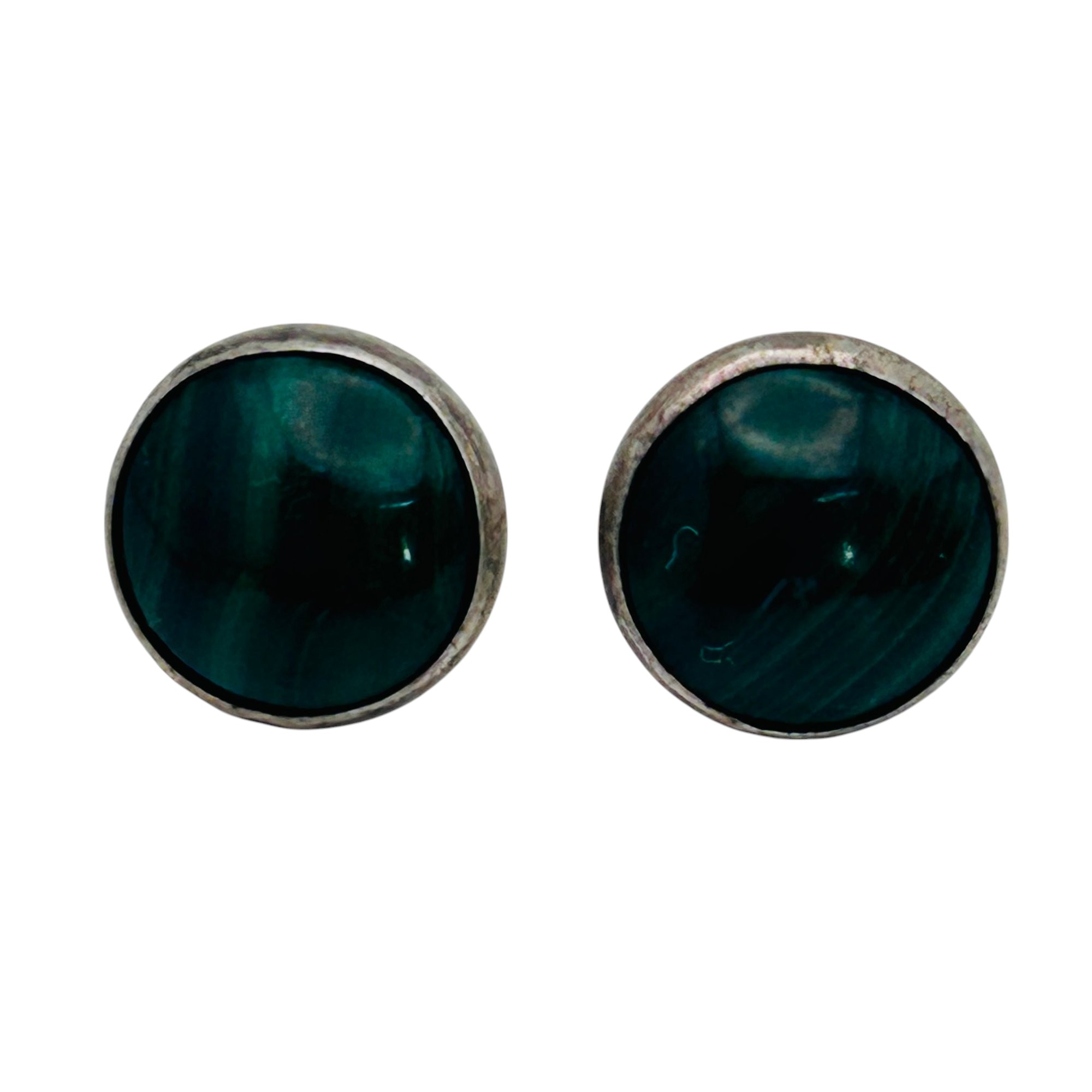 Signed Navajo MALACHITE Sterling round earrings 4.01 g