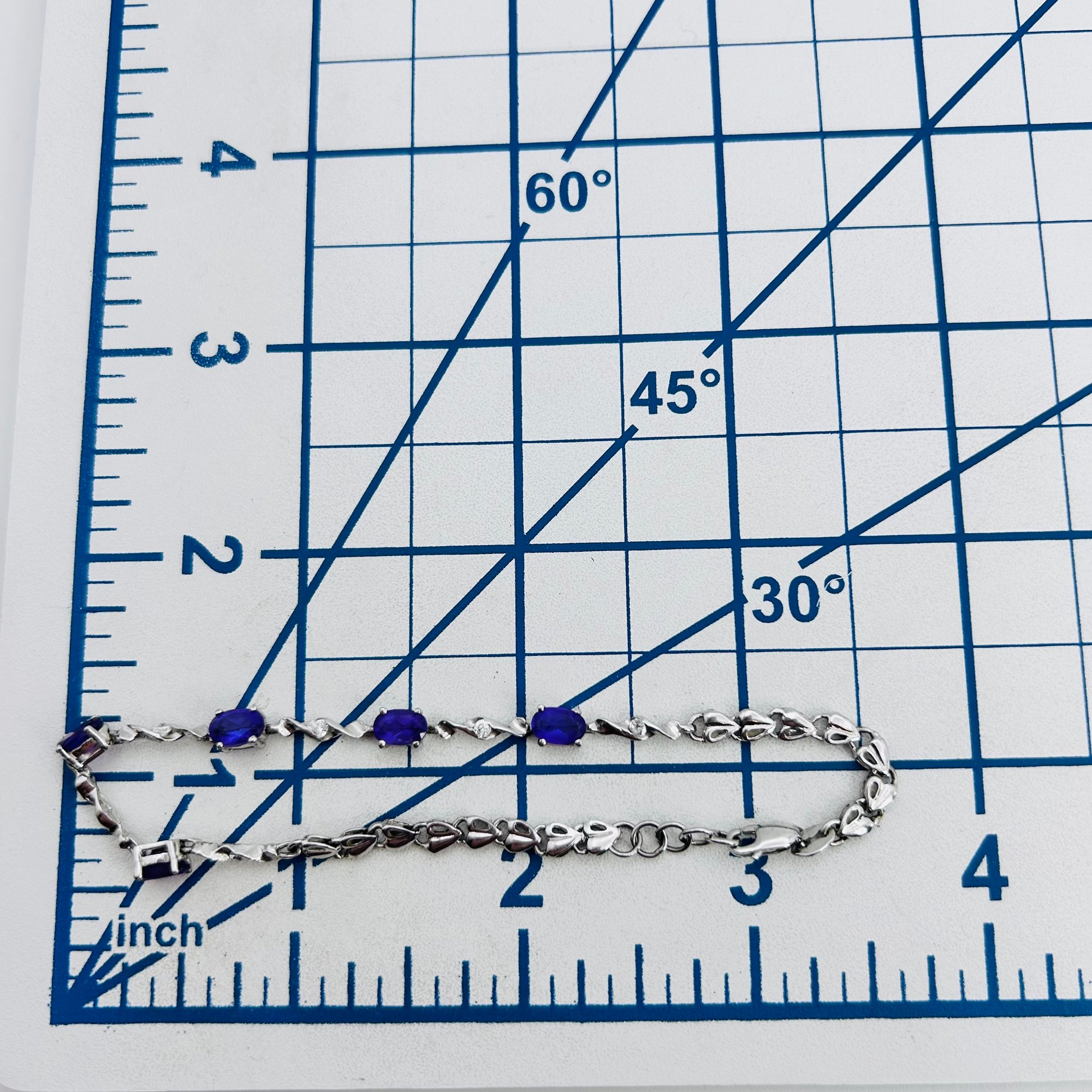 Amethyst sterling silver linked heart bracelet 4.69 g