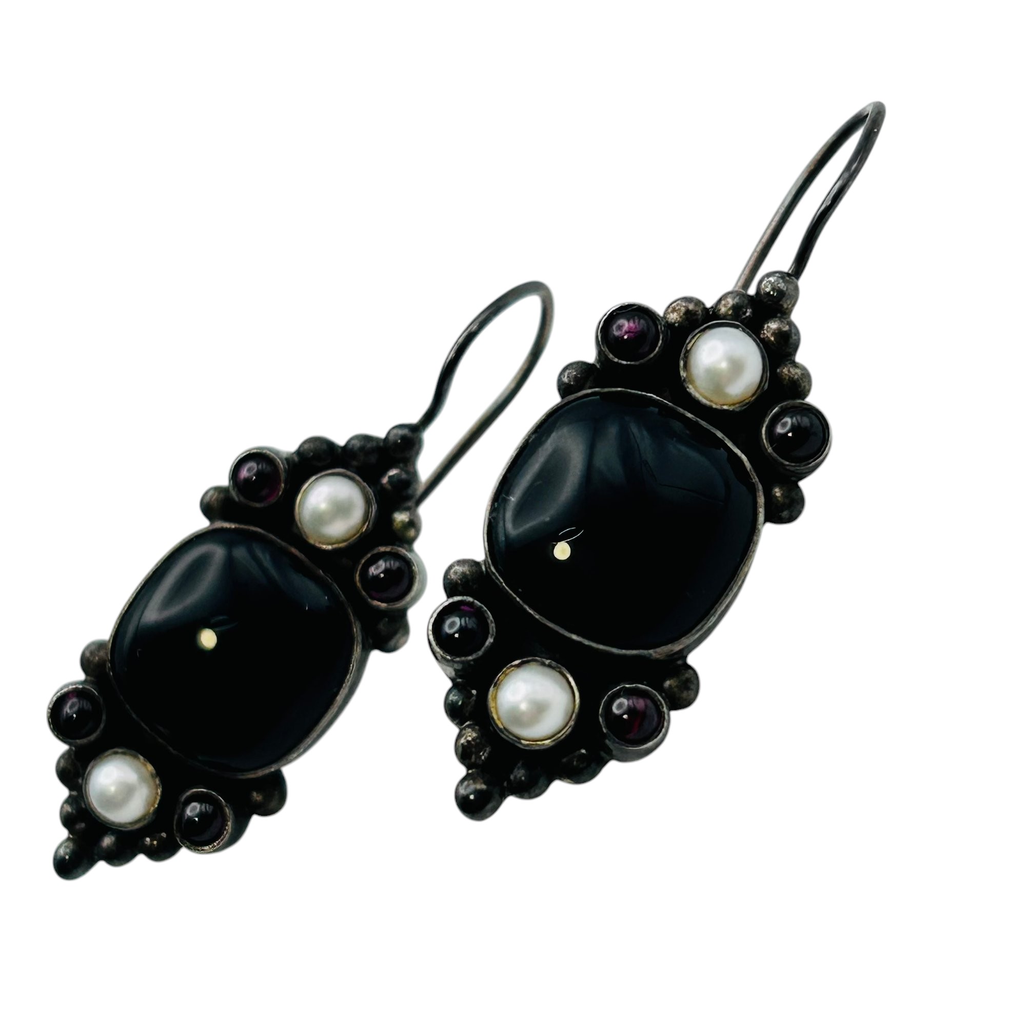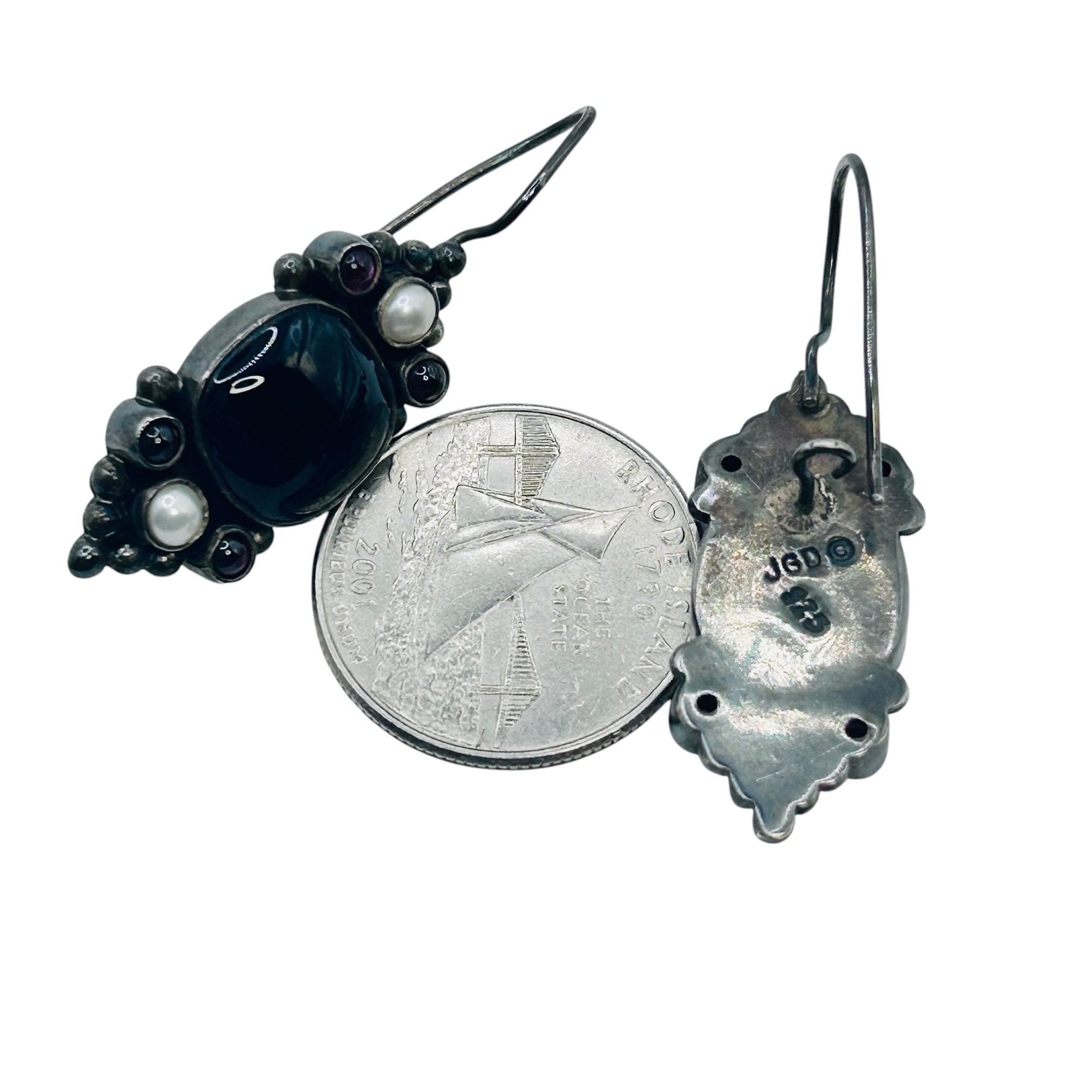 JDG pearl and Blackstone Sterling hook earrings 10.33 g