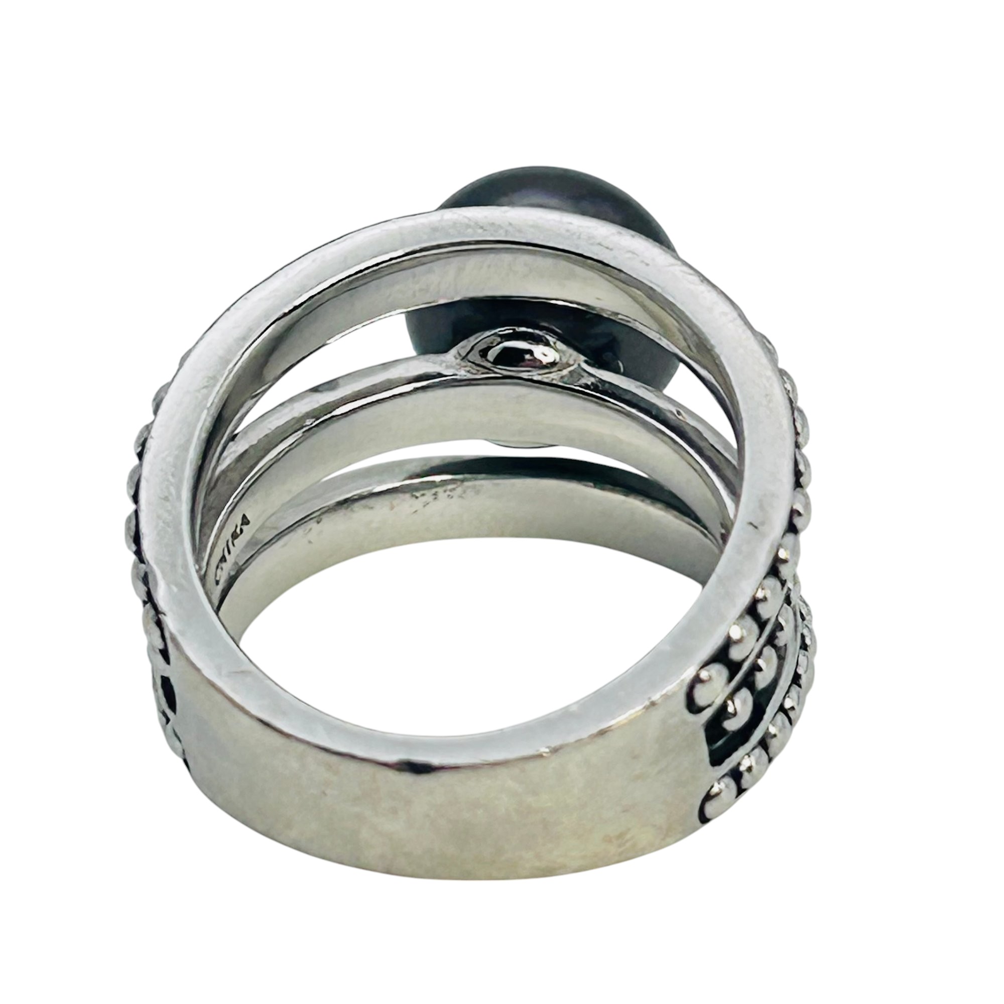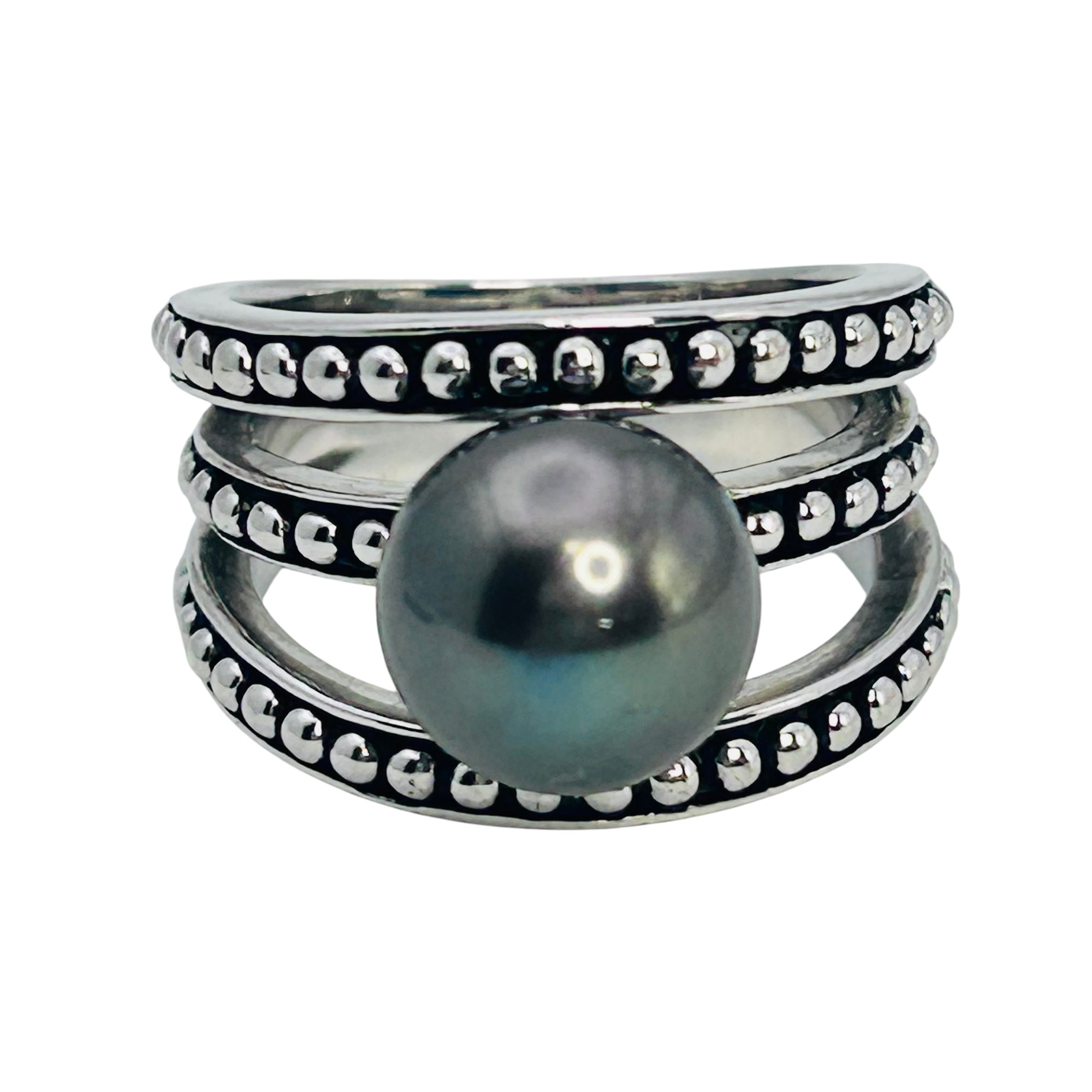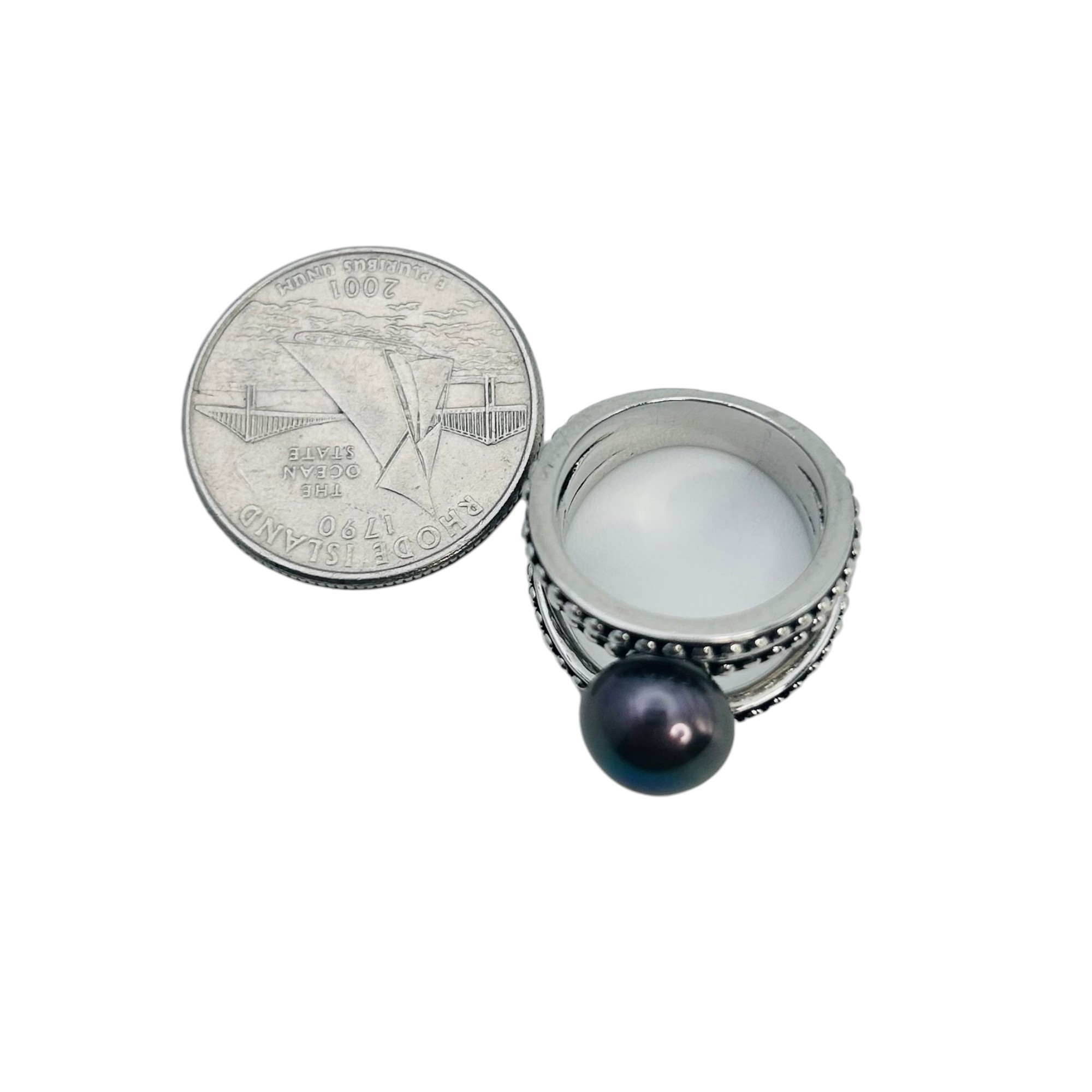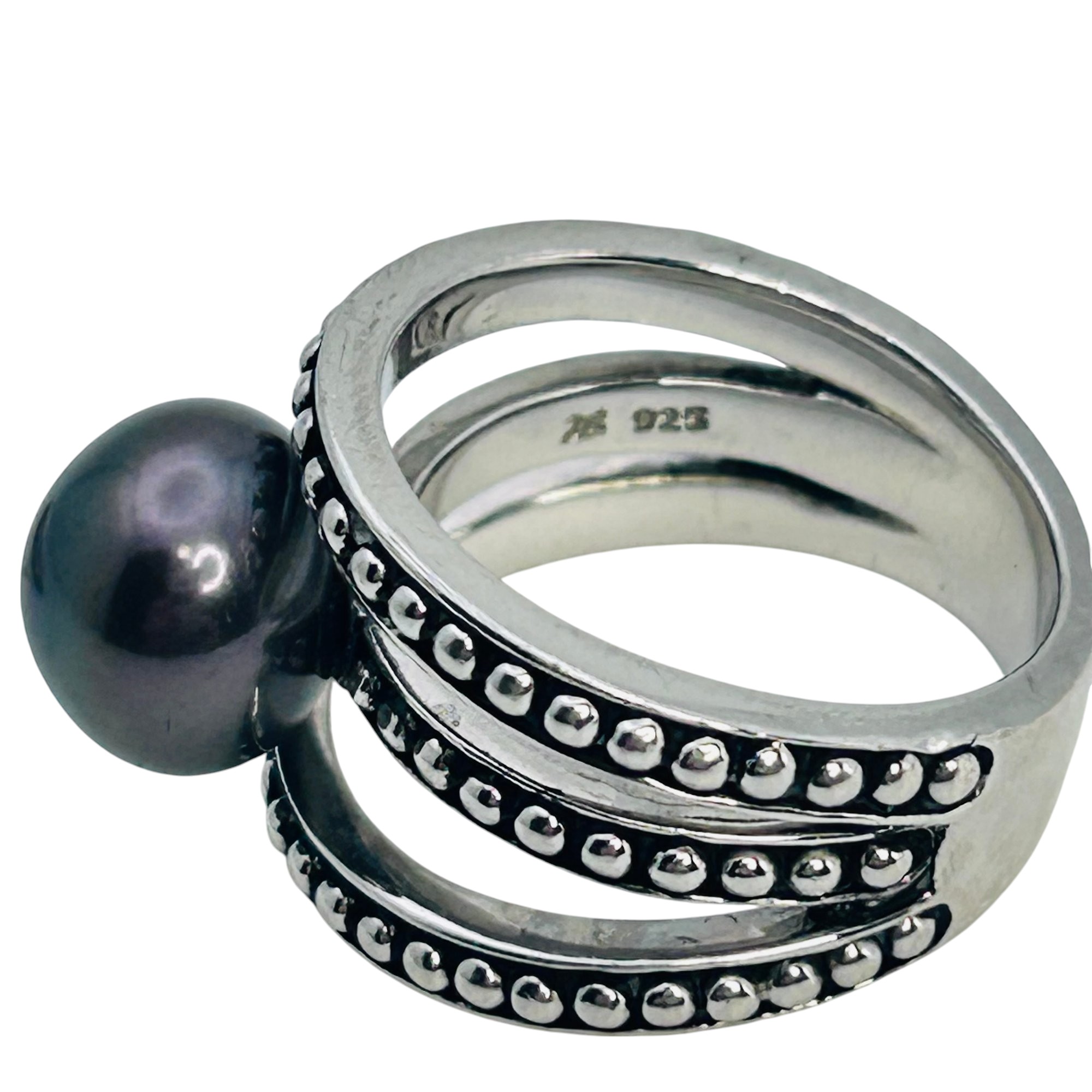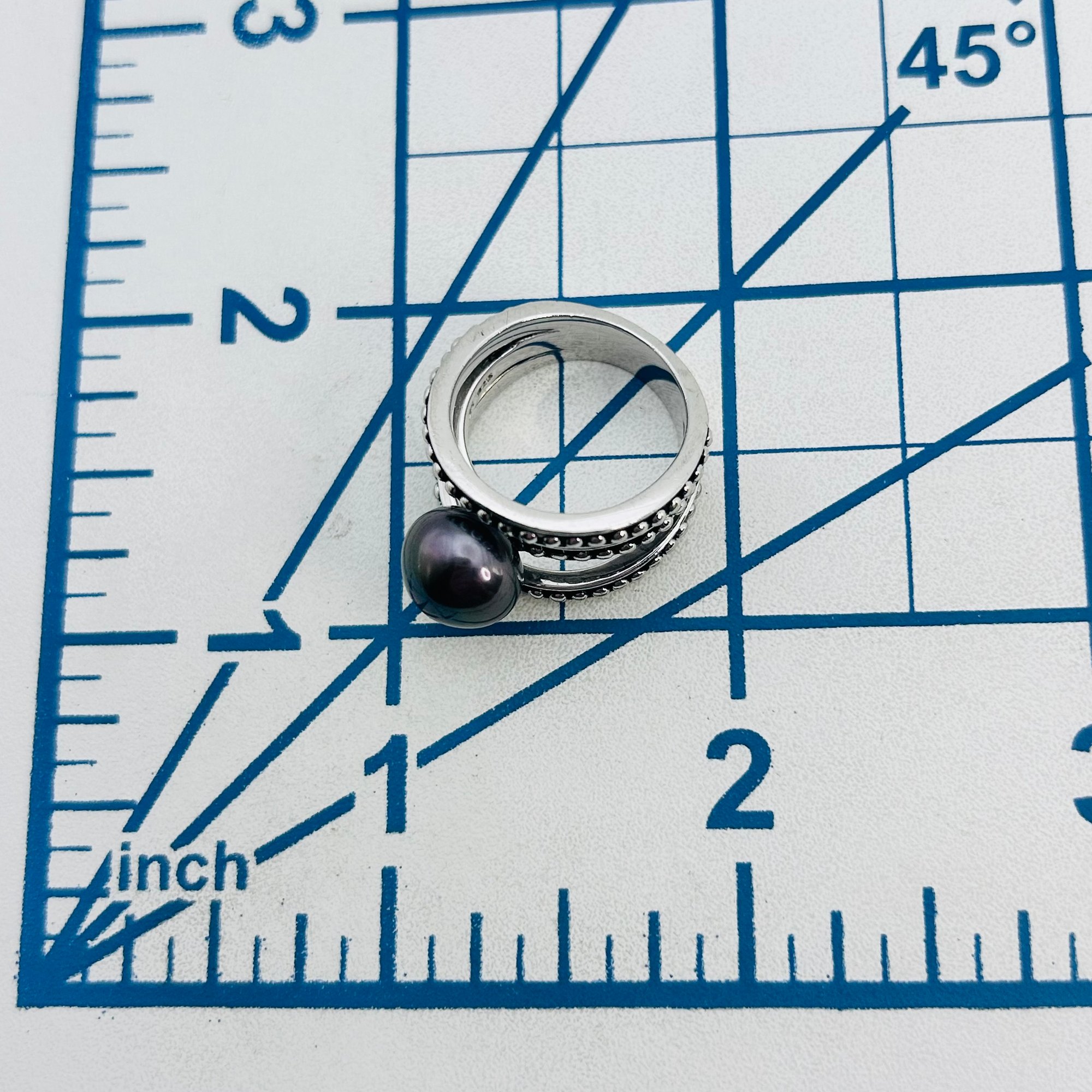 Tahitian pearl Sterling triple band ring size 57.72 g