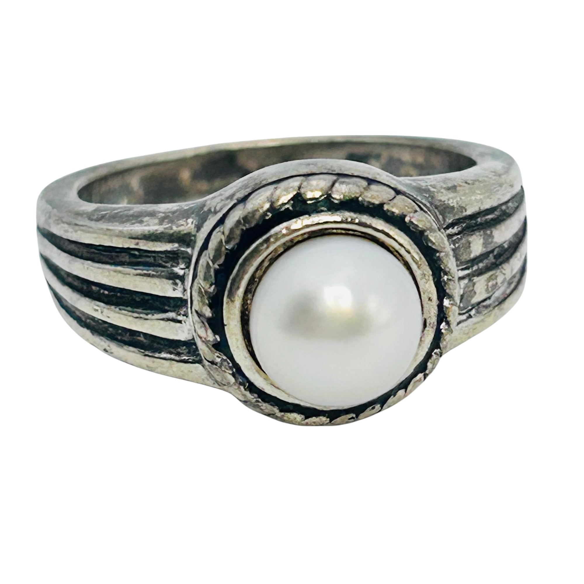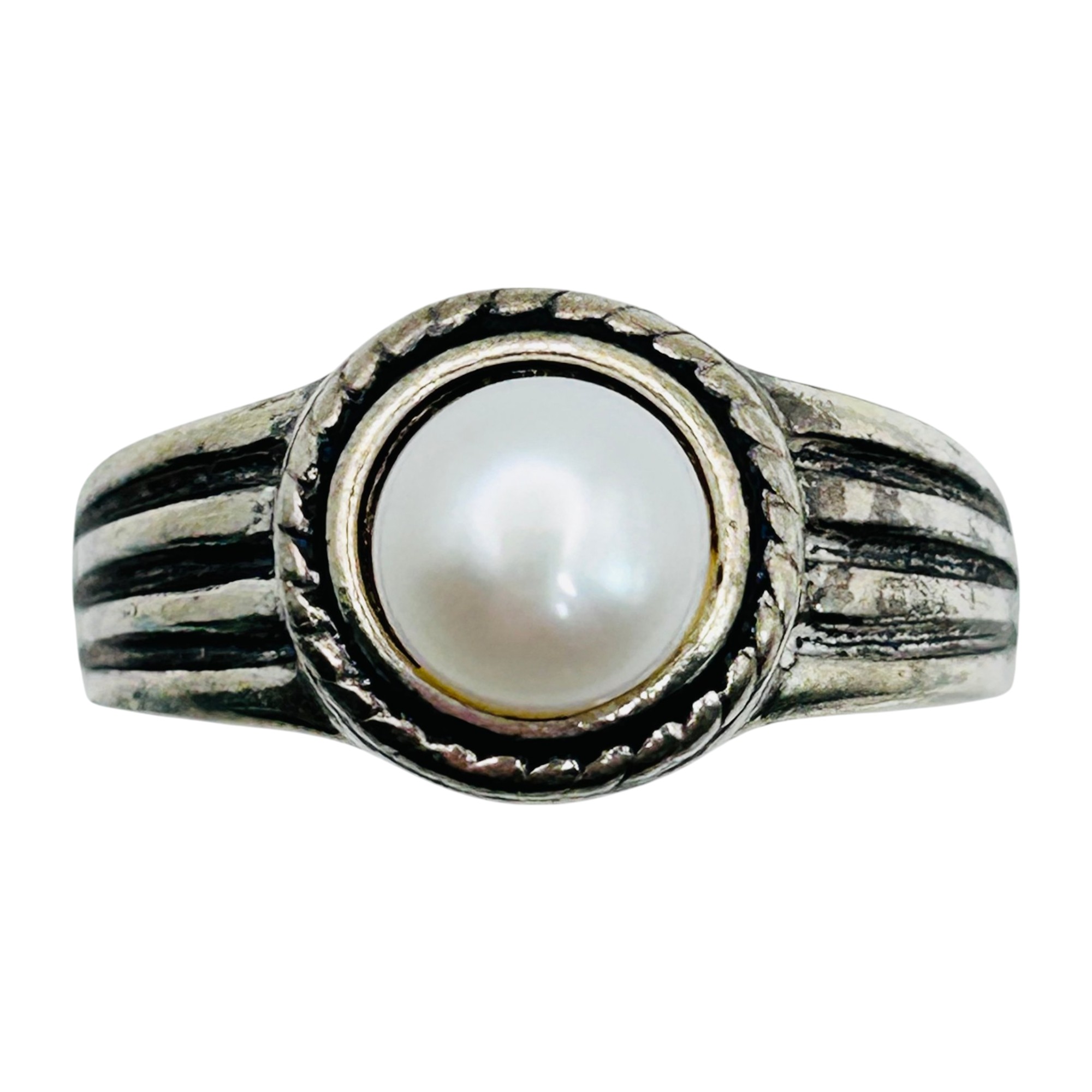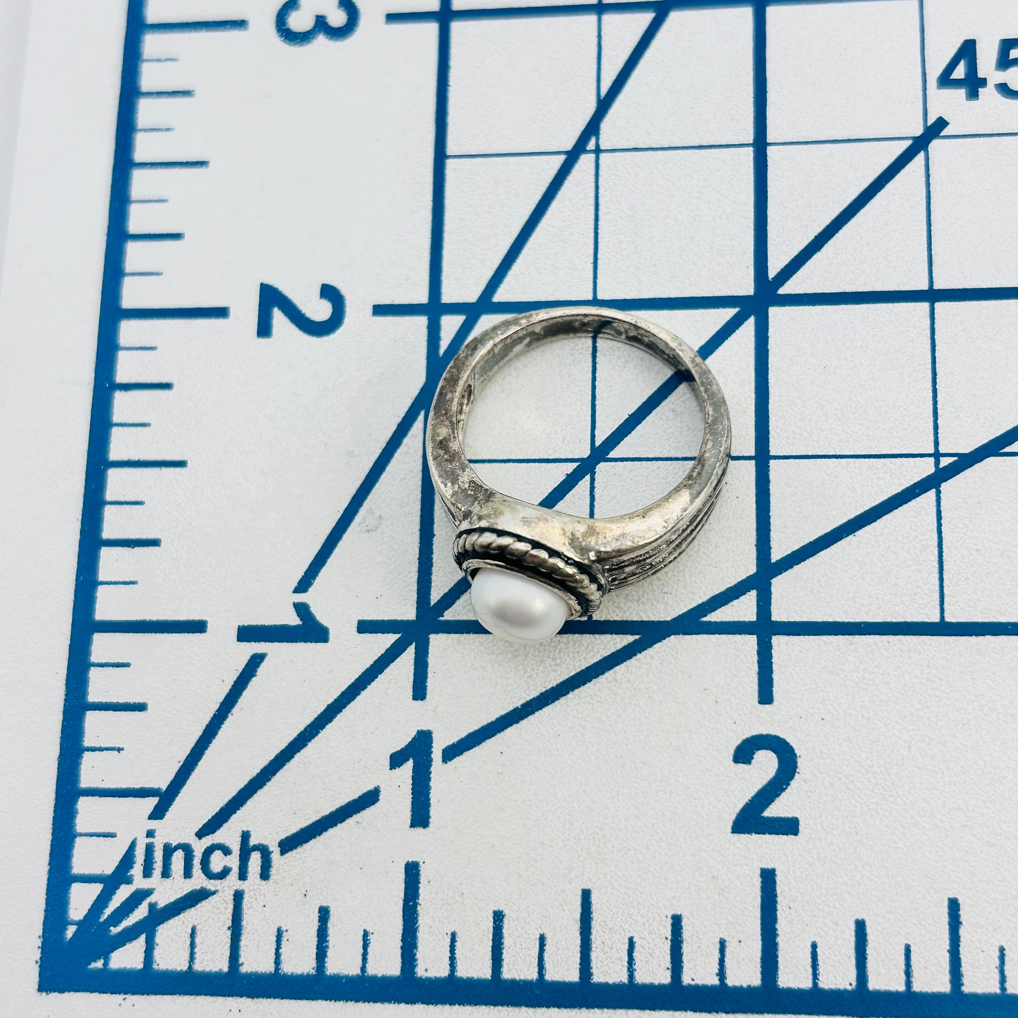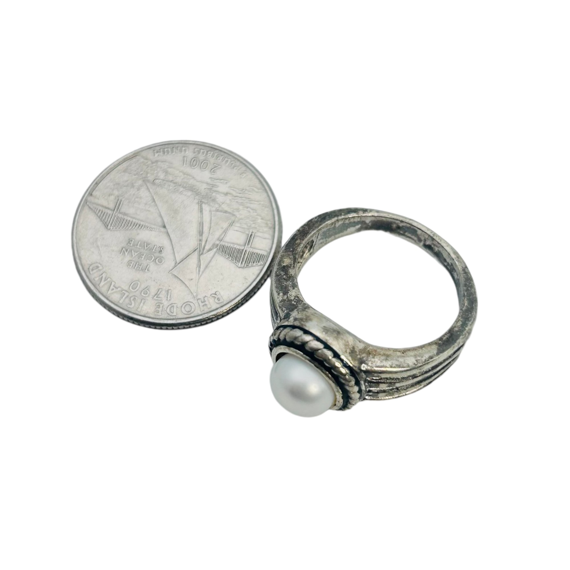 Single pearl sterling lined band Bezel set size 8 8.43 g