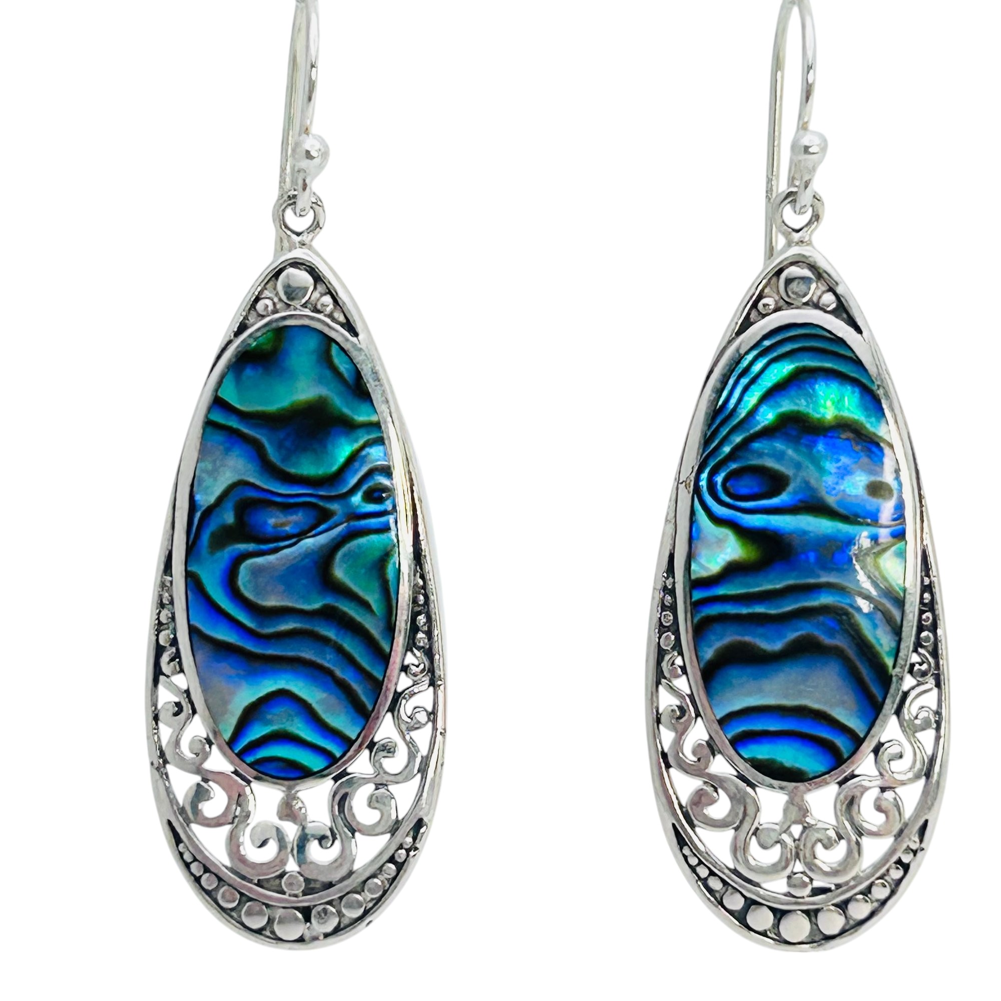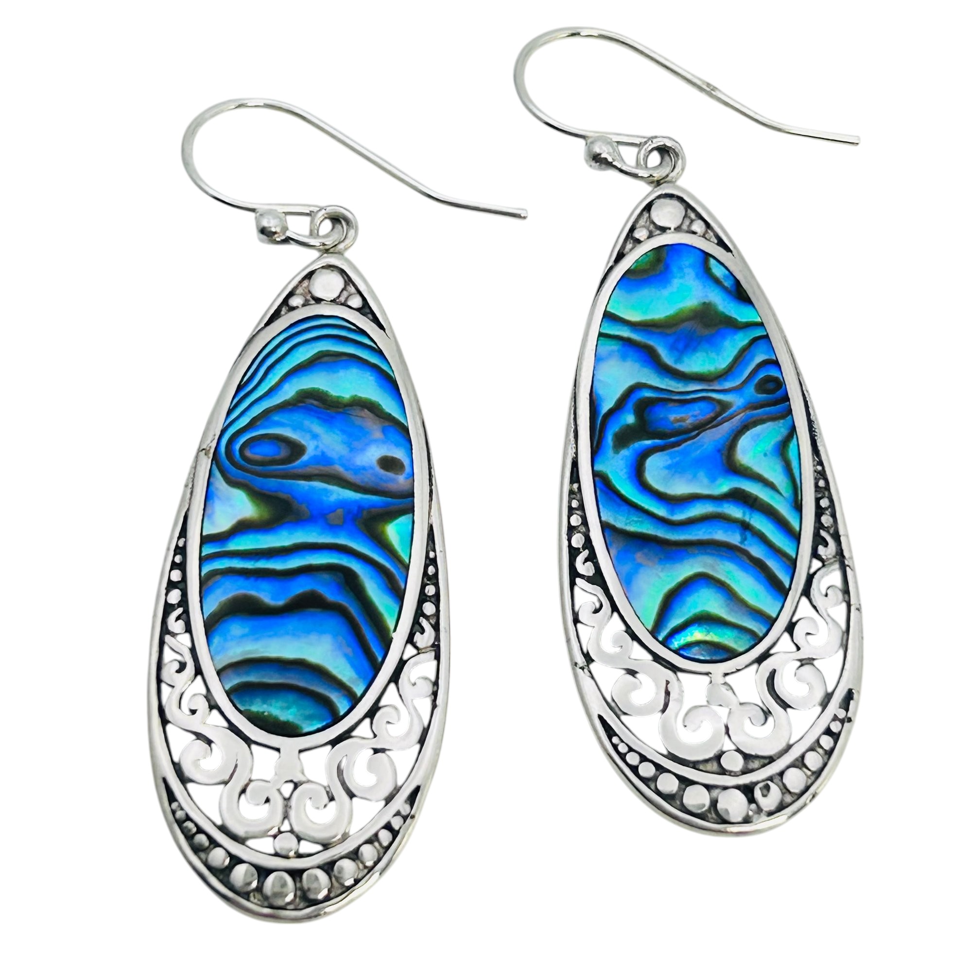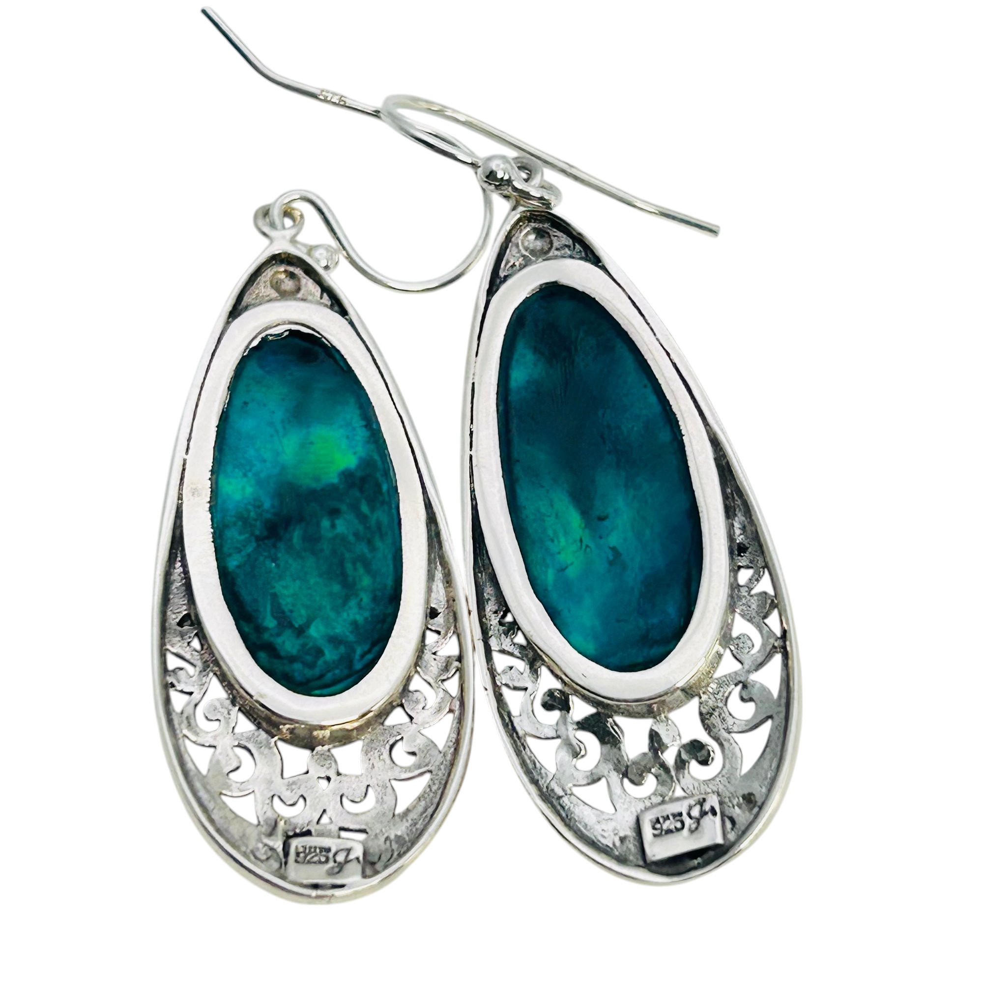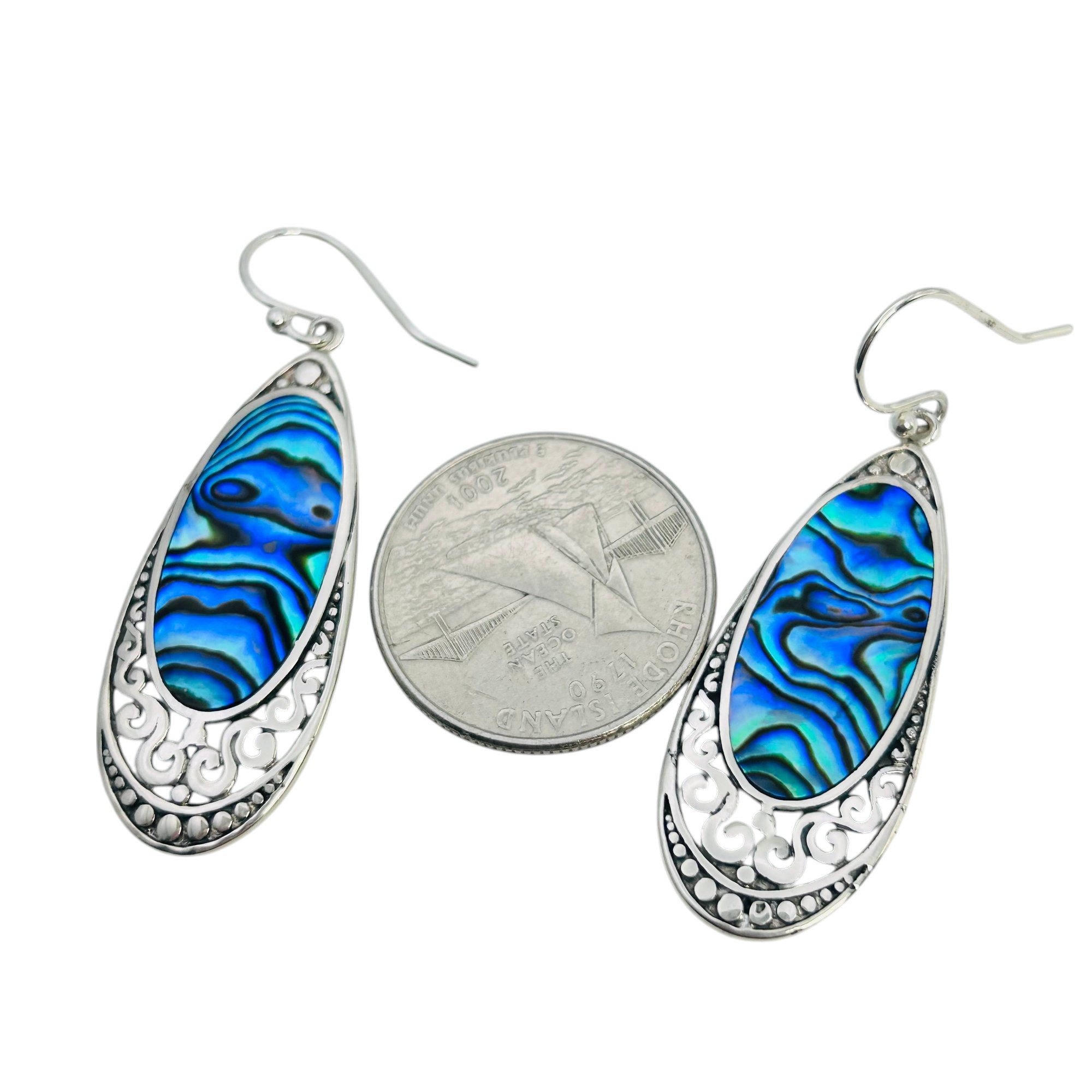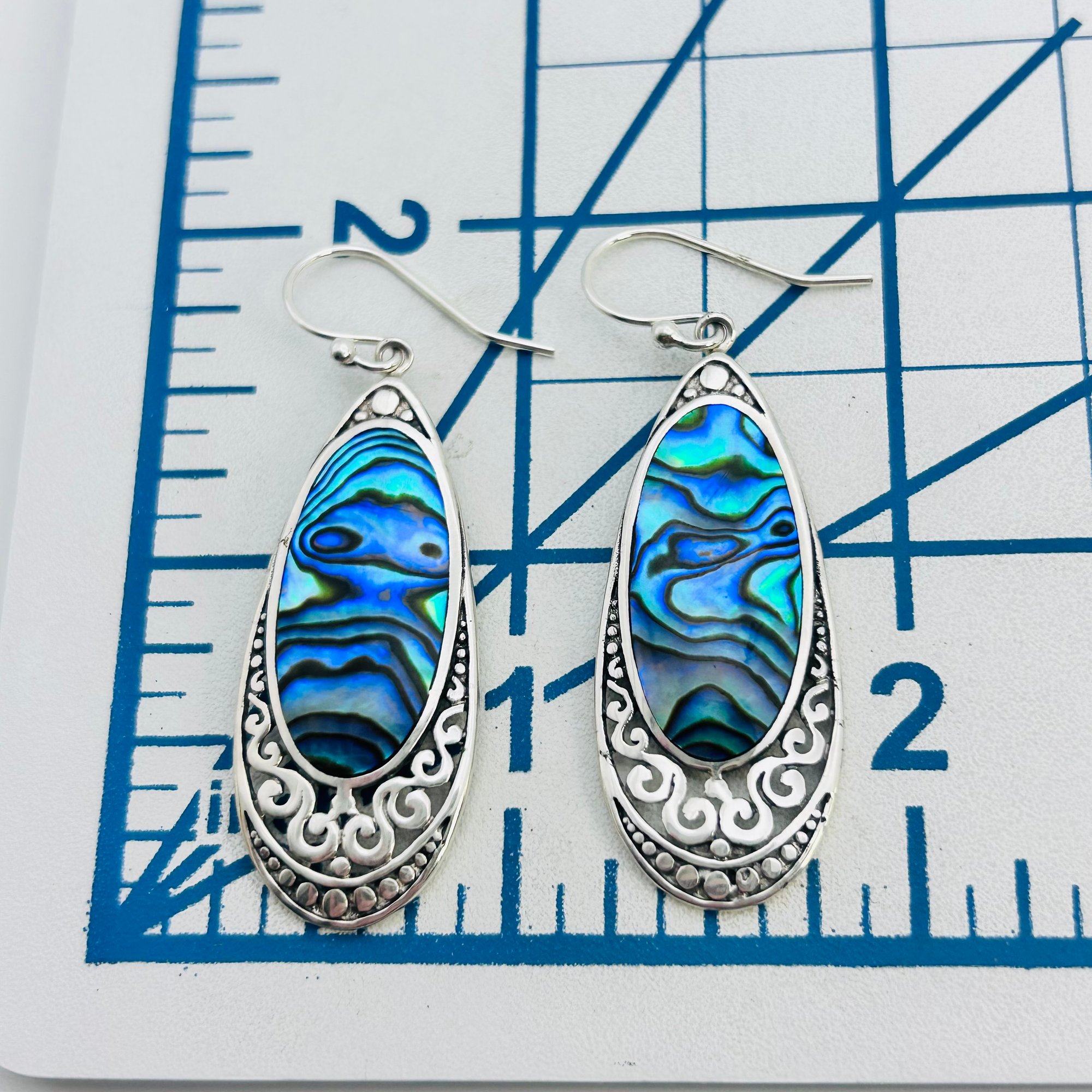 Signed abalone Sterling oval dangle hook back earrings 6.65 g