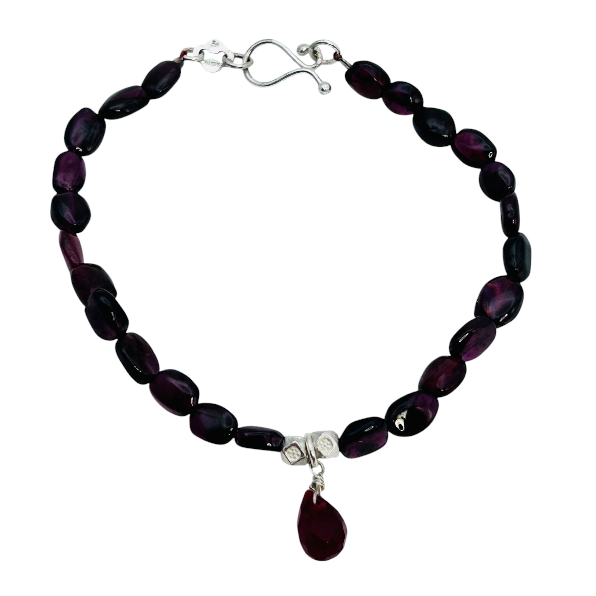 MO Garnet stone bracelet sterling clasp 8.65 g