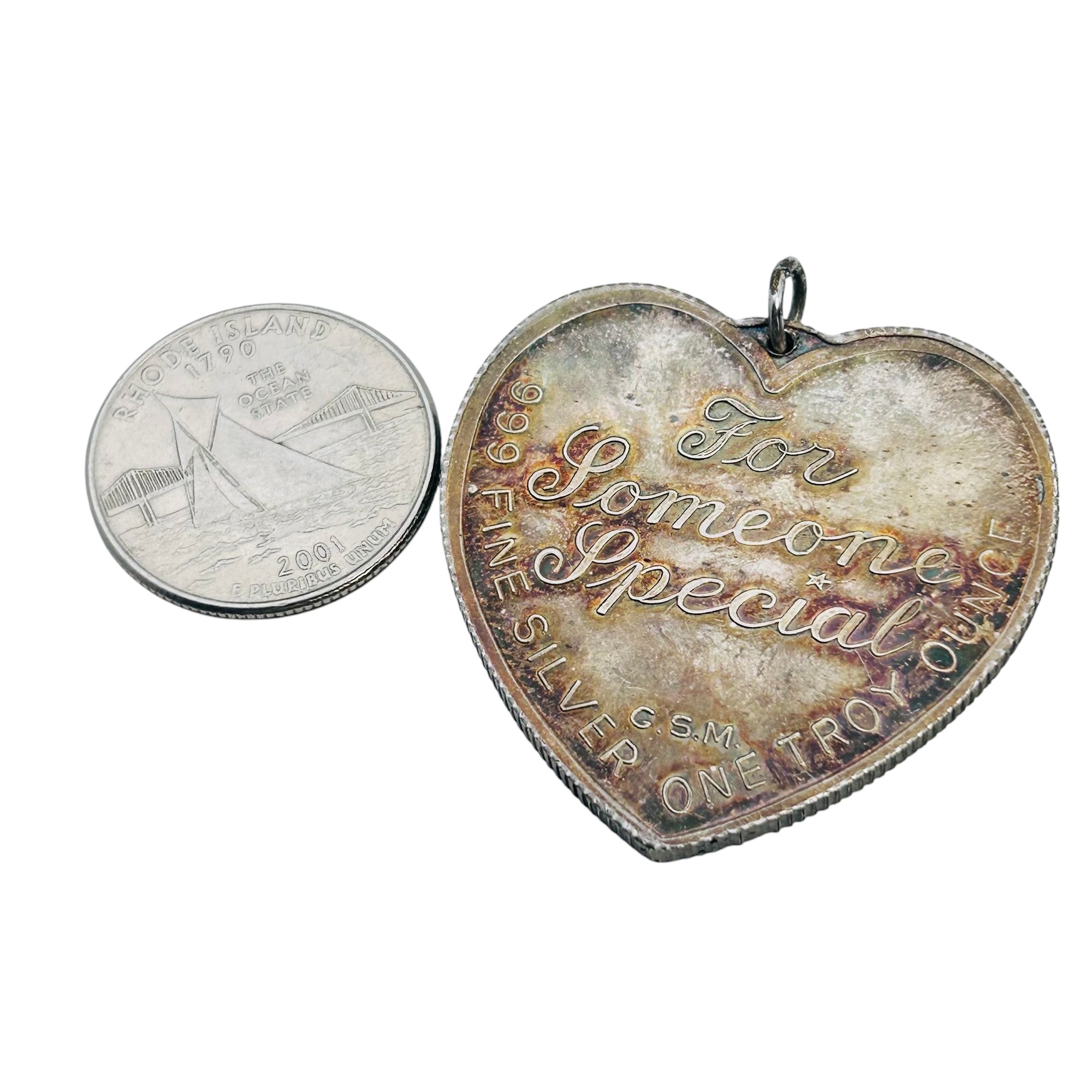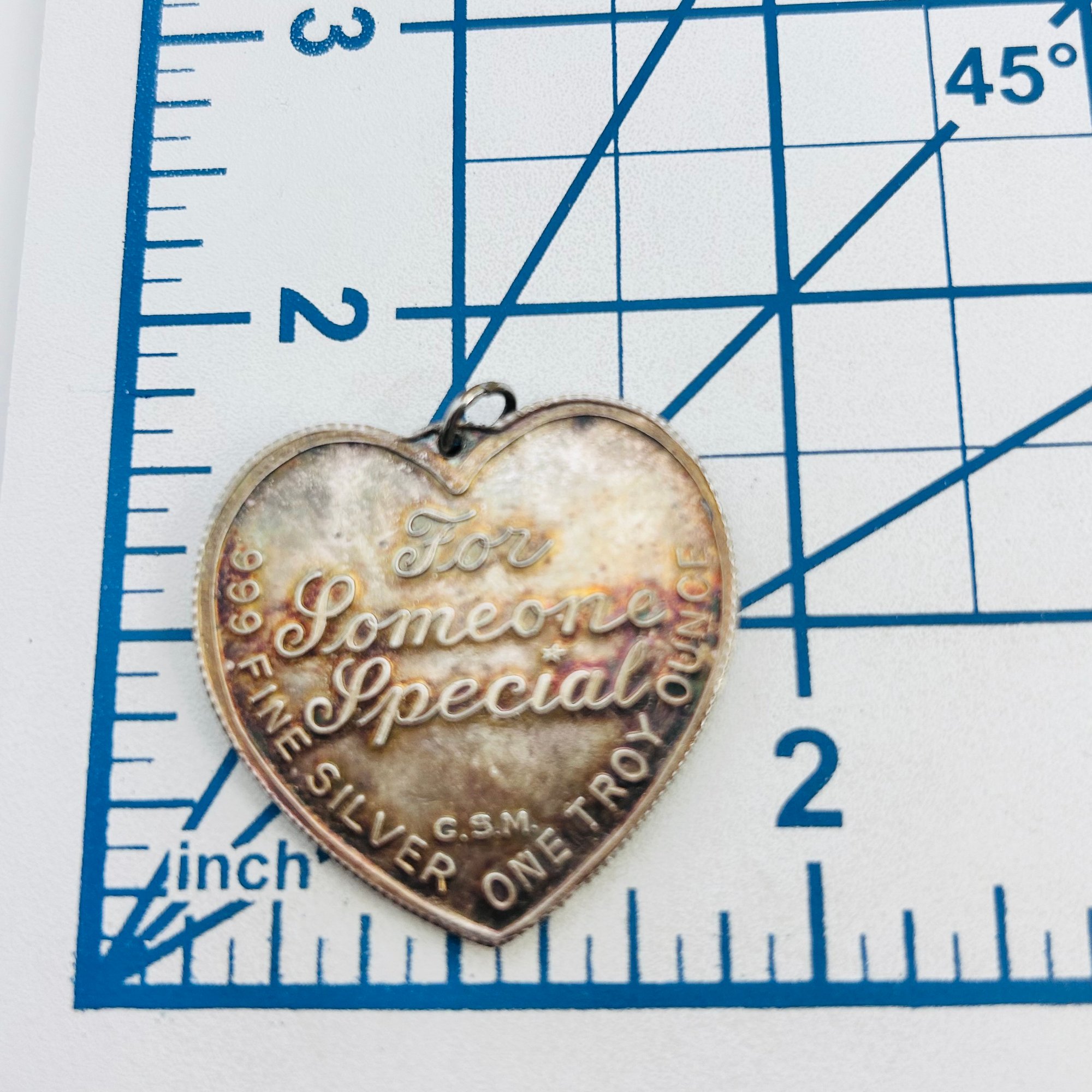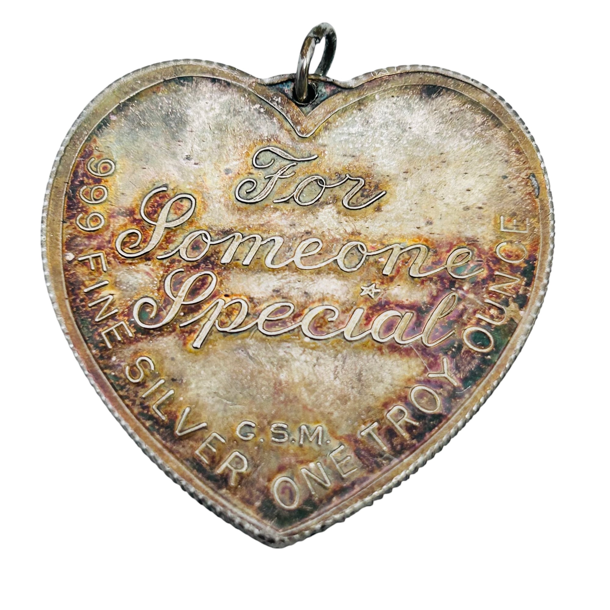 One Troy ounce vintage heart-shaped .999 fine silver GSM “for someone special” 31.1 g