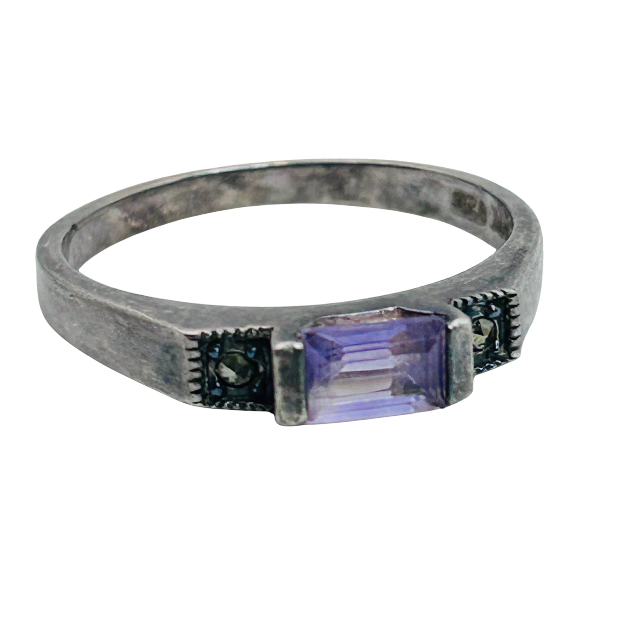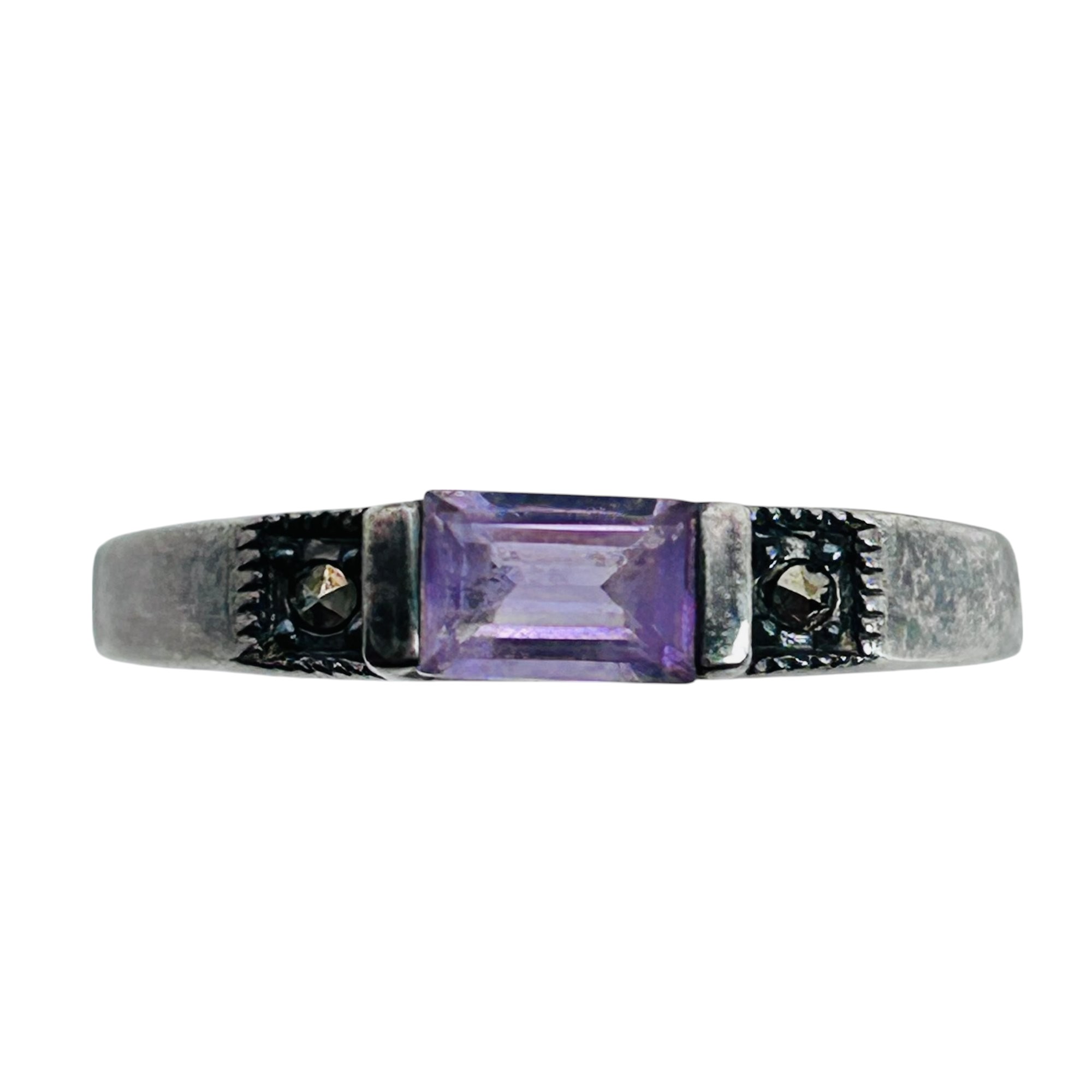 NM amethyst and marcasite sterling ring size 9 2.65 g