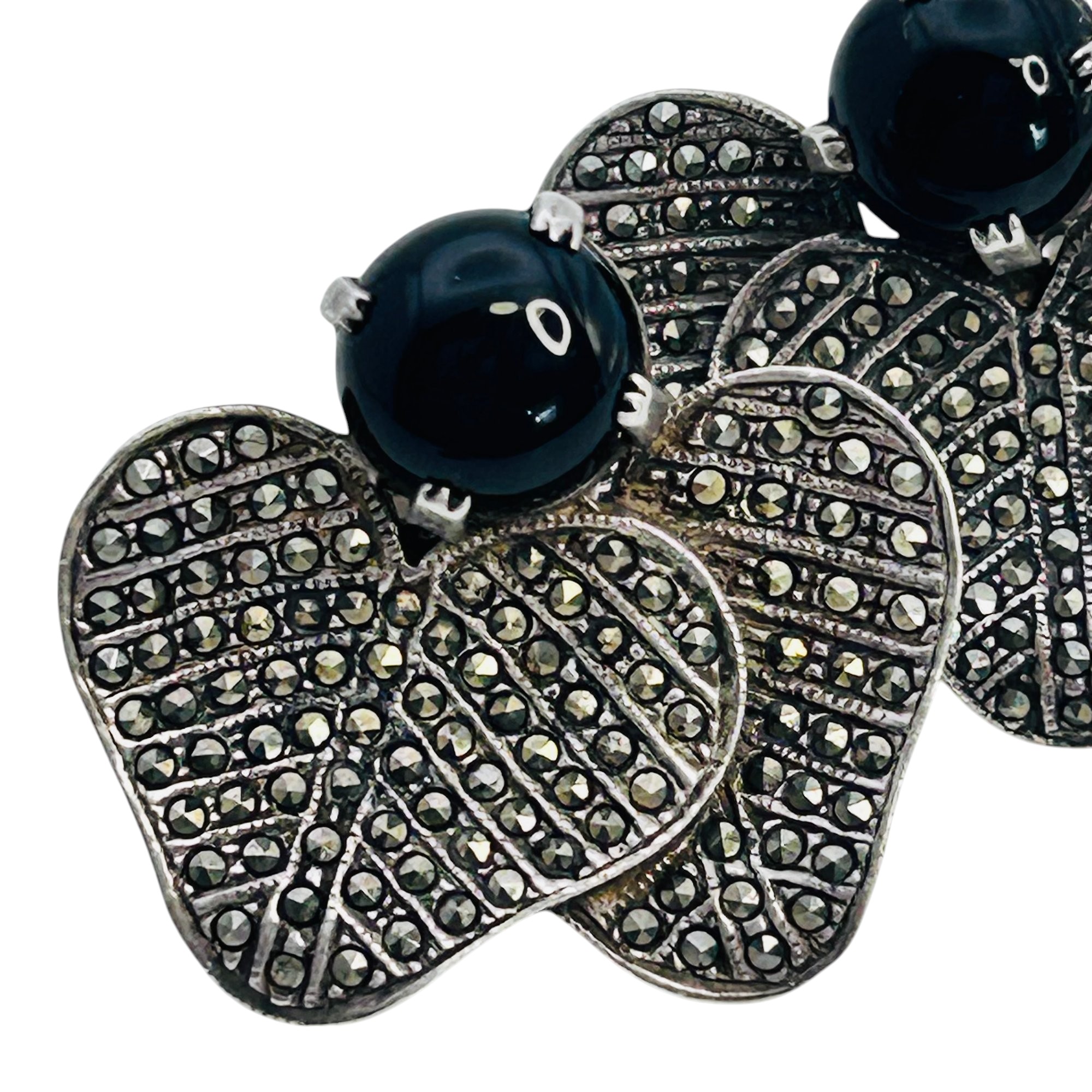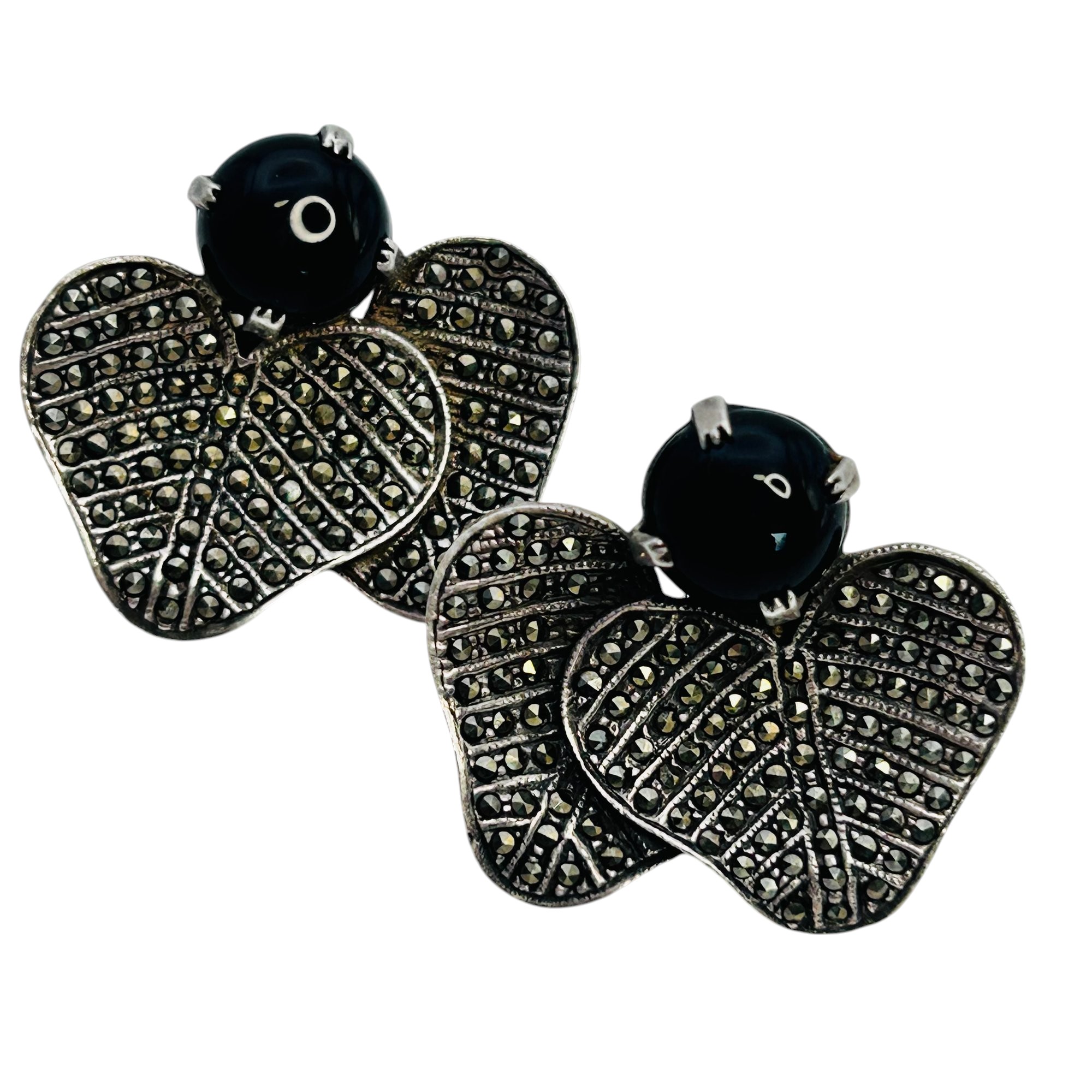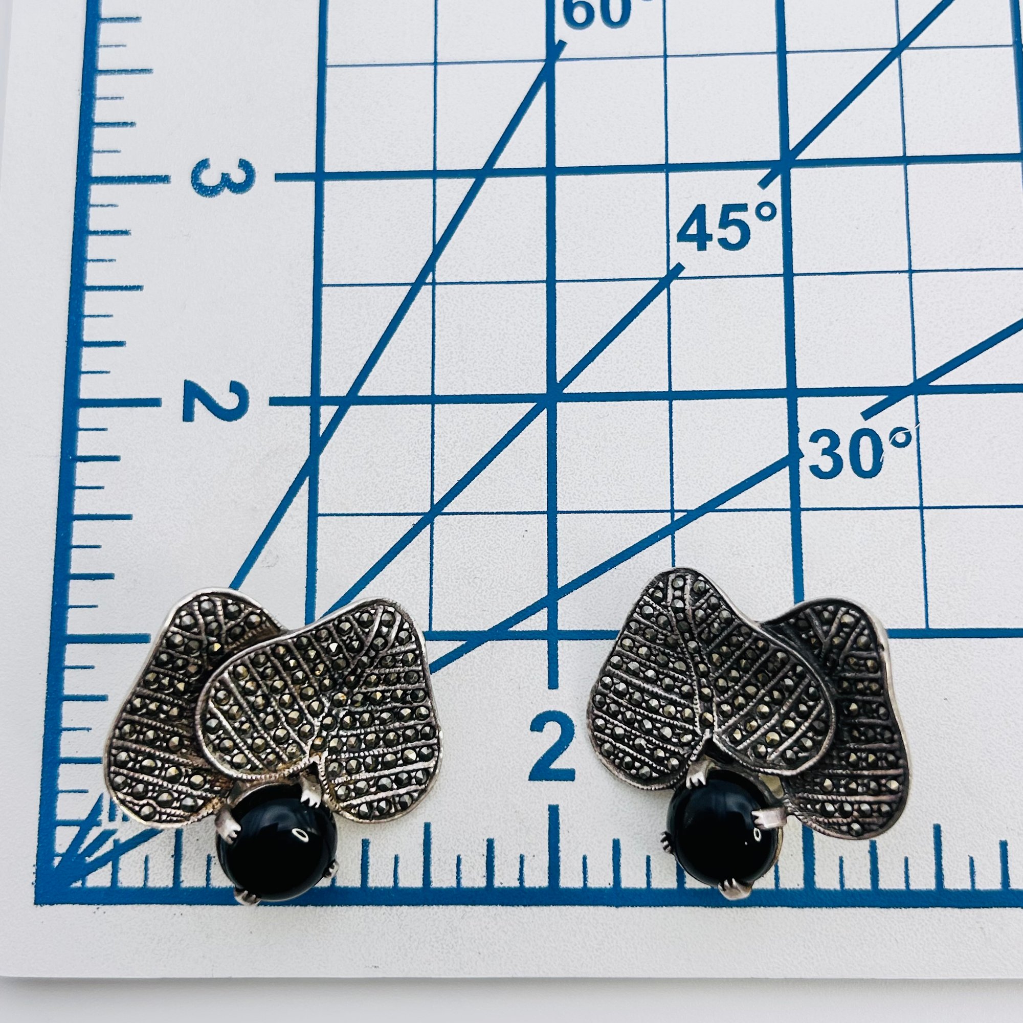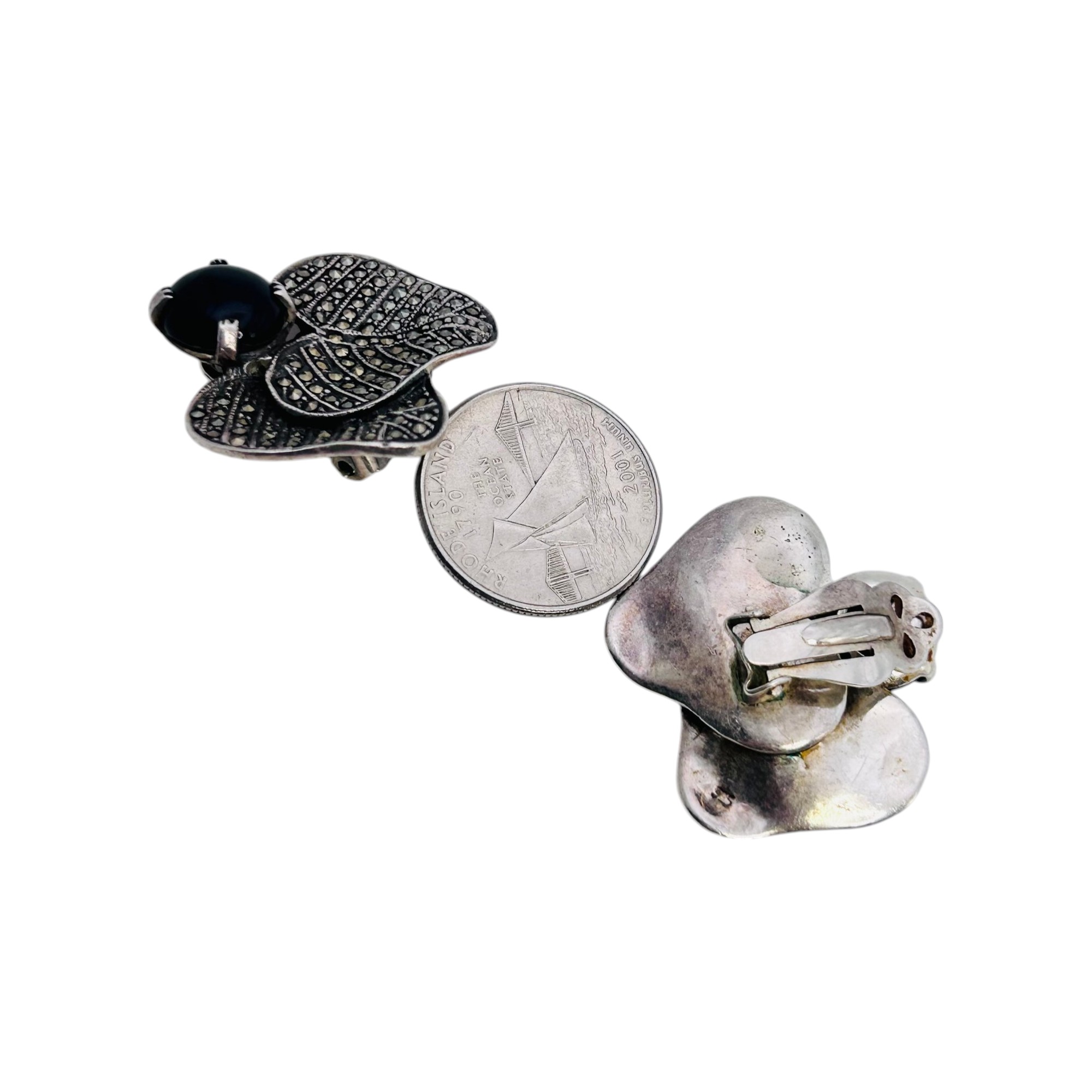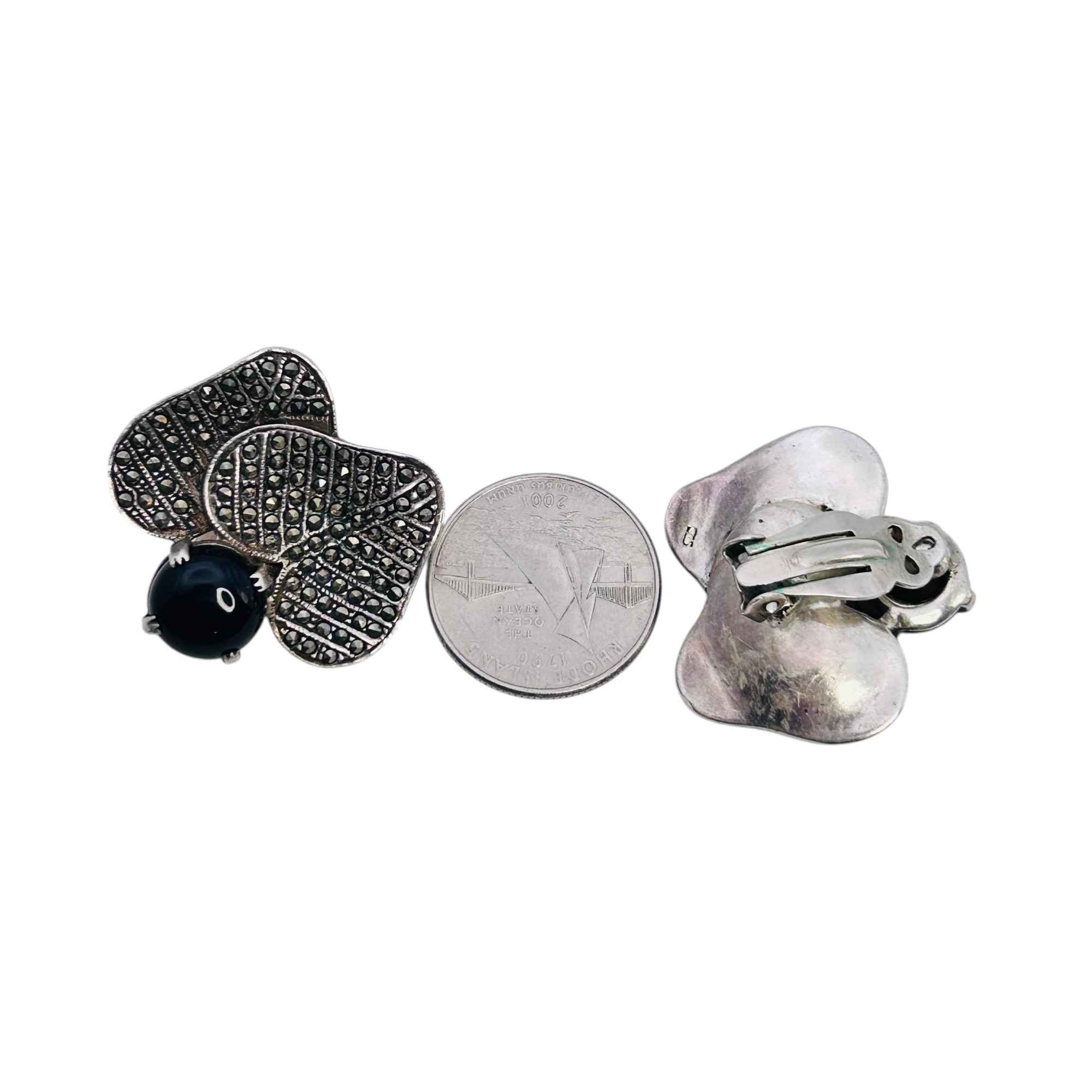 ONYX and MARCASITE Sterling clip on earrings 23.03 g