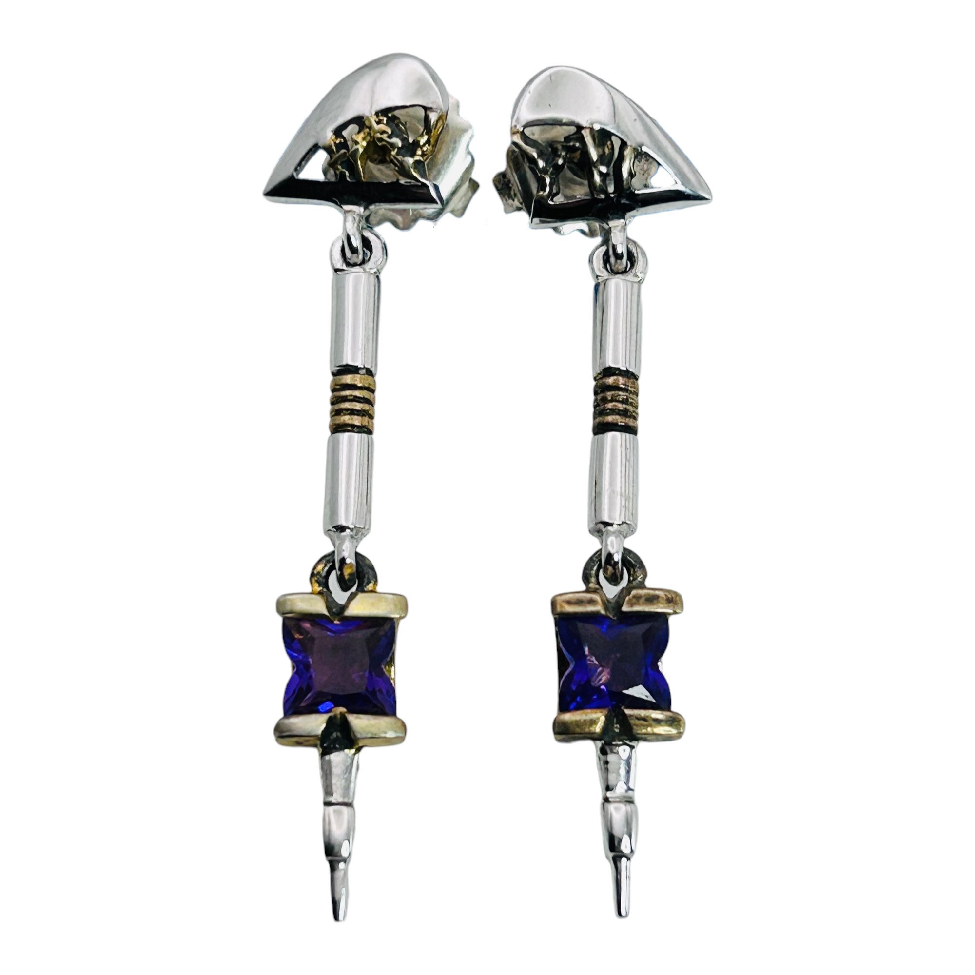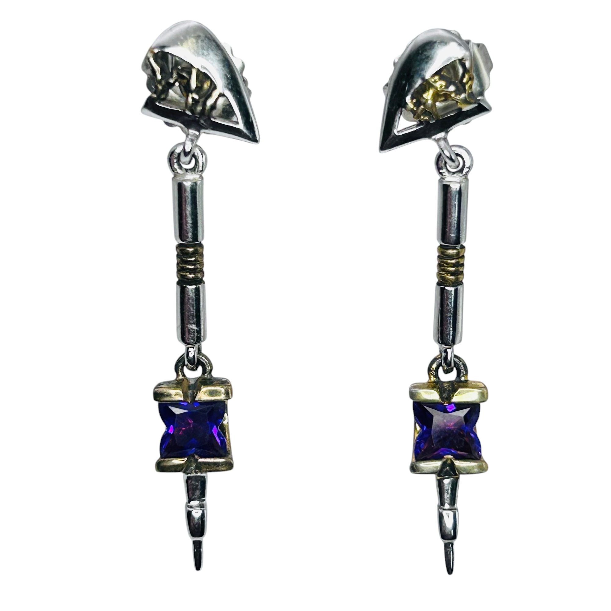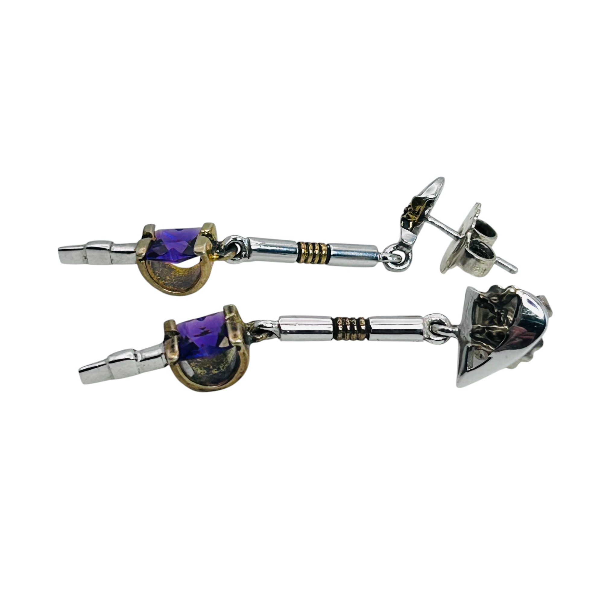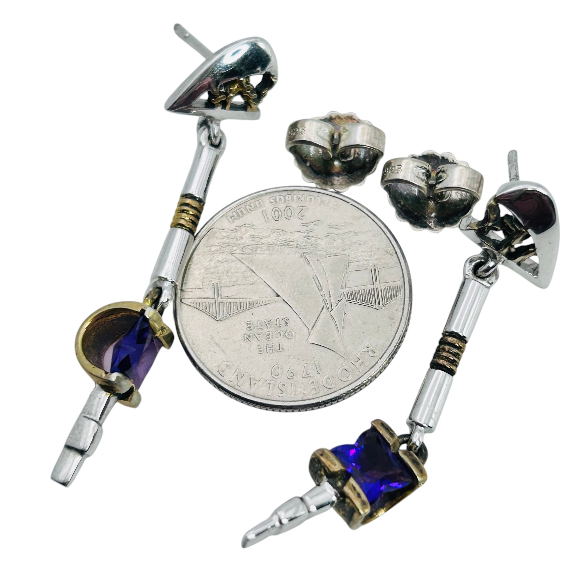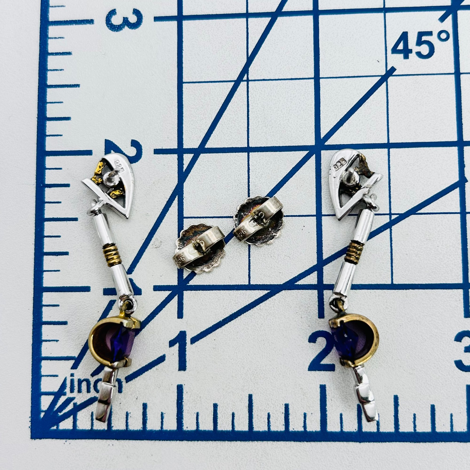 Amethyst Sterling silver dangle earrings gold tone accent 9.77 g