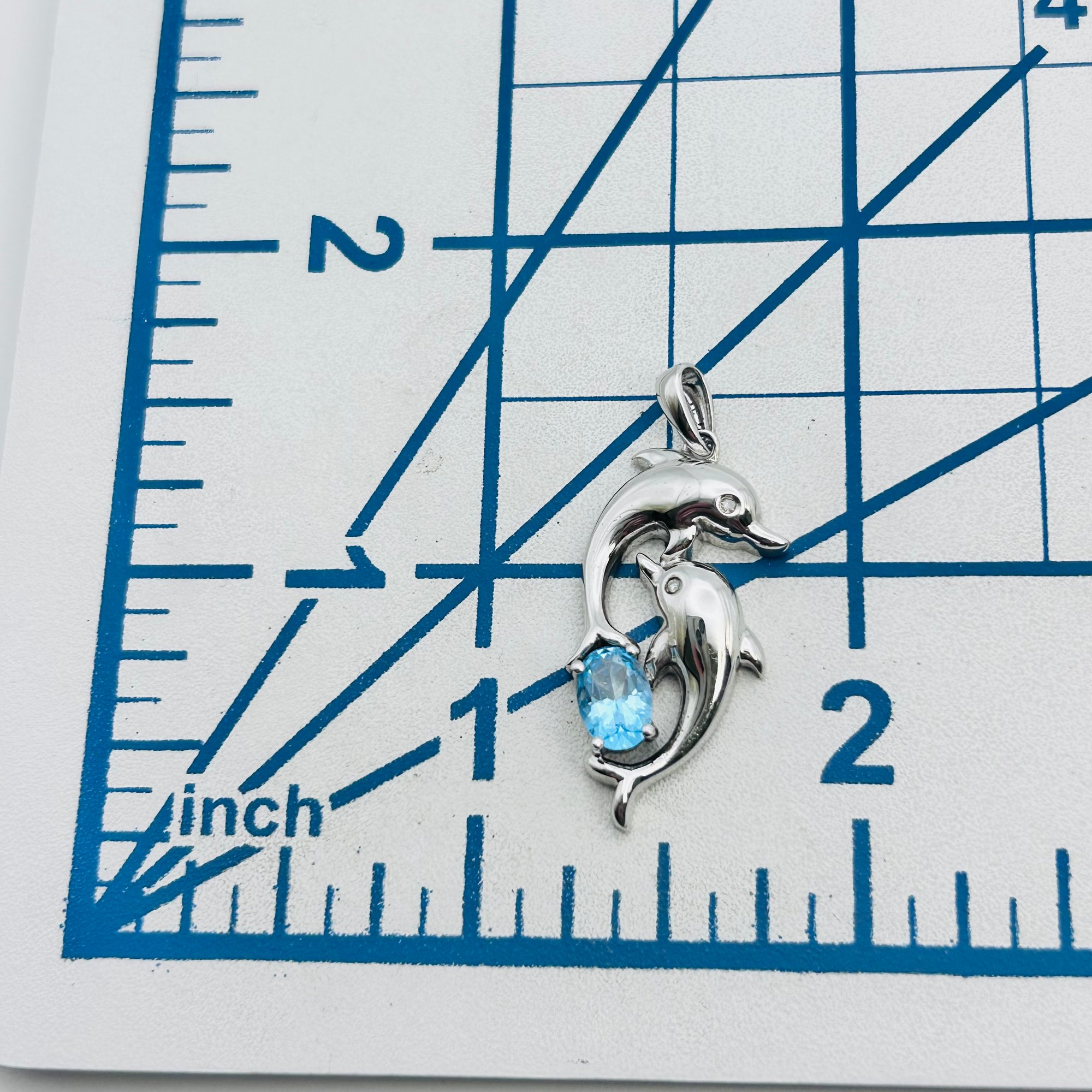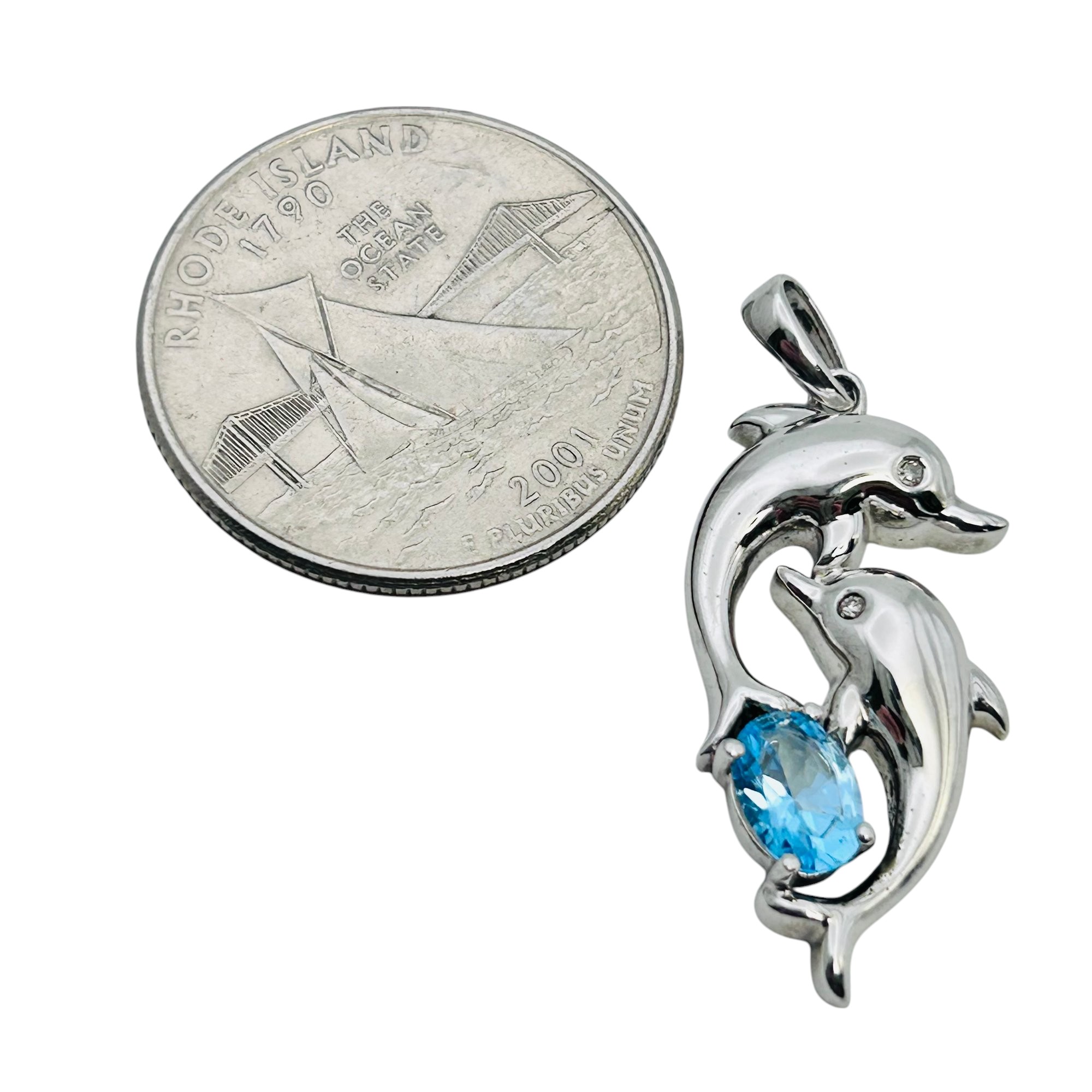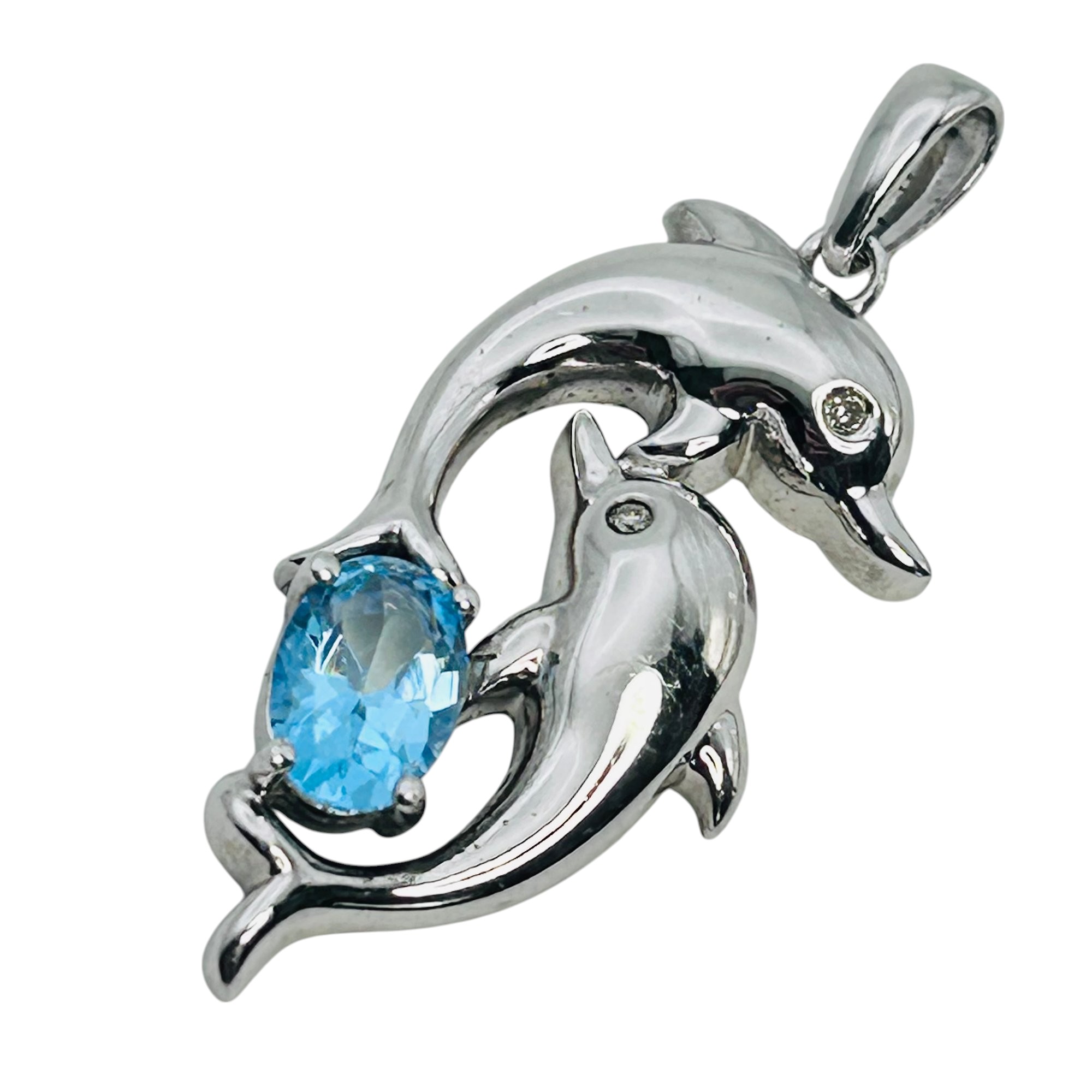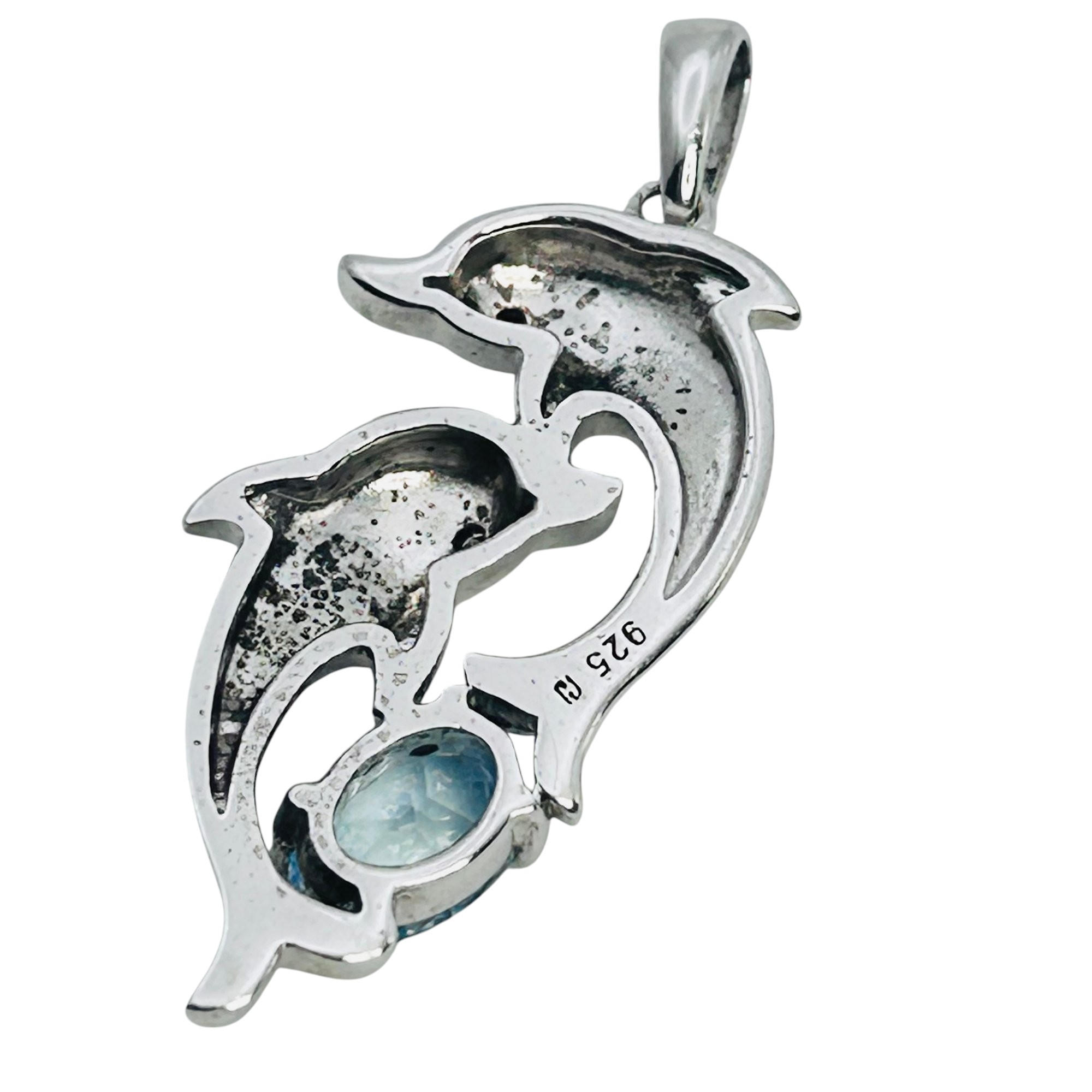 Topaz dolphin duo sterling silver pendant 3.68 g
