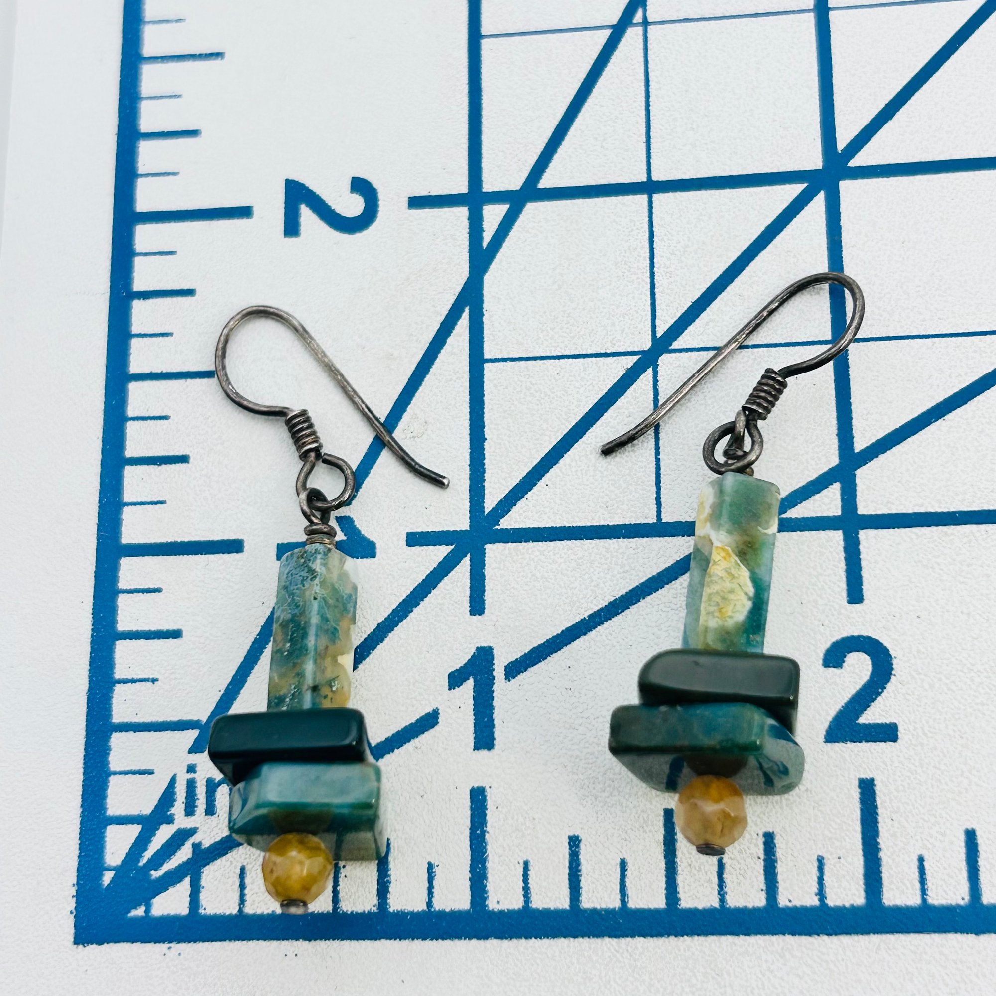 Multi gemstone emerald/garnet? Sterling modern hook back earrings 5.37 g