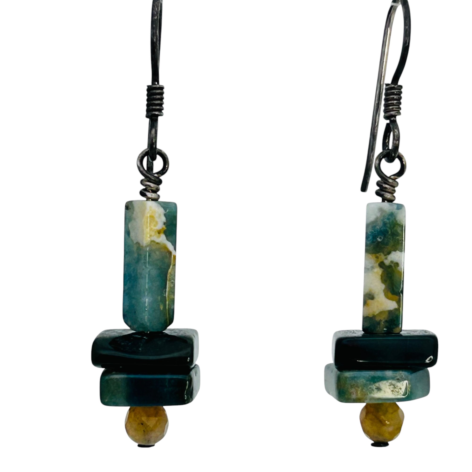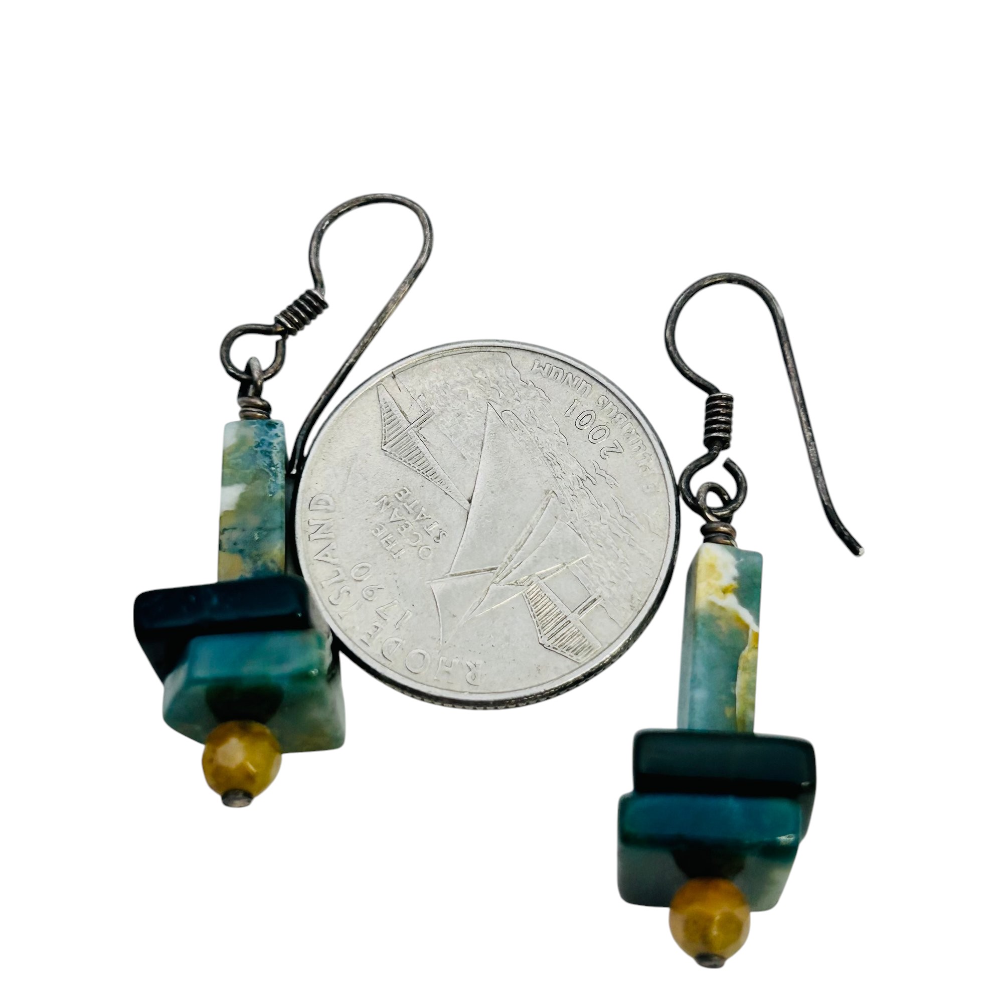 Multi Gemstone Emerald/garnet? Sterling Modern Hook Back Earrings, 5.37 G
