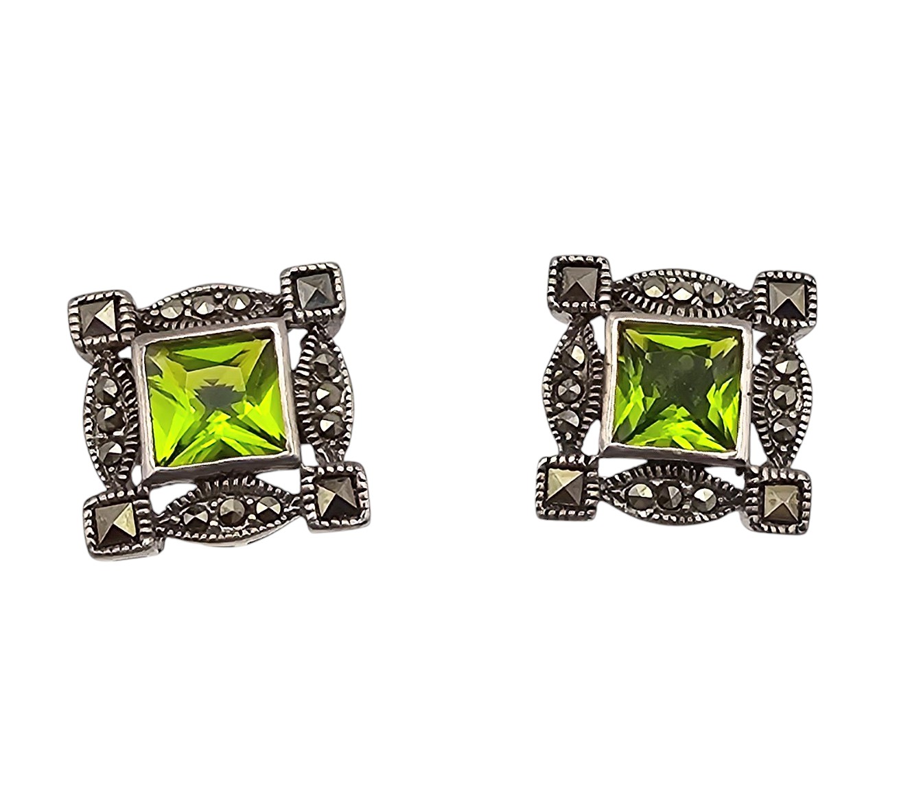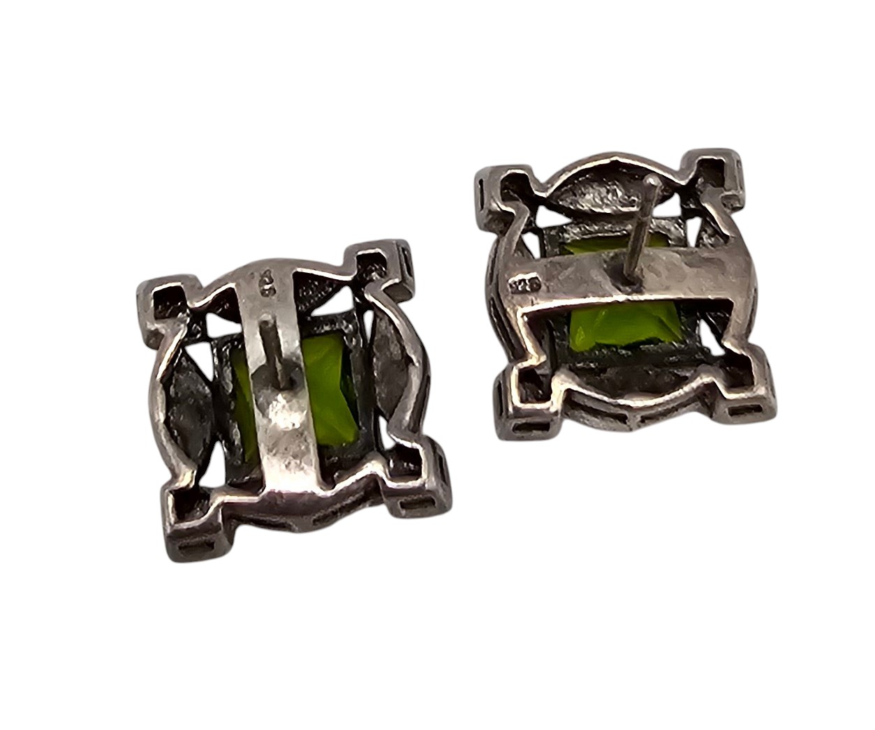 Marcasite Rhinestone Sterling Silver Earrings 6.1 G