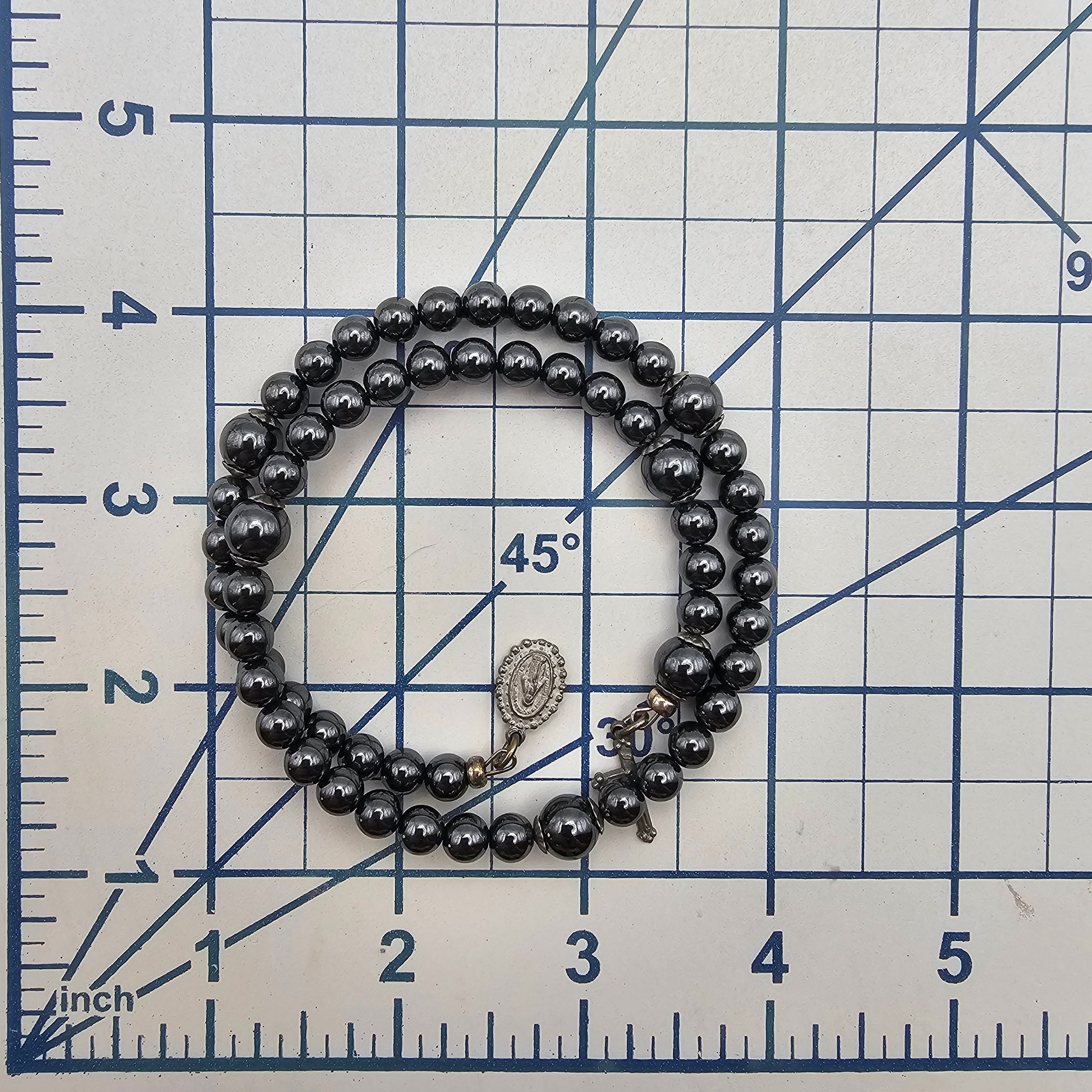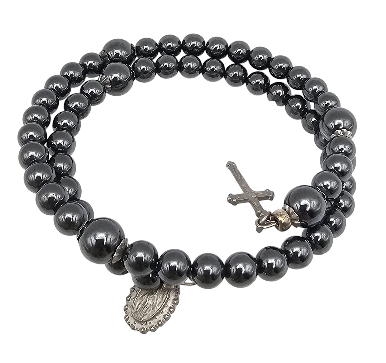 Creed Sterling Silver Hematite religious wrap Bracelet 41.7 G