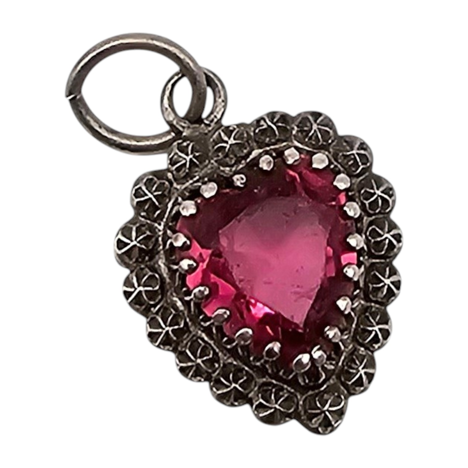 Rhinestone Sterling Silver Heart Pendant 1.9 G