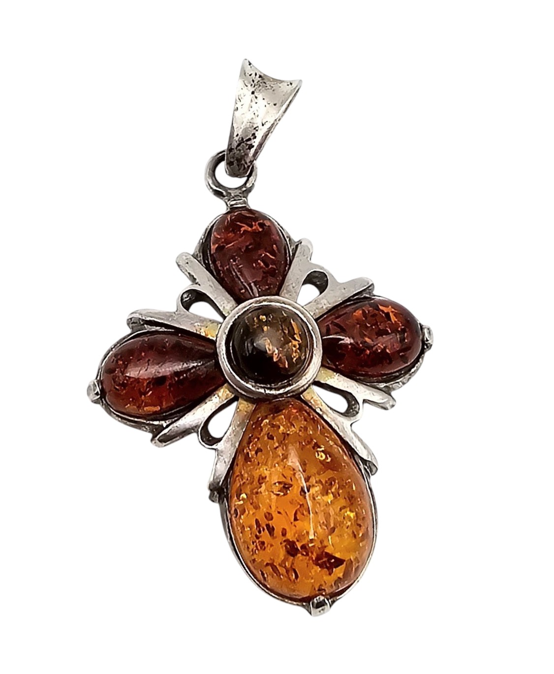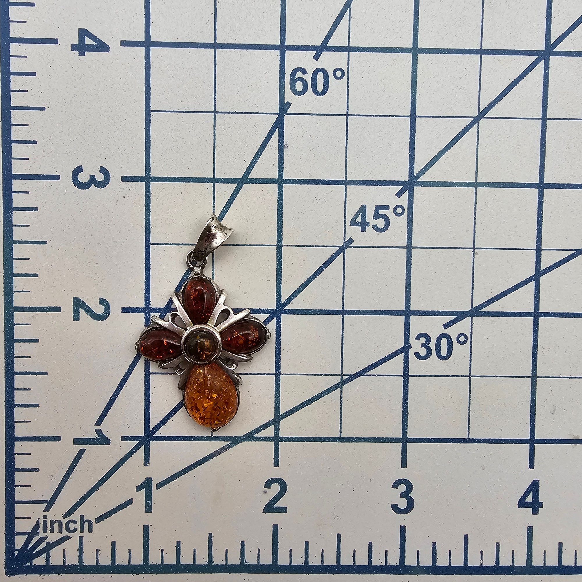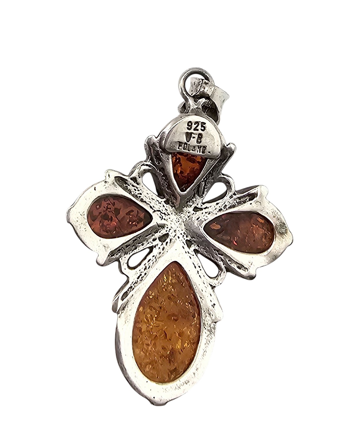 V.B. Poland Amber Sterling Silver cross Pendant 4.7 G