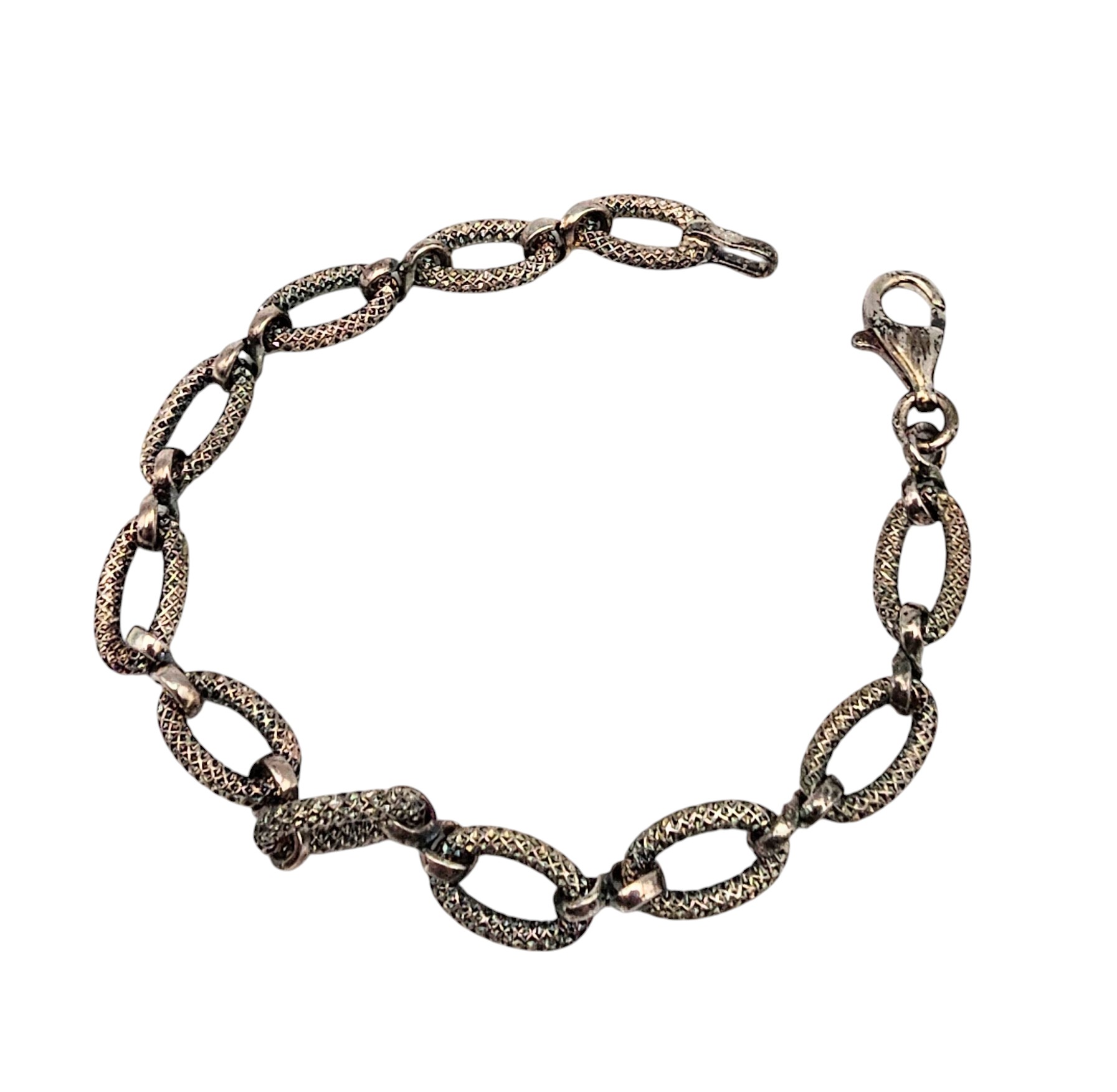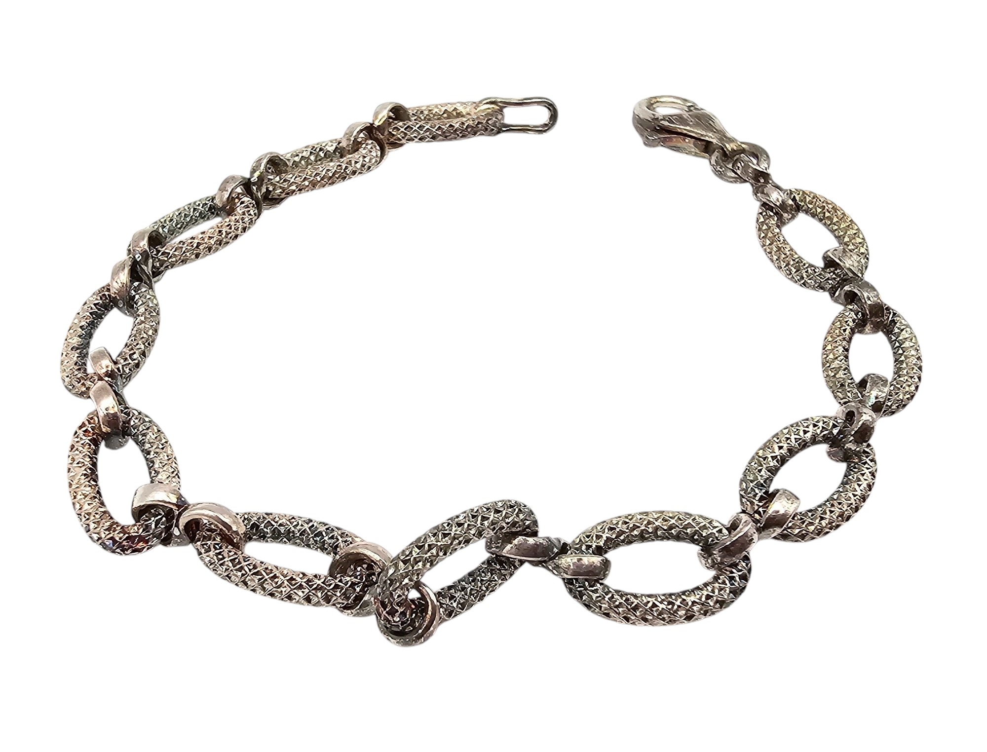 Sterling Silver Textured Circle Link Bracelet 13.5 G