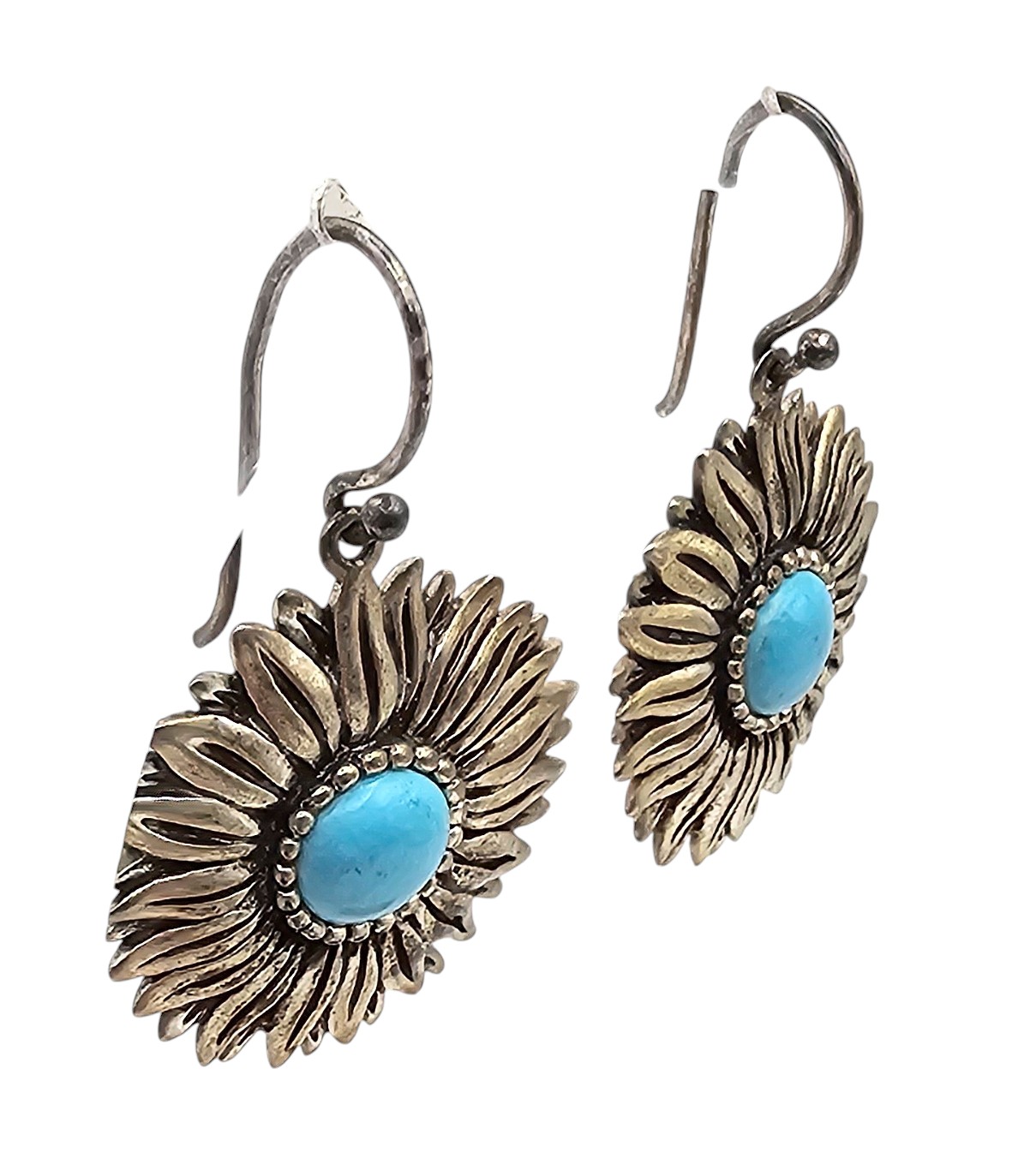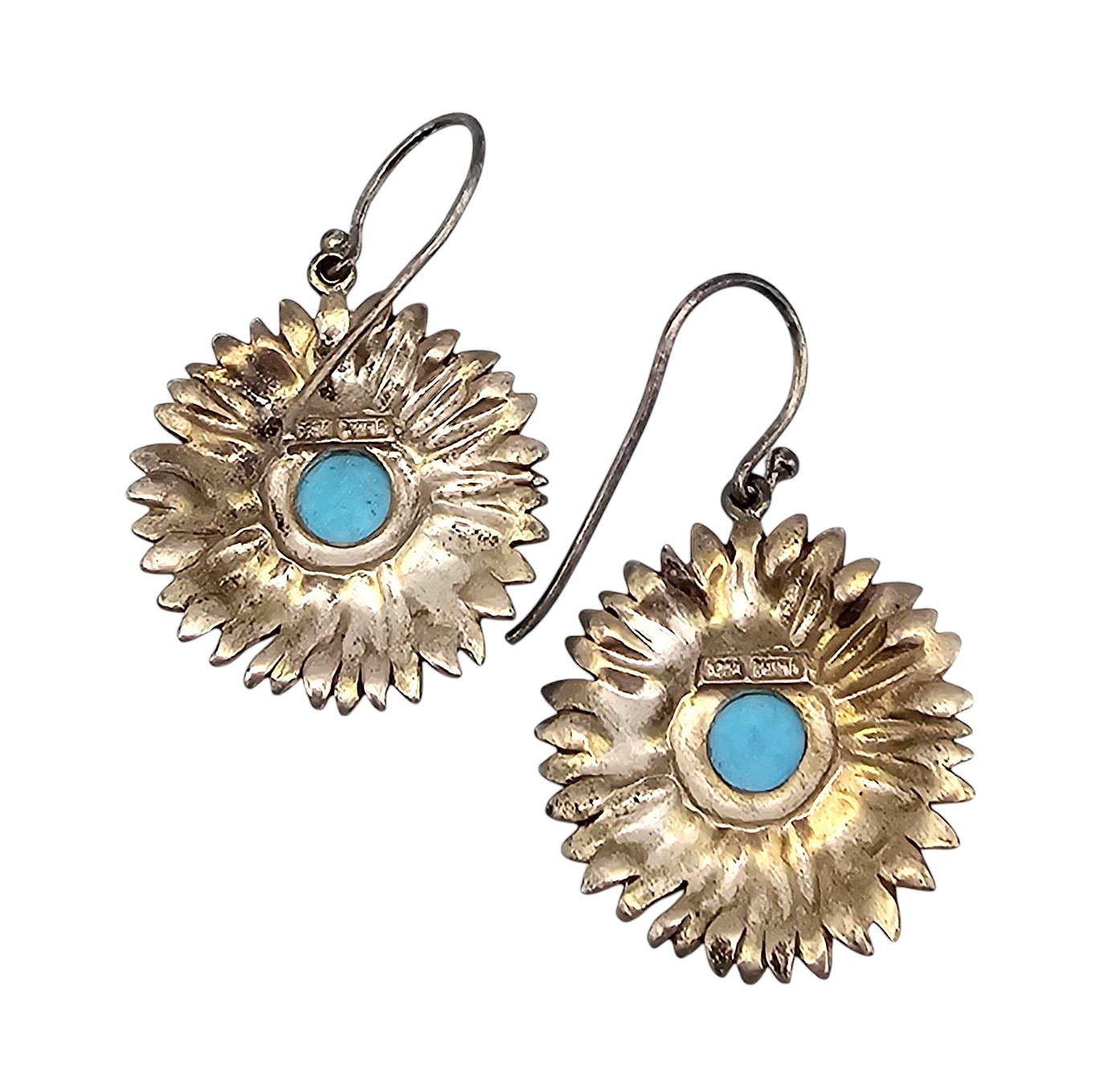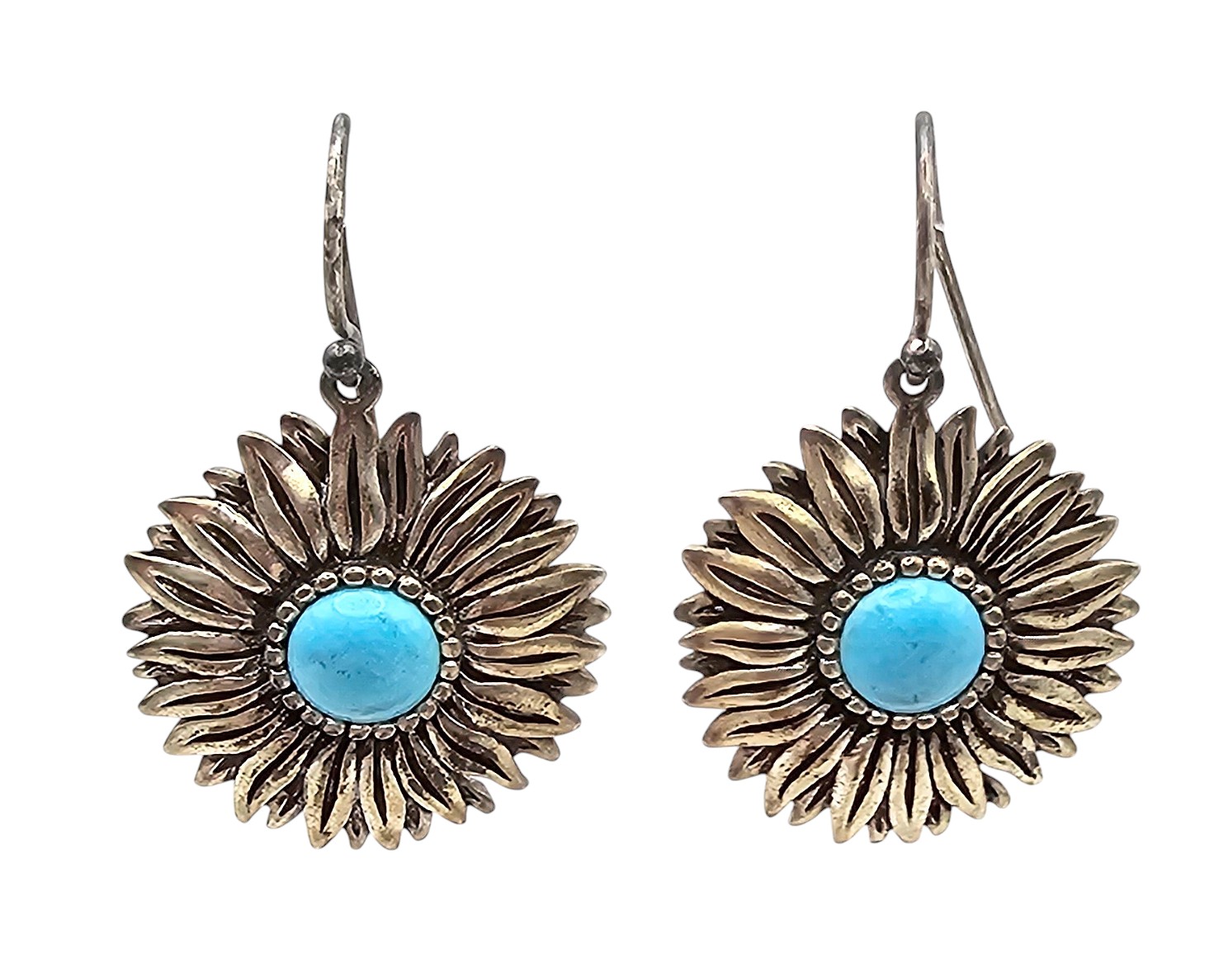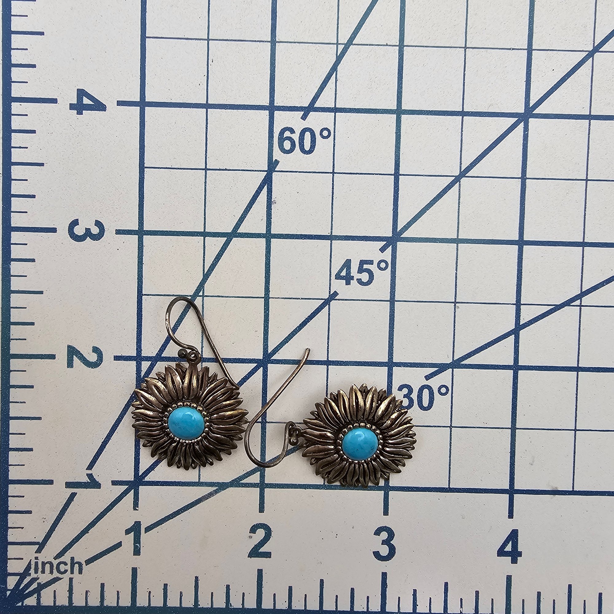 A Turquoise Sterling Silver Sunflower Drop Dangle Earrings 8.5 G