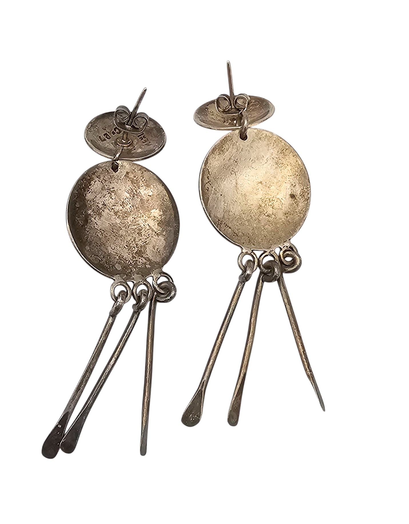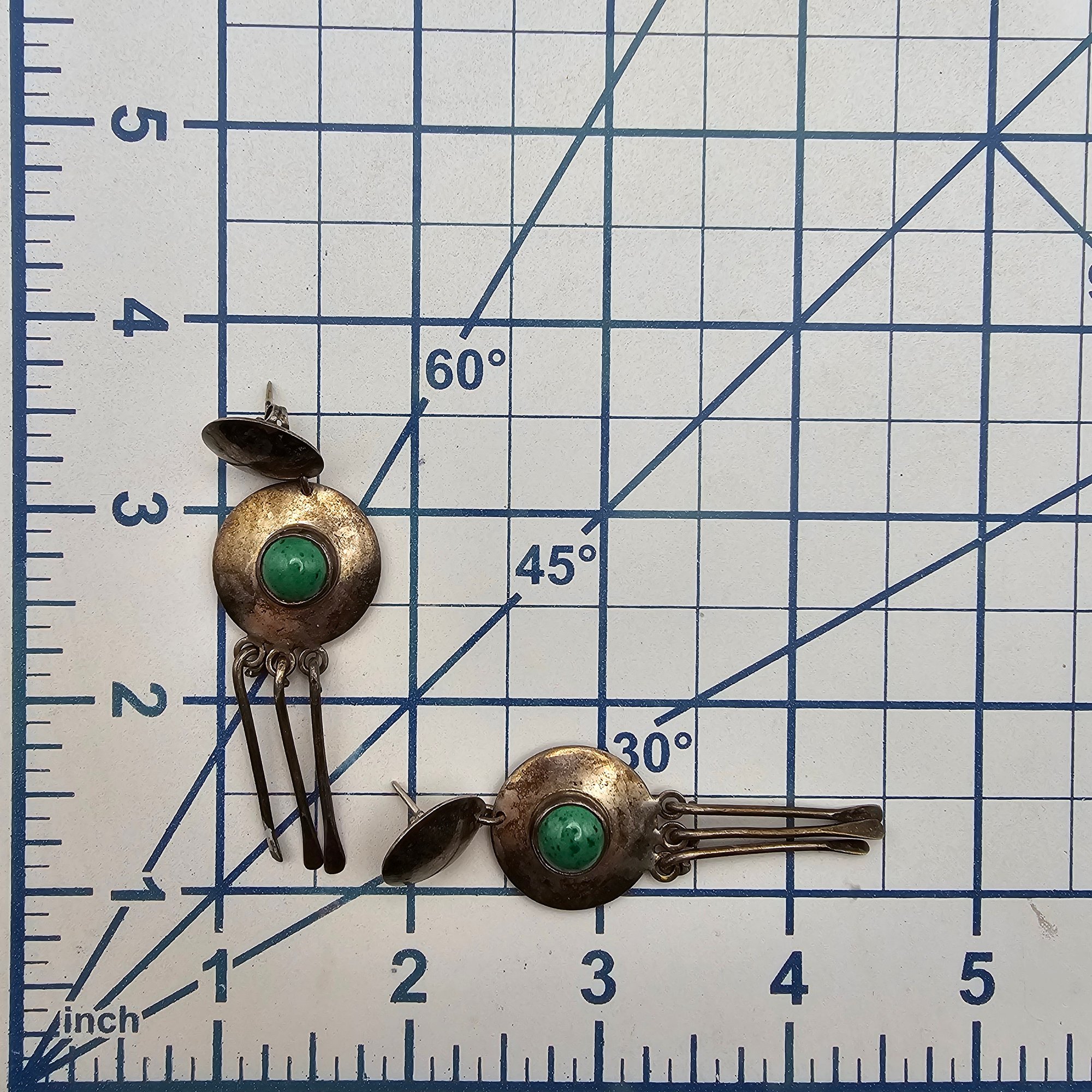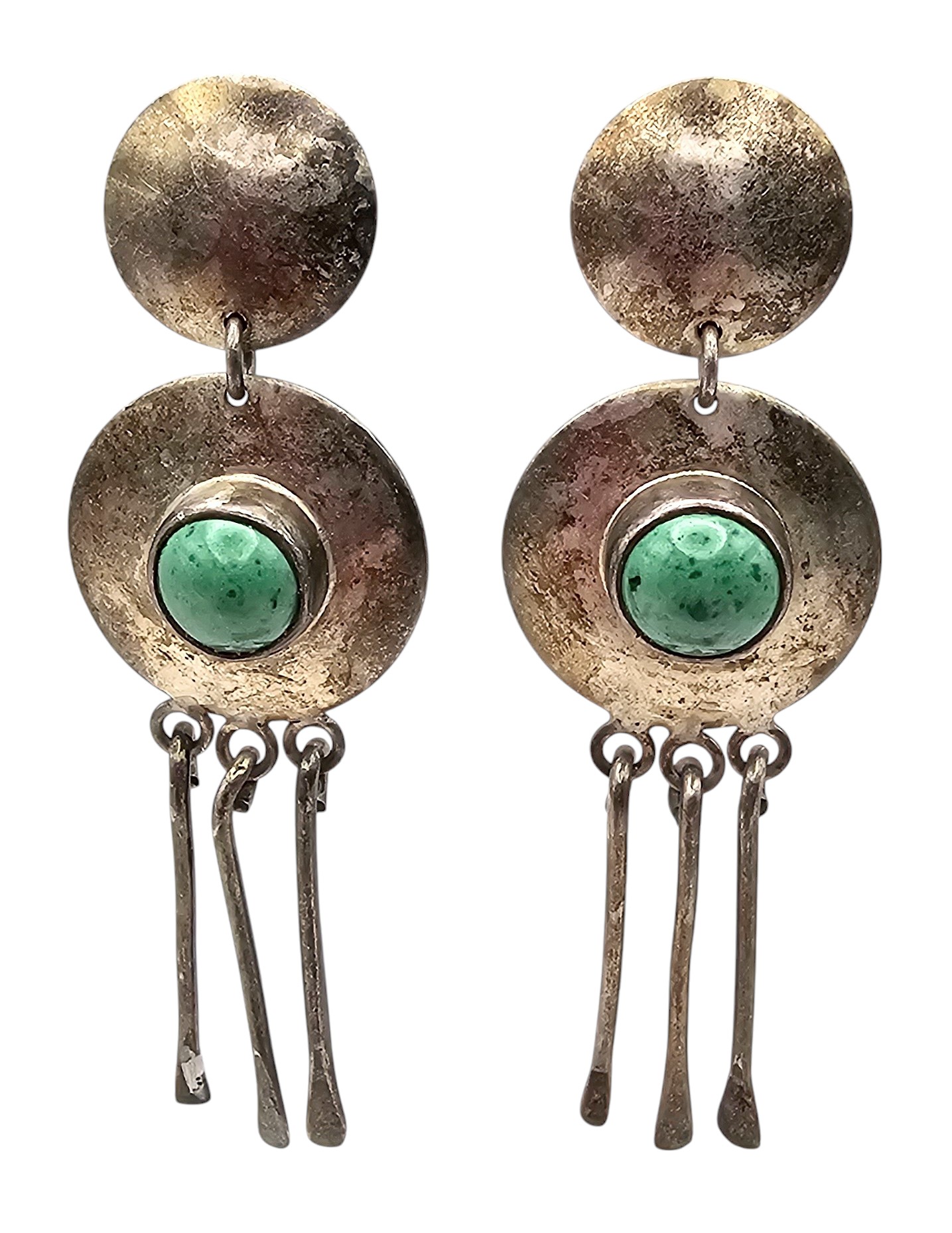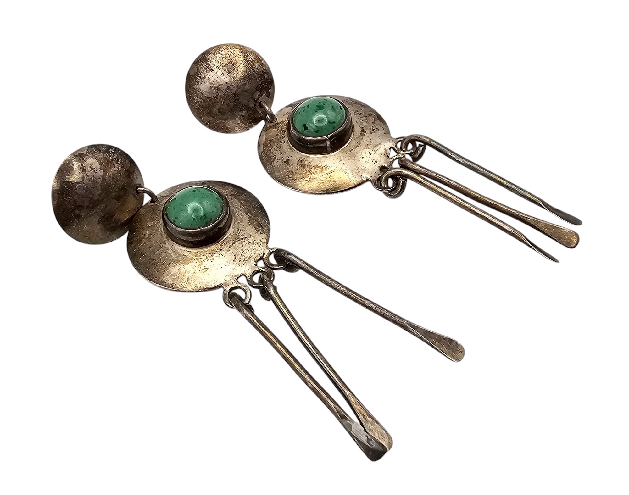 Vintage Green Stone Sterling Silver Fringe Dangle Earrings 15.7 G