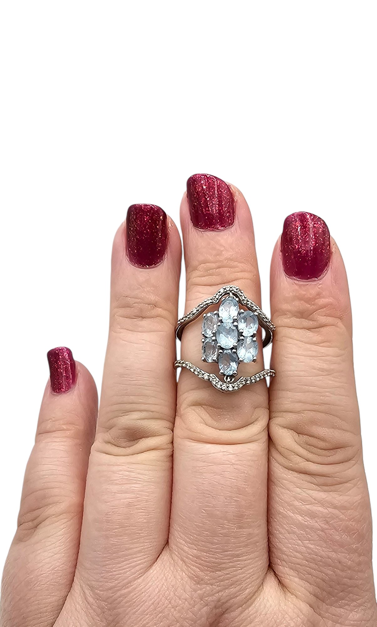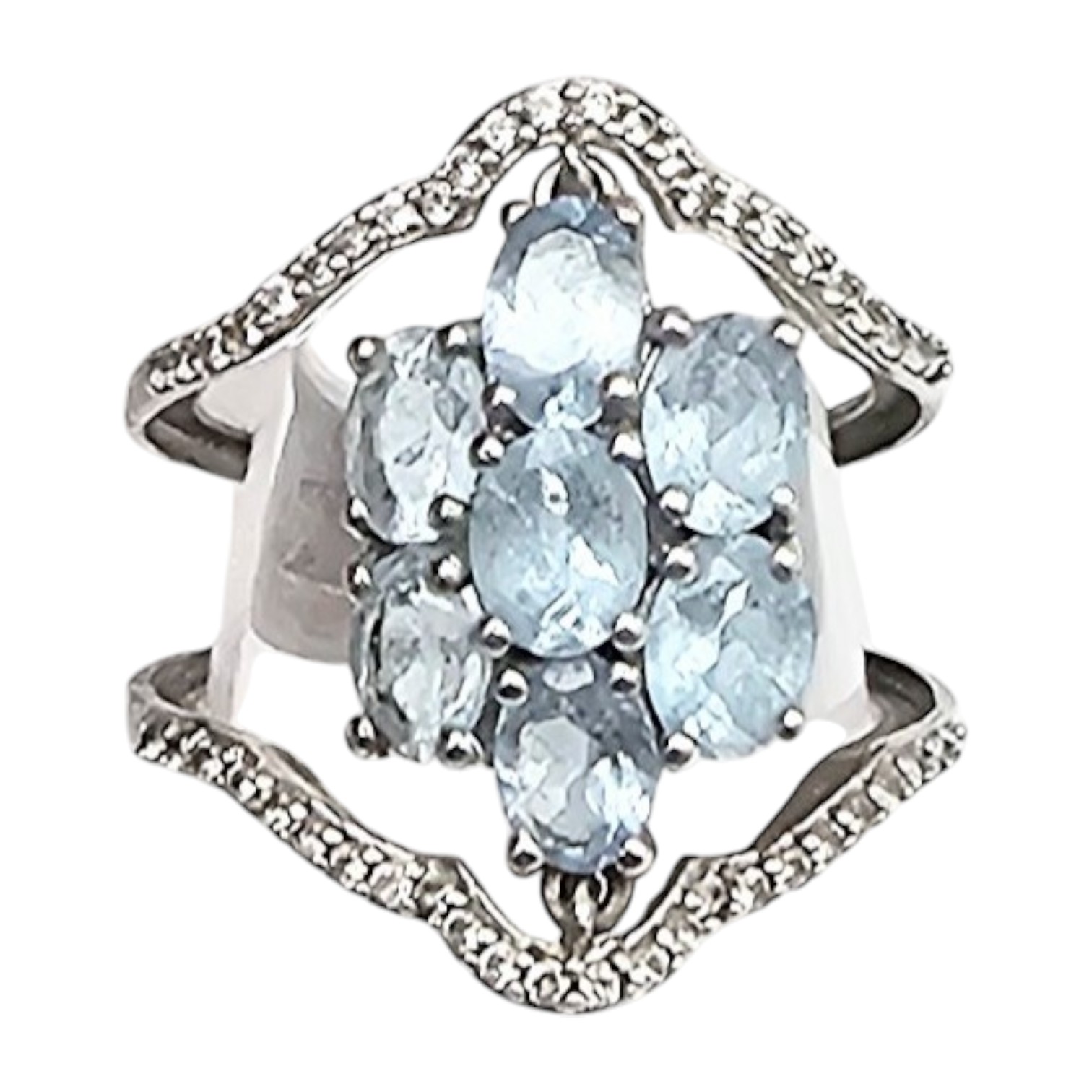 STS Rhinestone Sterling Silver Cocktail Ring Size 6.5 4.2 G