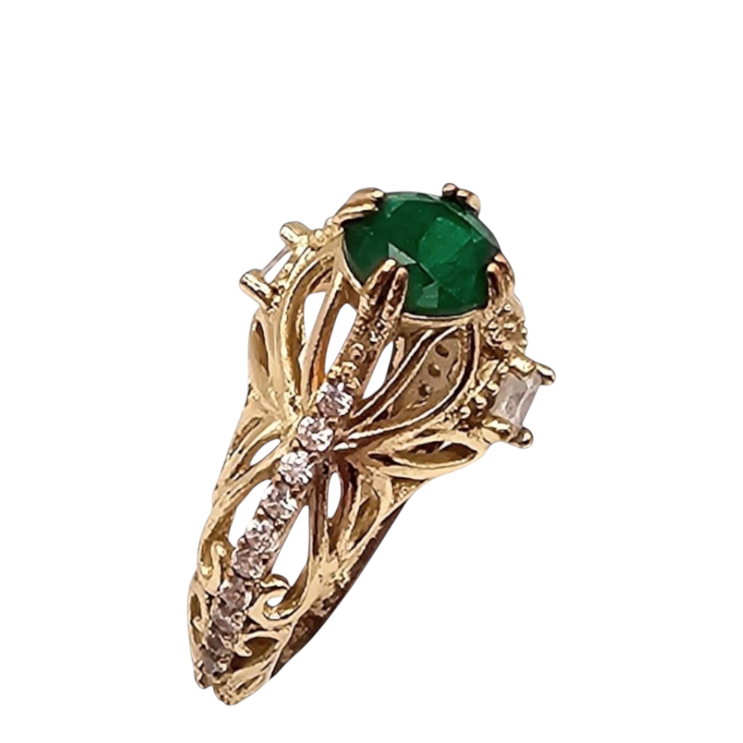 S Rhinestone Gold Over Sterling Silver Cocktail Ring Size 7 4.2 G