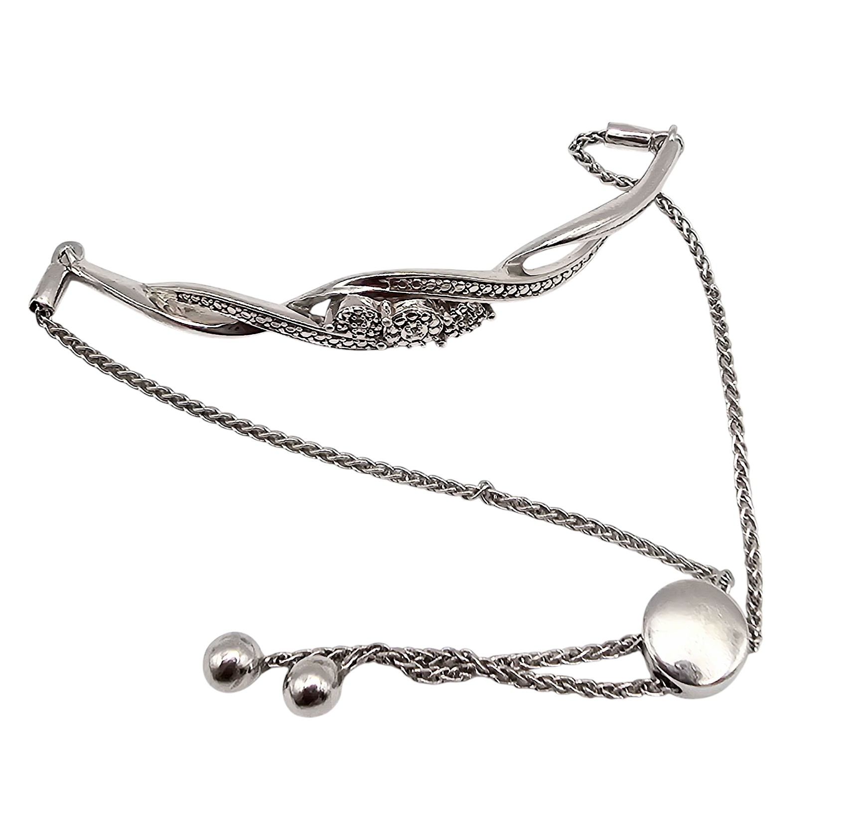 Diamond Sterling Silver Bolo Bracelet 6.2 G